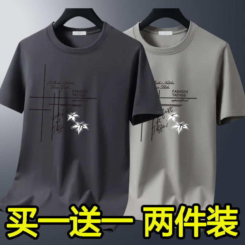 夏季莫代尔冰丝大码短袖t恤男士工作耐磨便宜干活穿上衣服T打底衫