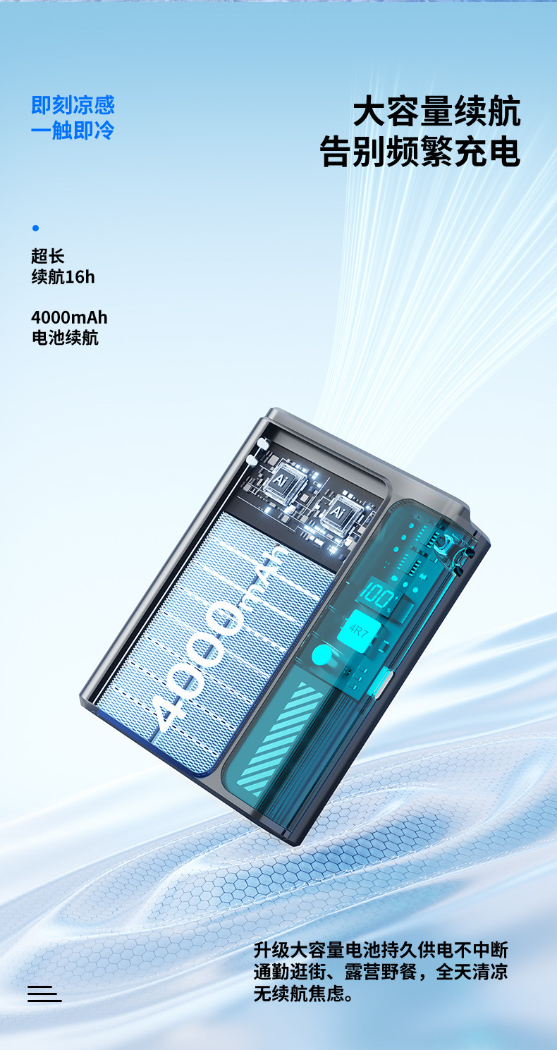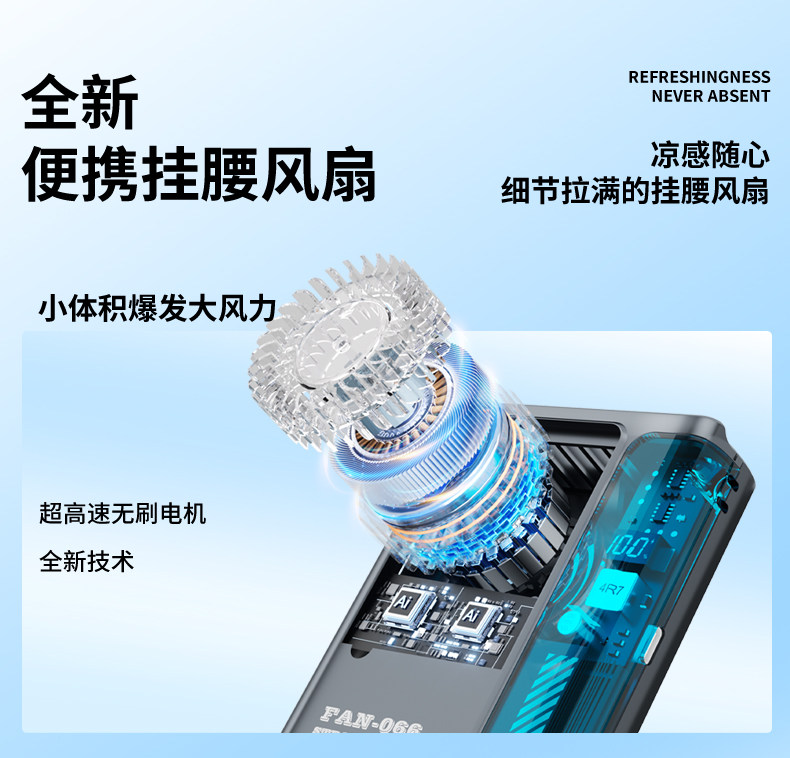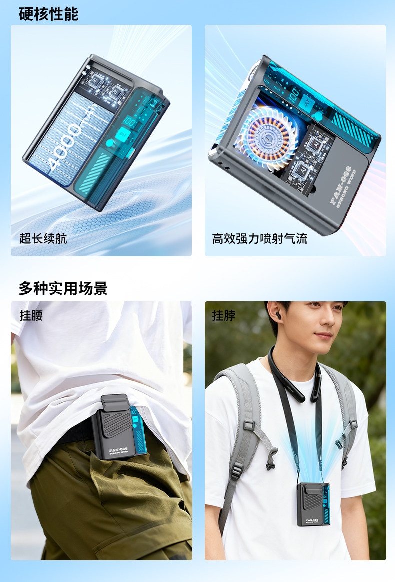 送礼推荐★耀夜黑【精美包装】挂腰便携+立体风道+100档无极调节+持久续航