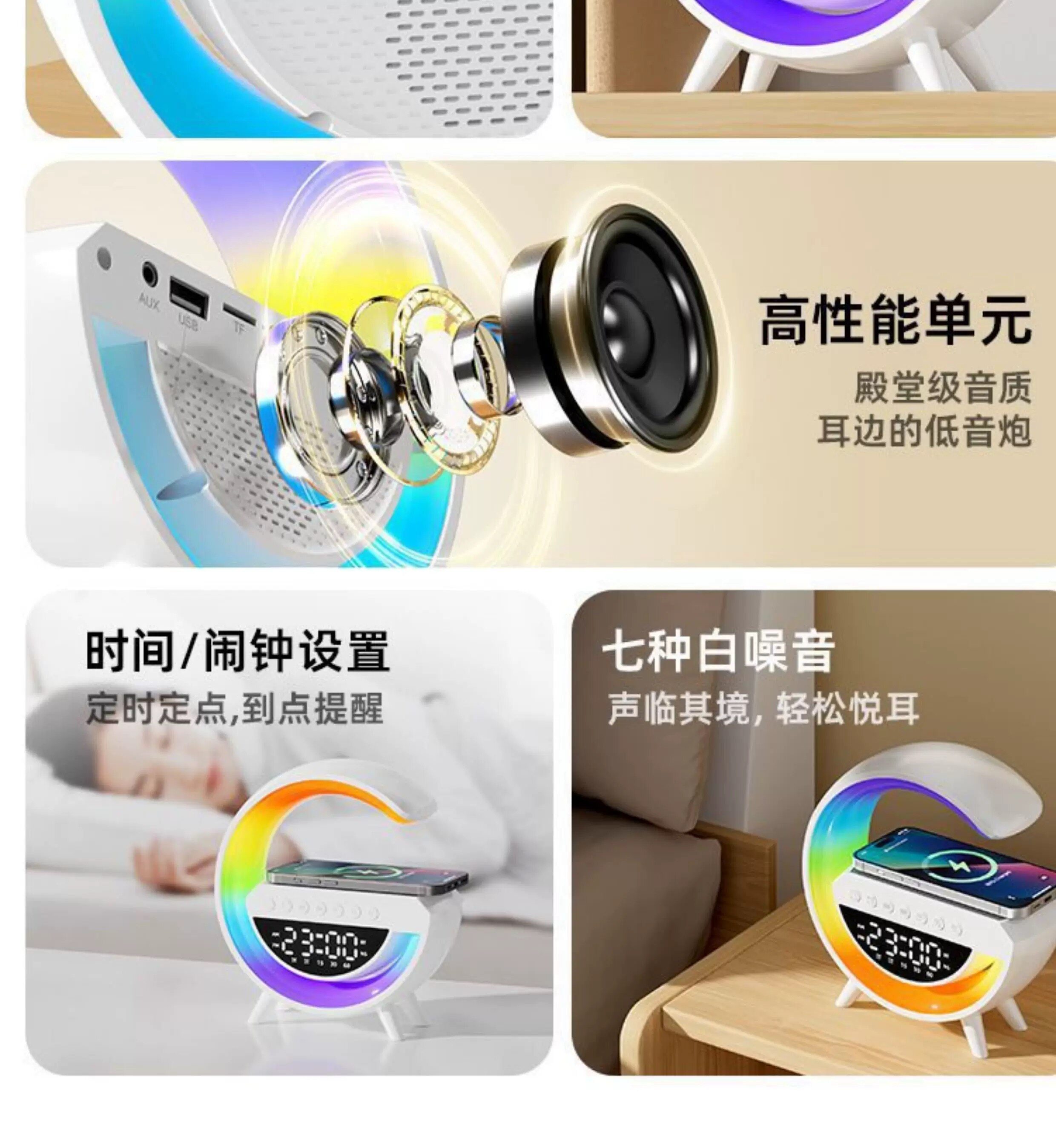 多功能氛围灯桌面摆件高级无线充蓝牙音响LED台灯生日礼物送女生