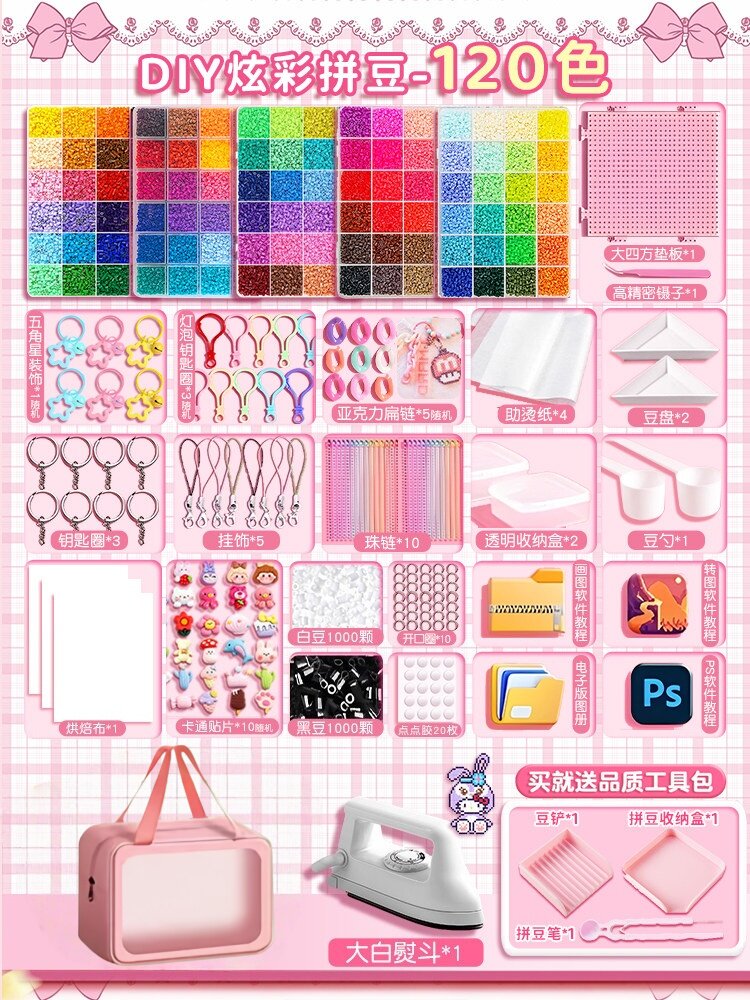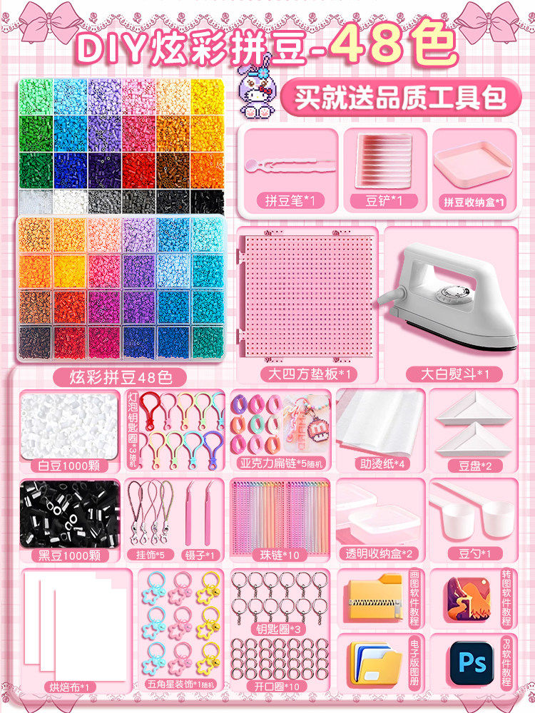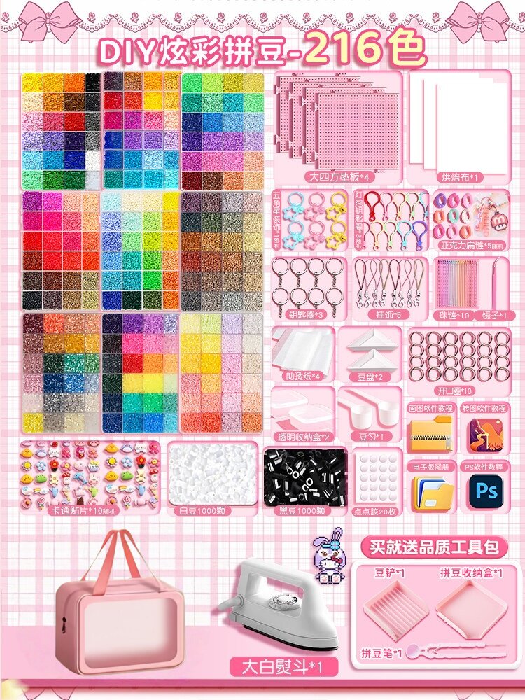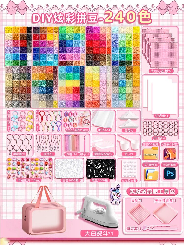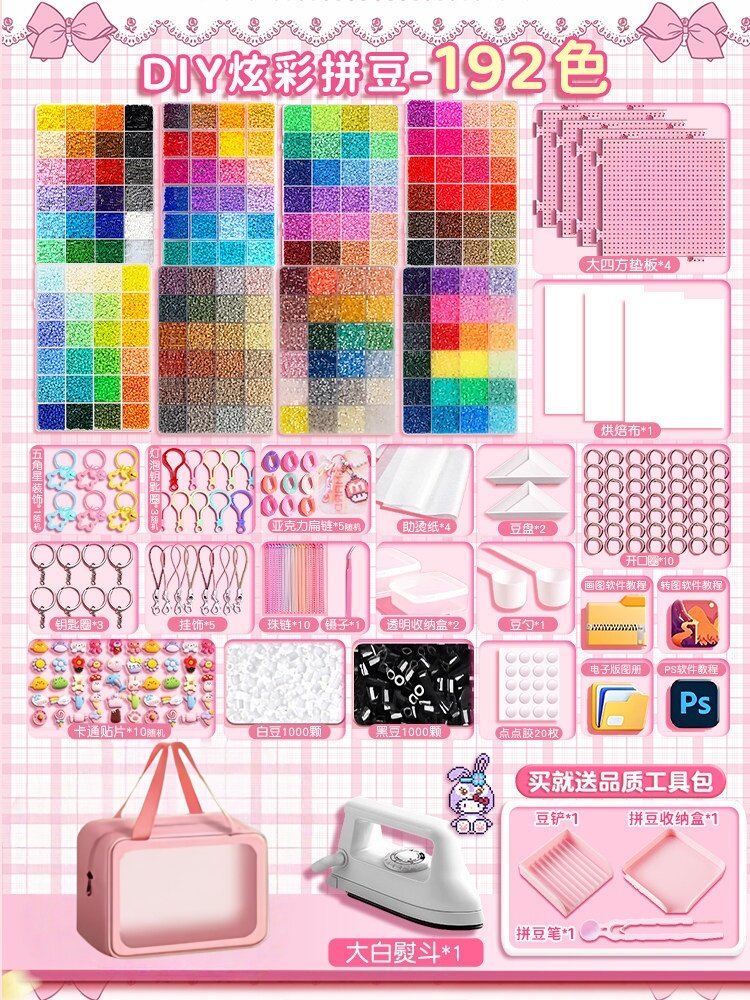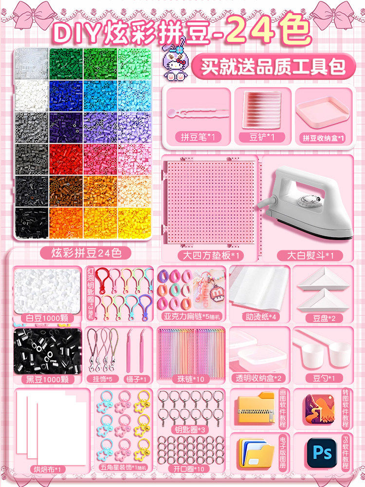 【大白熨斗+24色约24000颗⭐美乐粉拼豆笔豪华包】赠色号贴黑白豆2000颗
