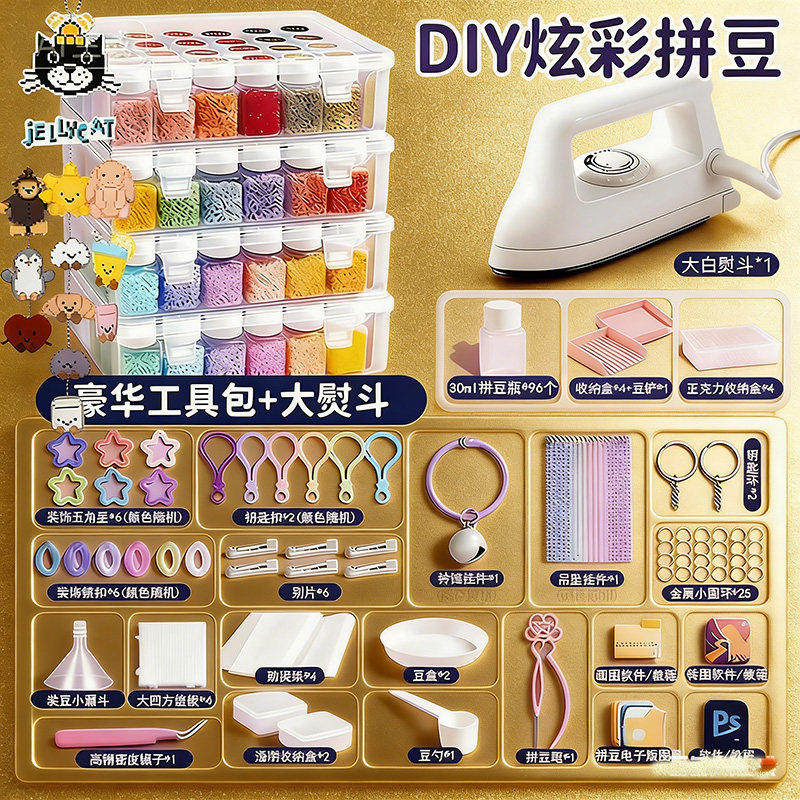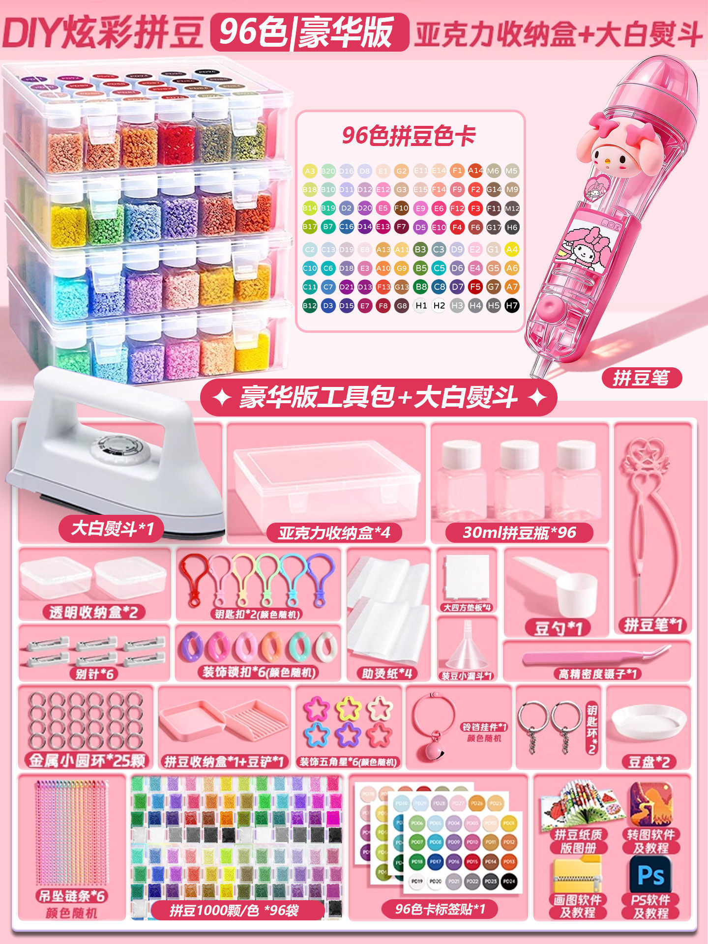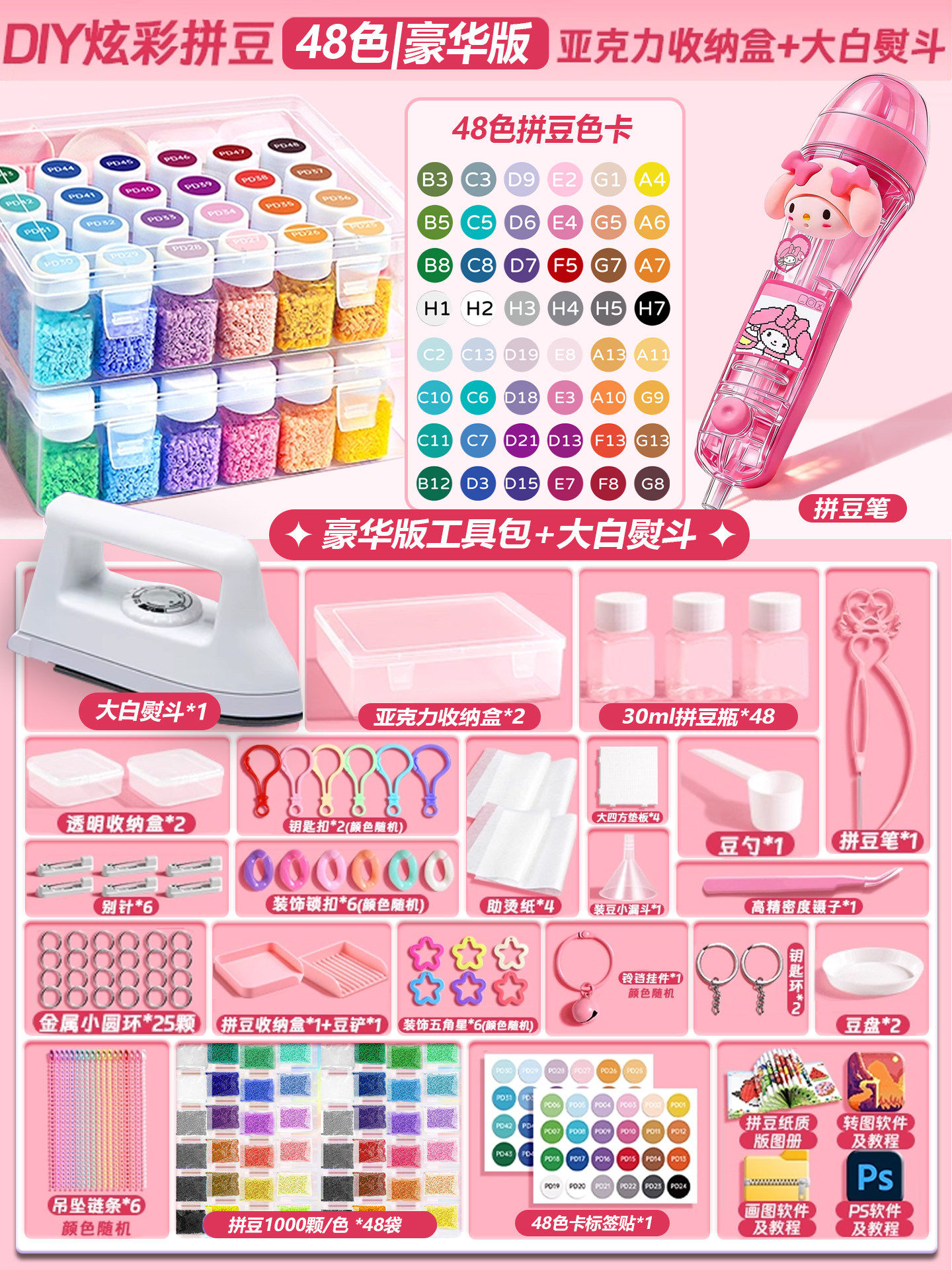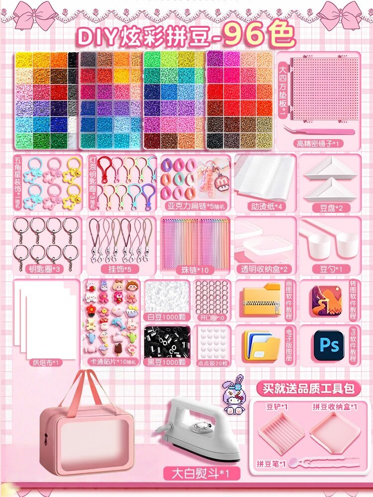 【大白熨斗+24色约24000颗⭐美乐粉拼豆笔豪华包】赠色号贴黑白豆2000颗