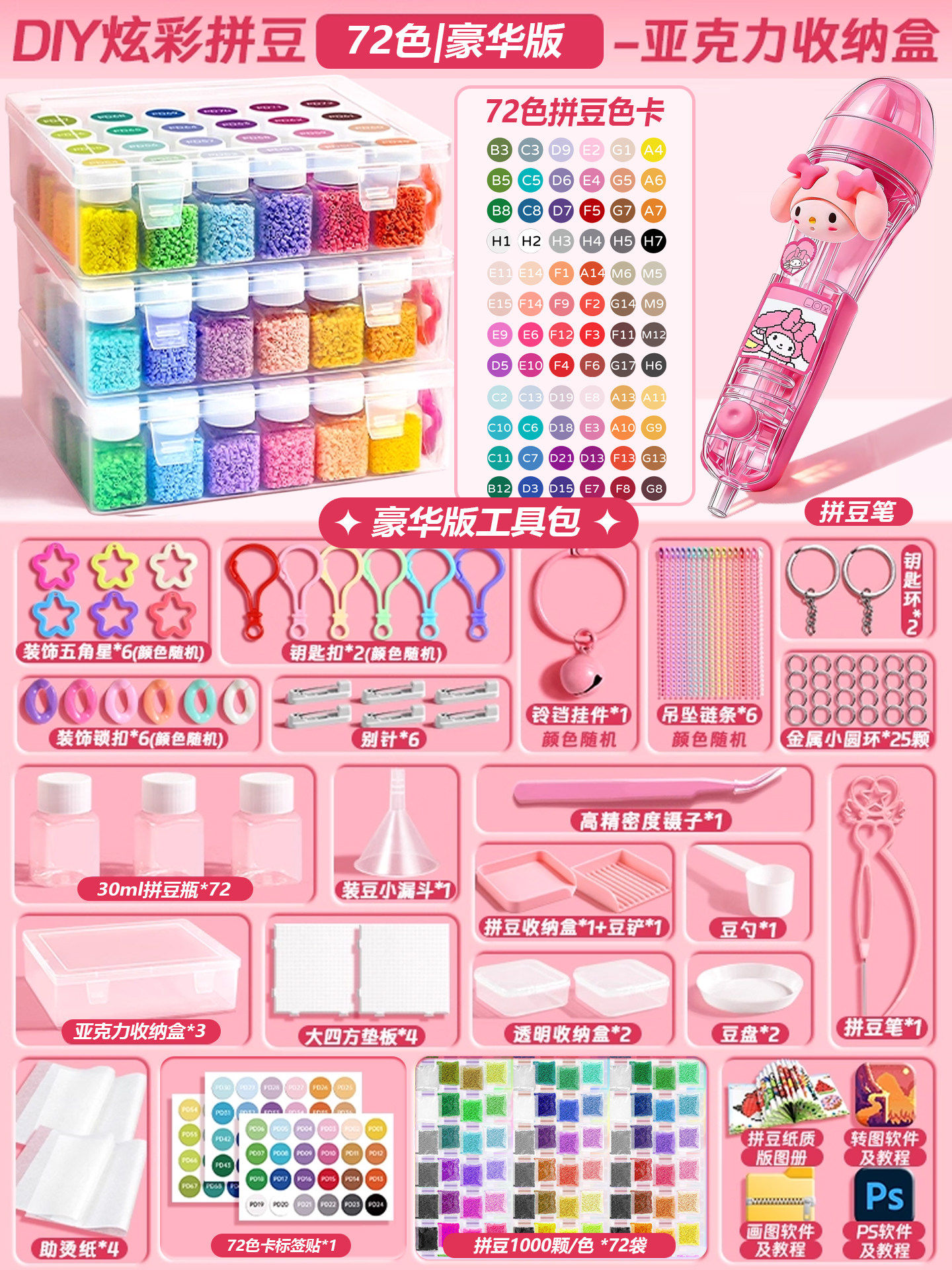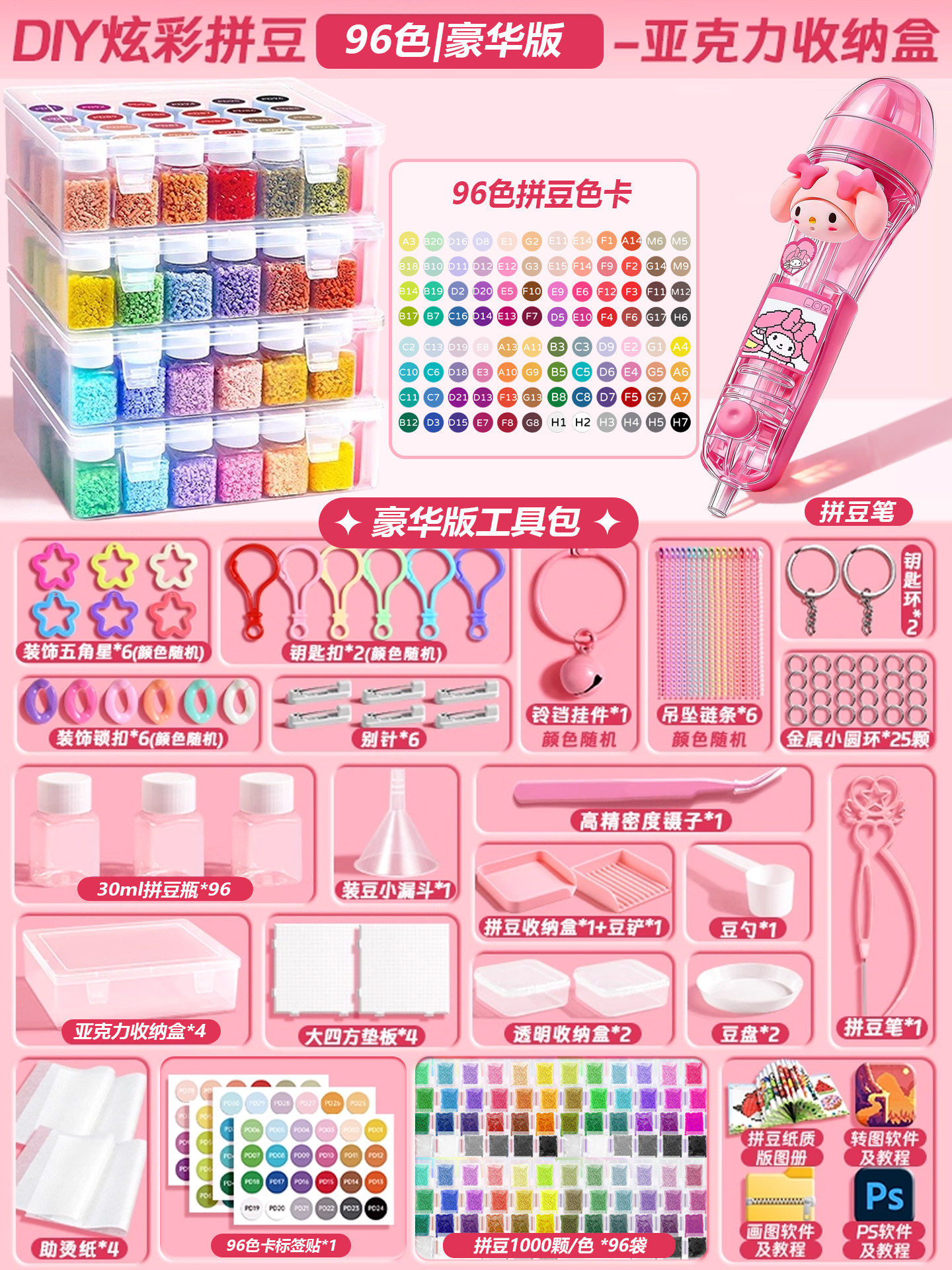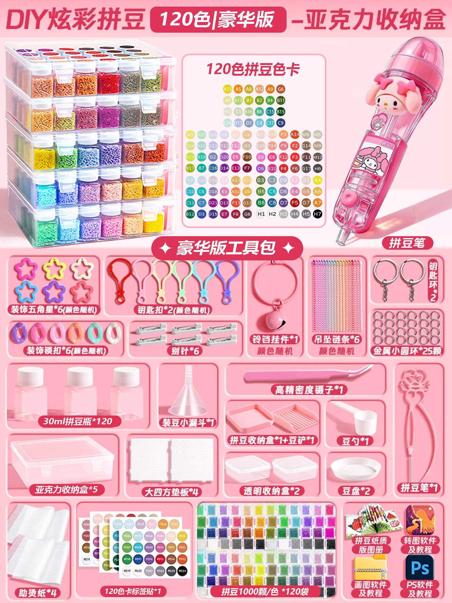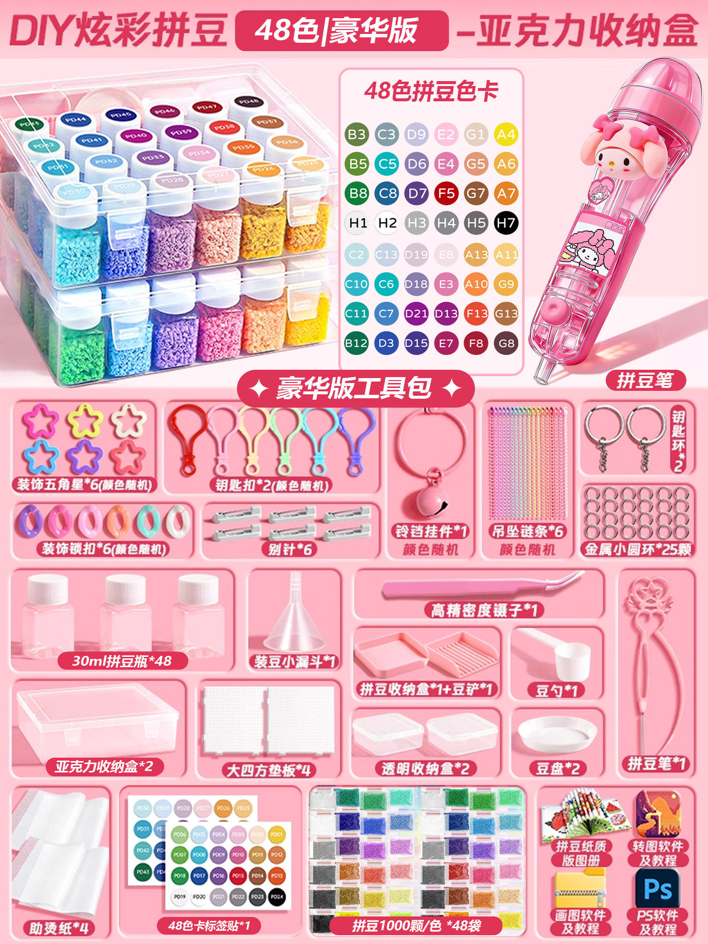 【大白熨斗+24色约24000颗⭐美乐粉拼豆笔豪华包】赠色号贴黑白豆2000颗