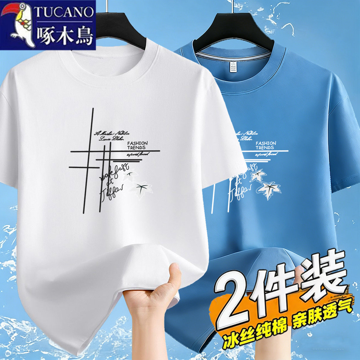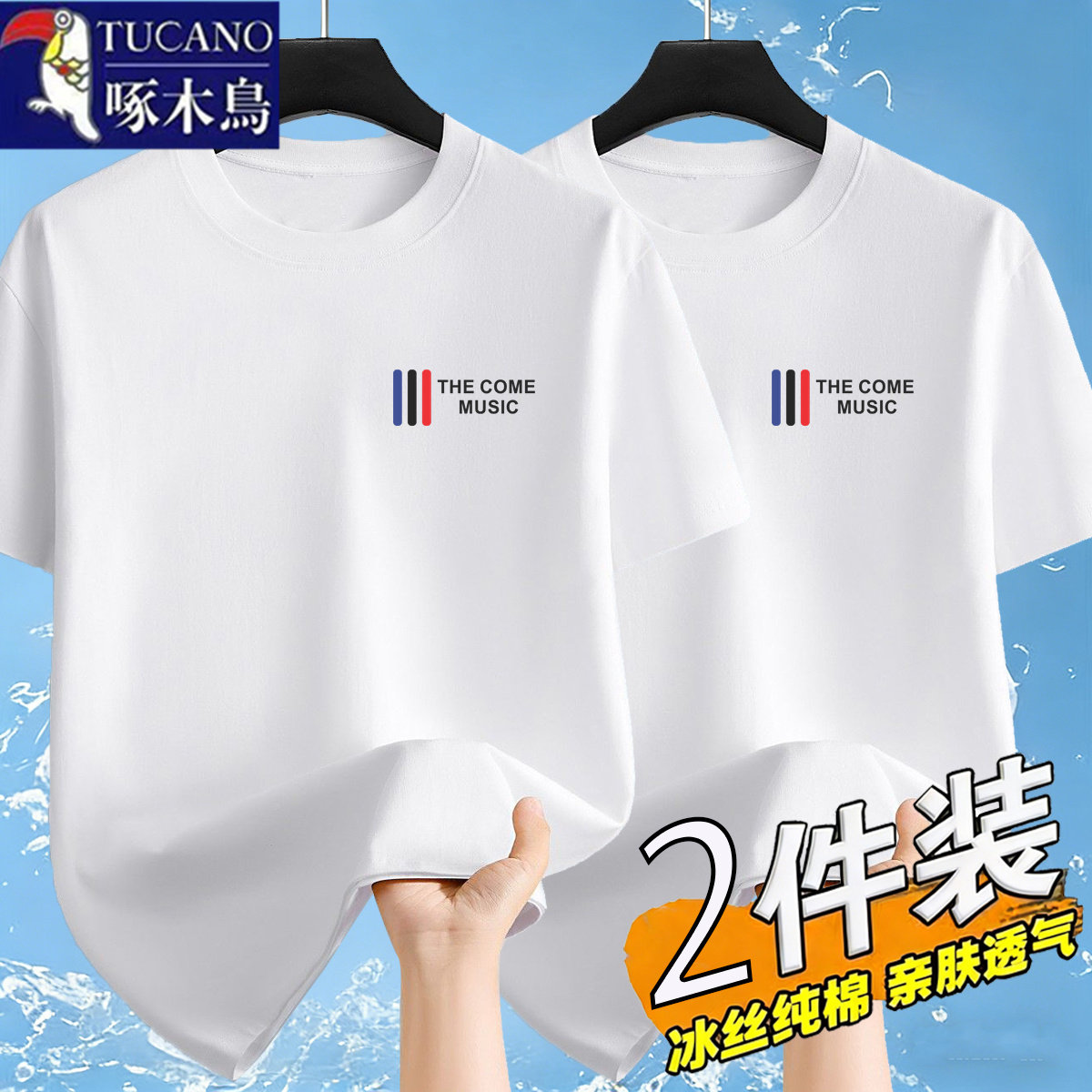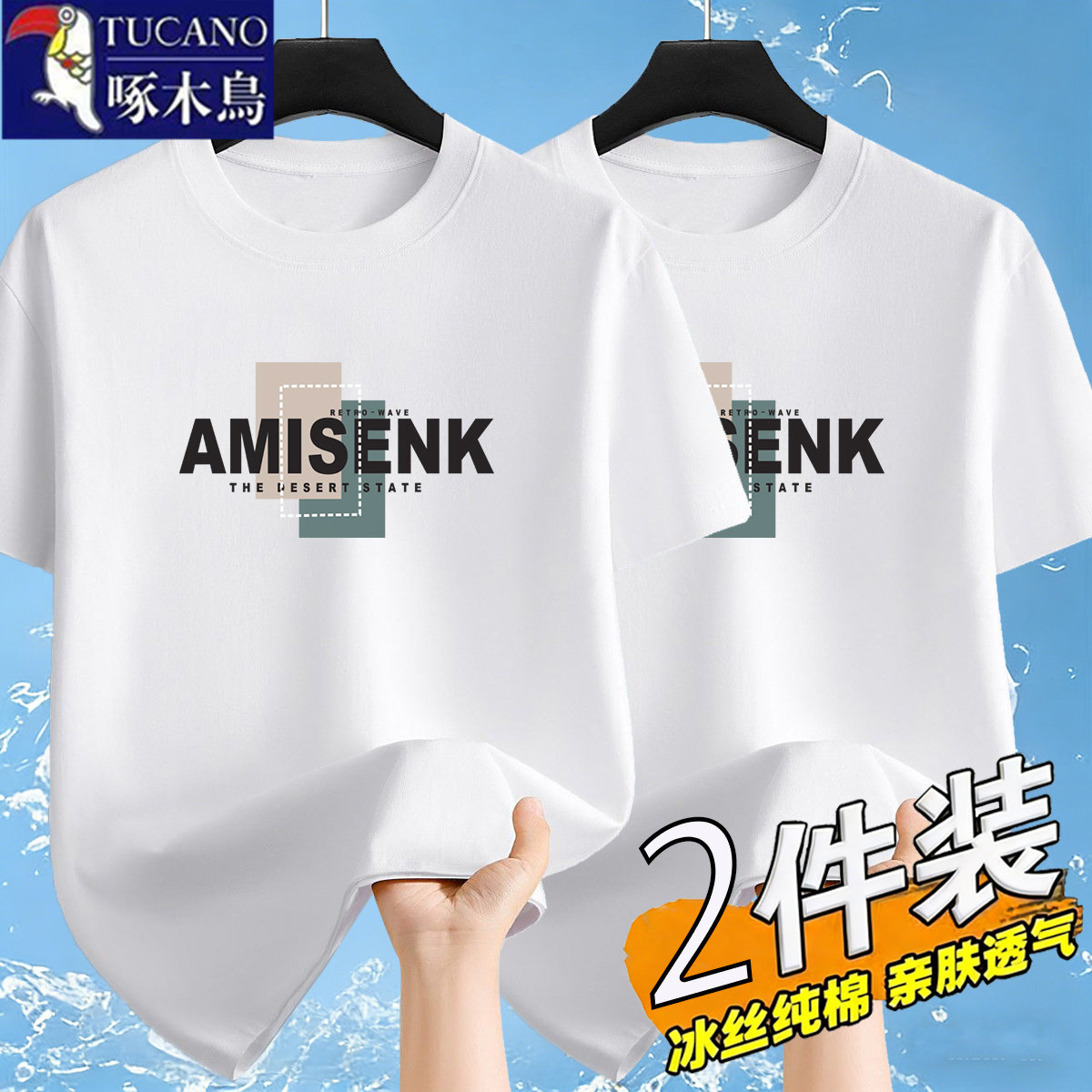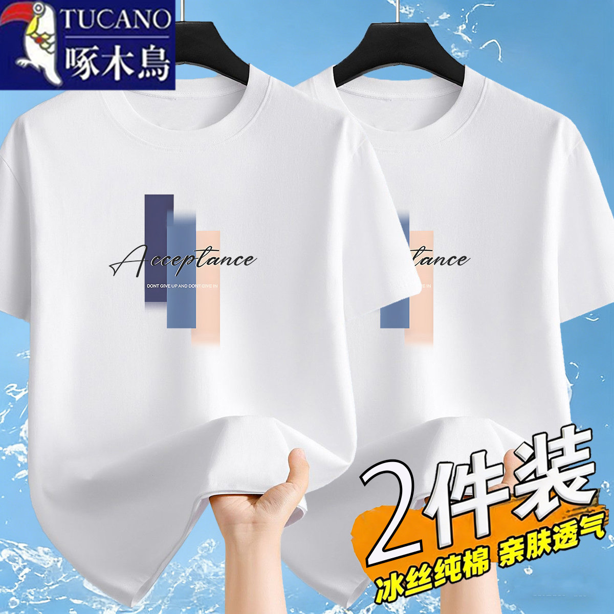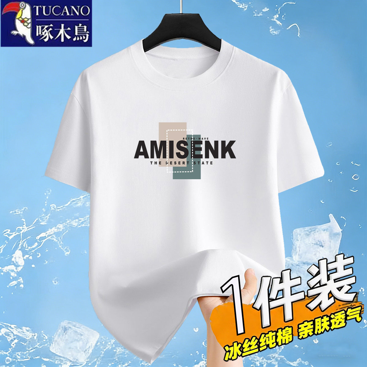 HomeProducts啄木鸟纯棉短袖男士t恤2026夏季新款学生宽松体恤圆领半袖上衣