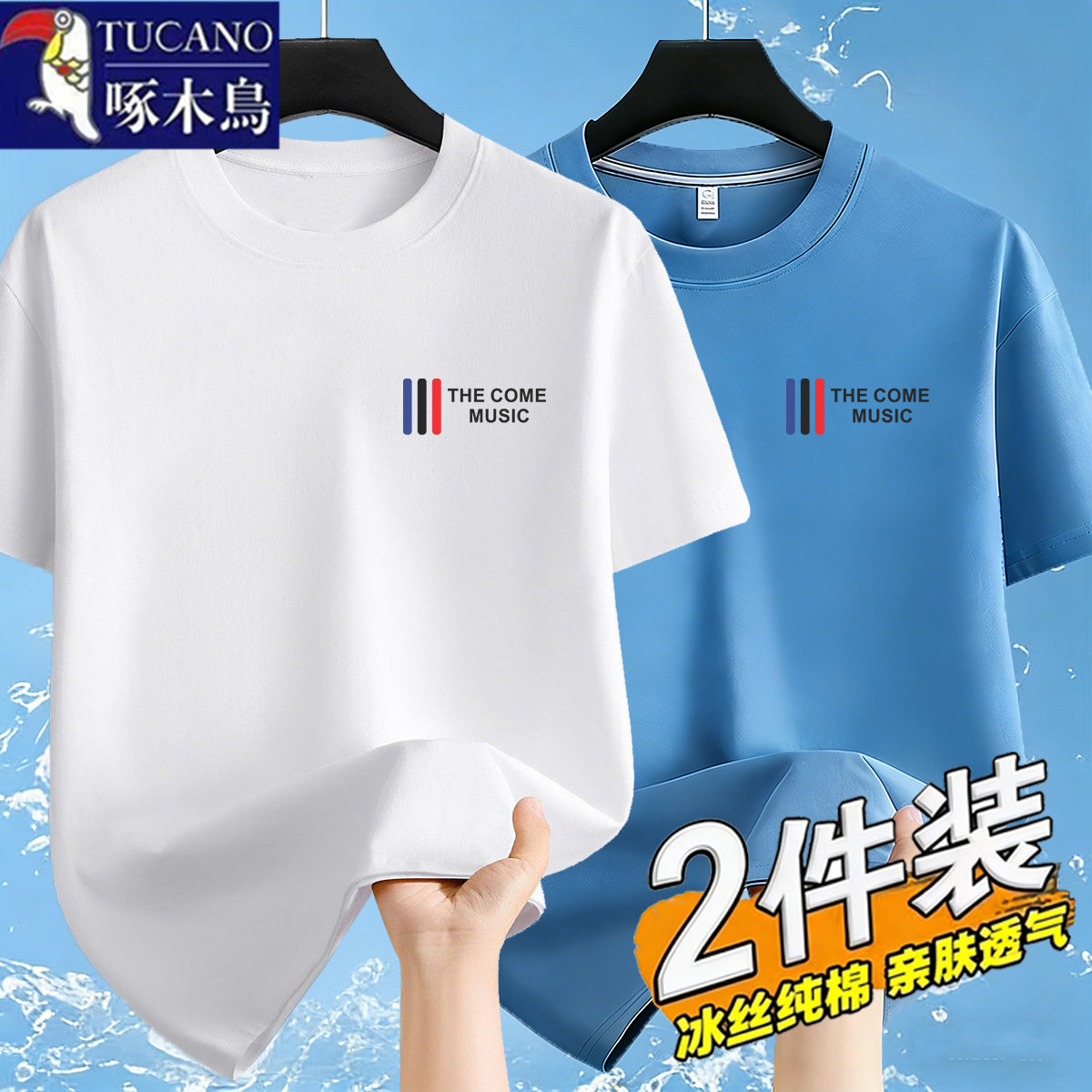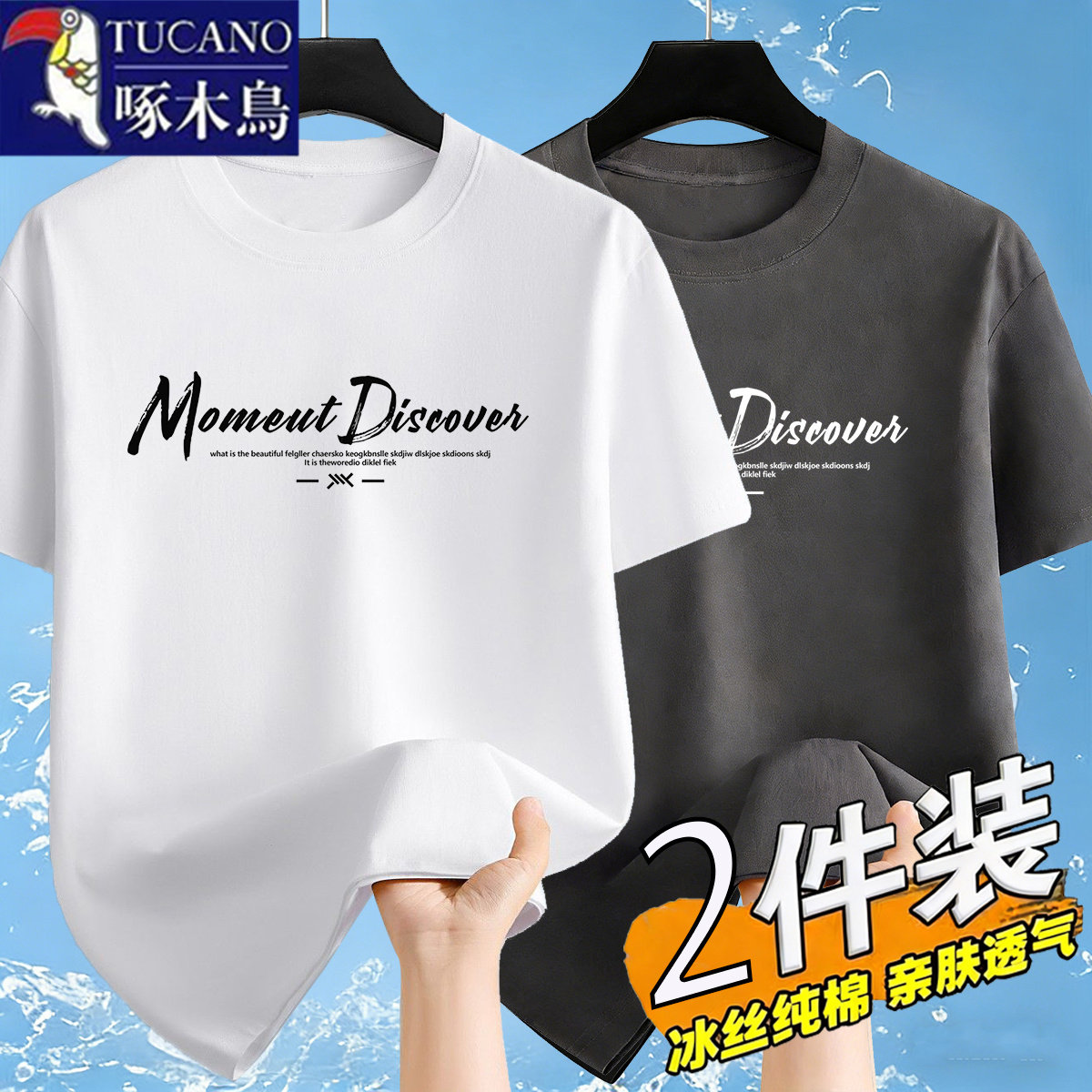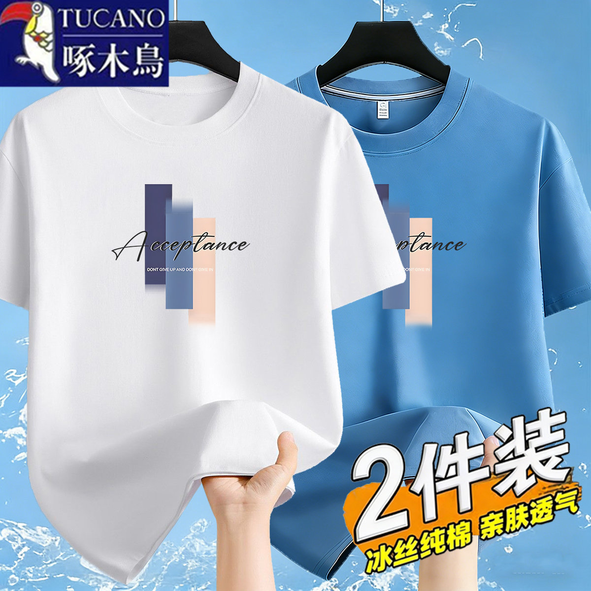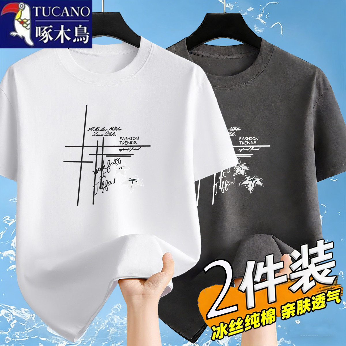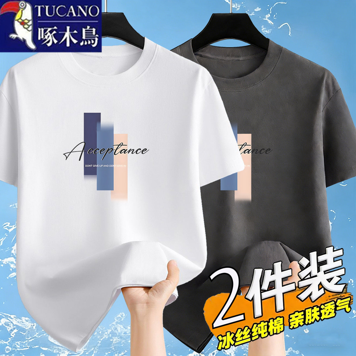 HomeProducts啄木鸟纯棉短袖男士t恤2026夏季新款学生宽松体恤圆领半袖上衣