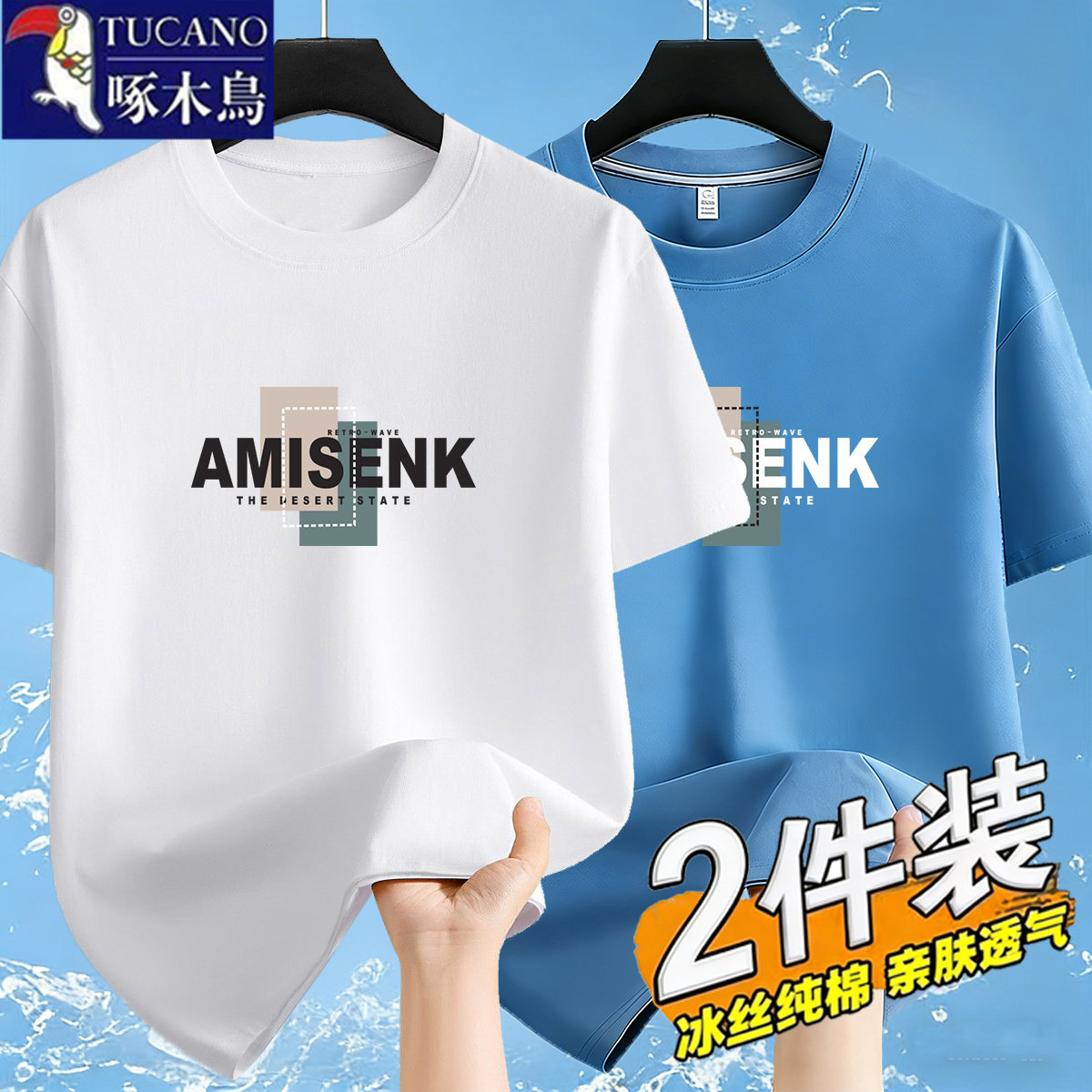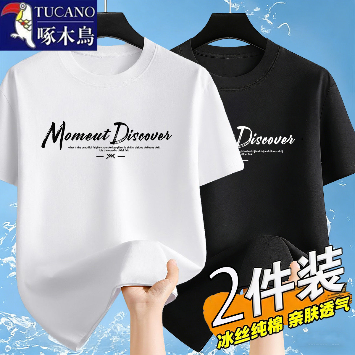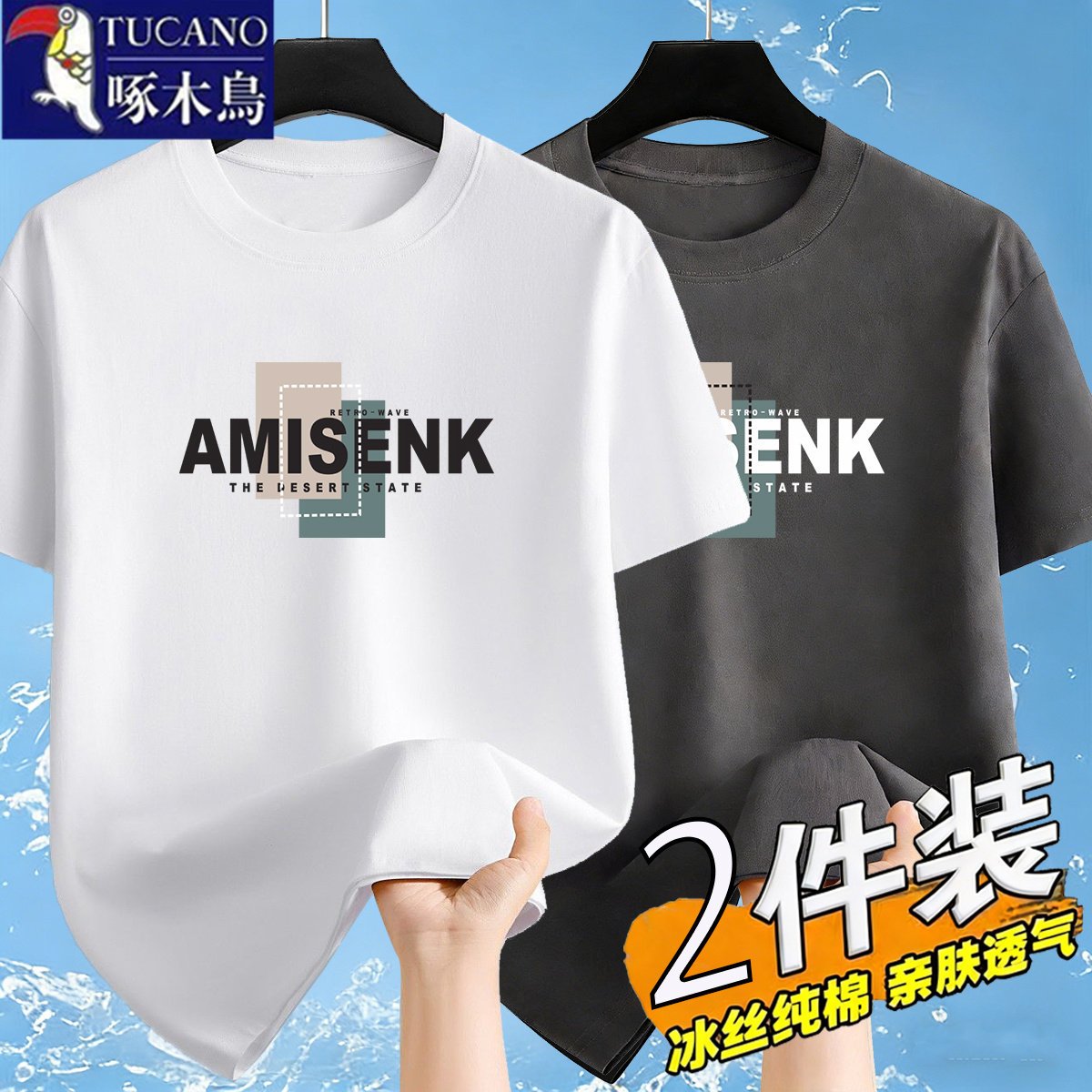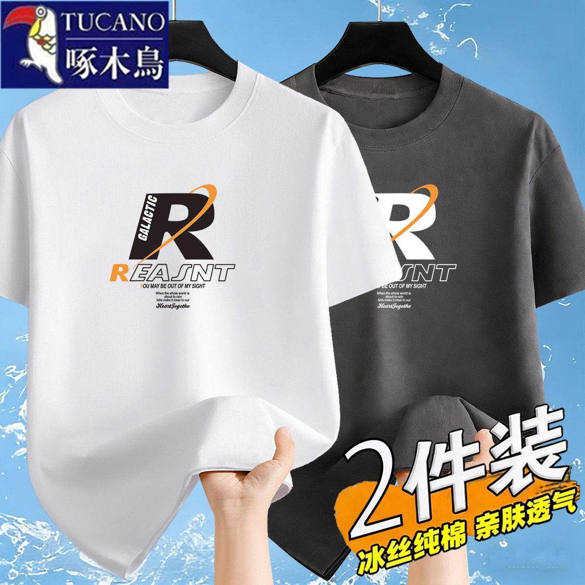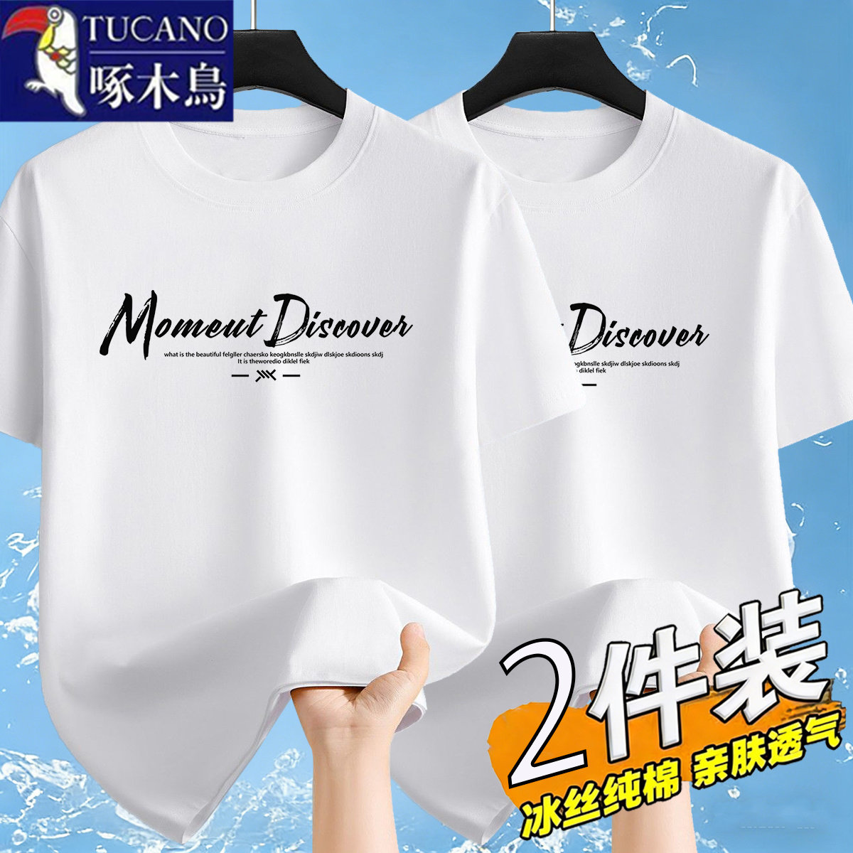 HomeProducts啄木鸟纯棉短袖男士t恤2026夏季新款学生宽松体恤圆领半袖上衣