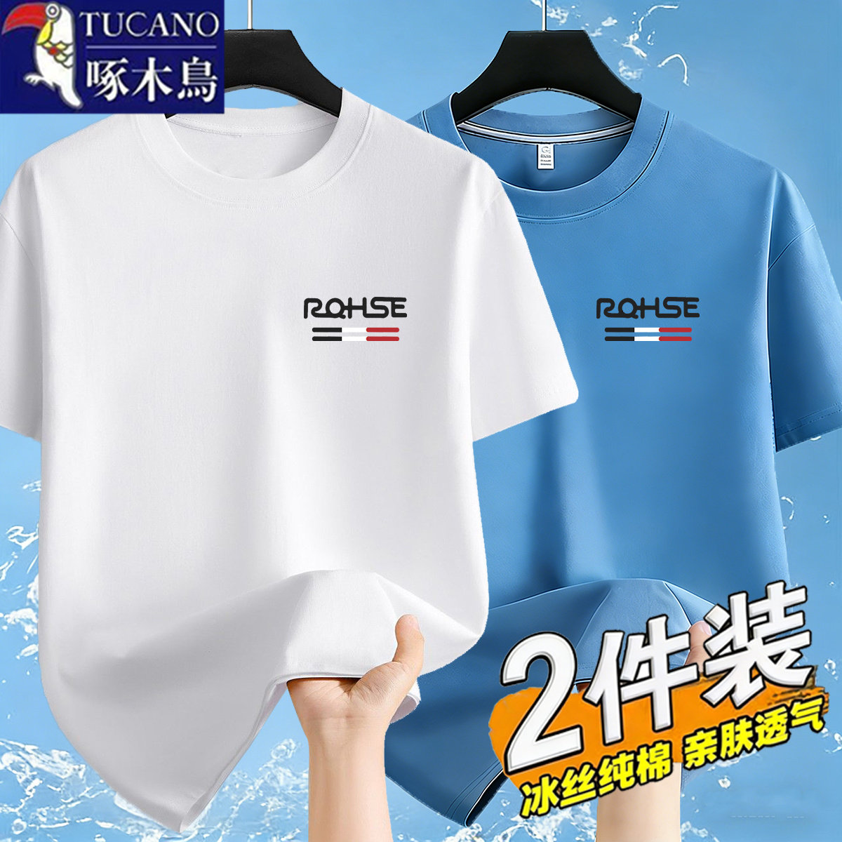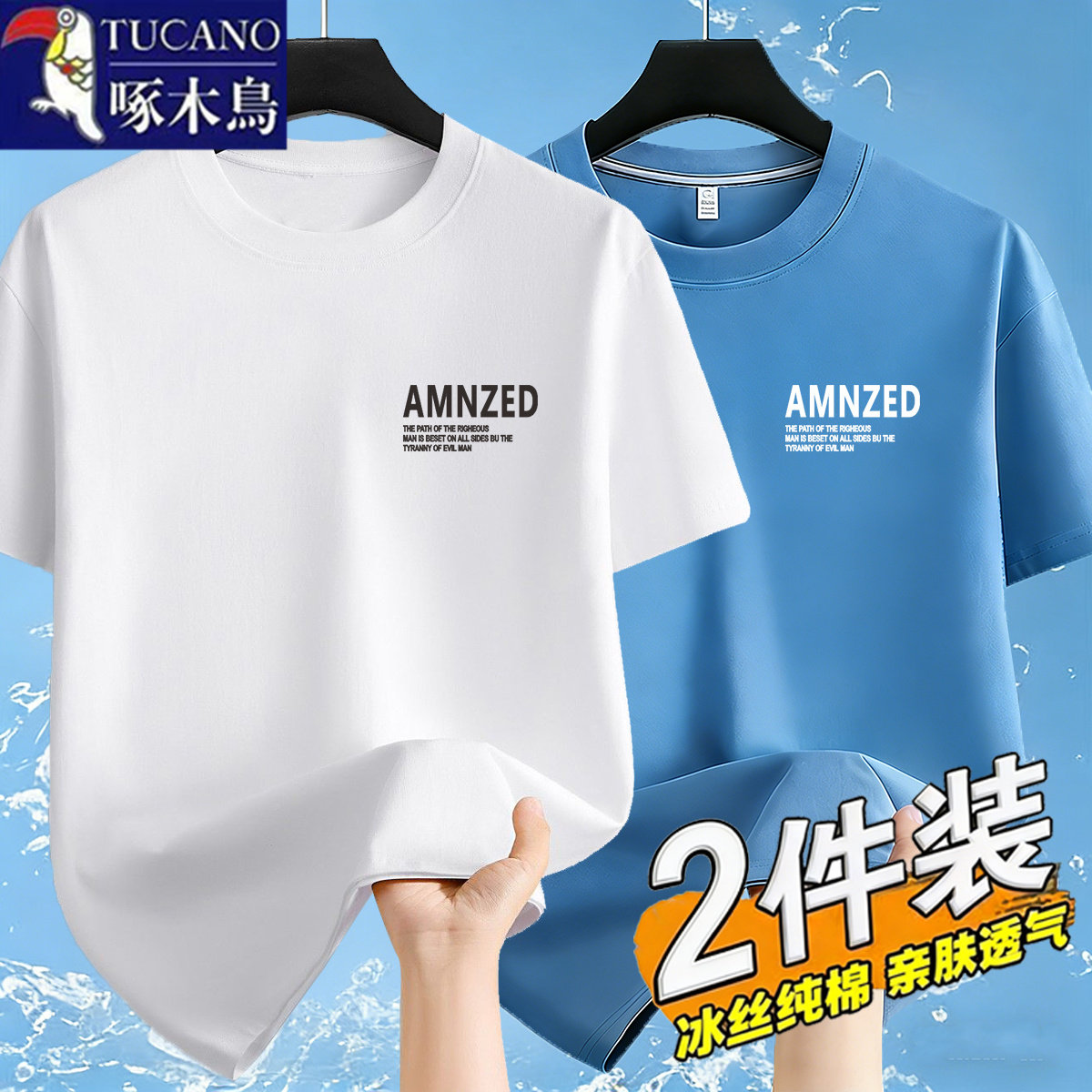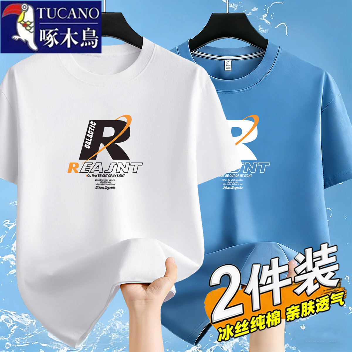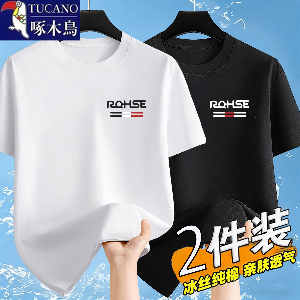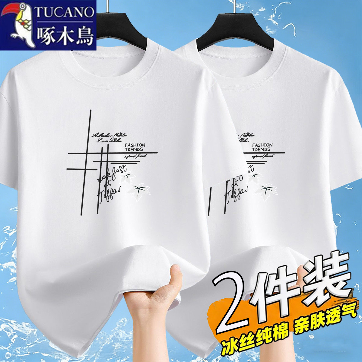 HomeProducts啄木鸟纯棉短袖男士t恤2026夏季新款学生宽松体恤圆领半袖上衣