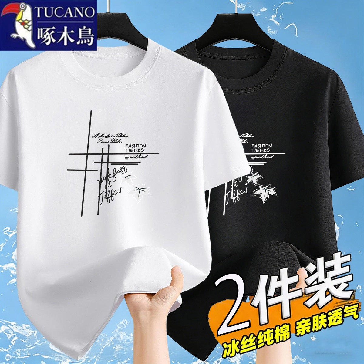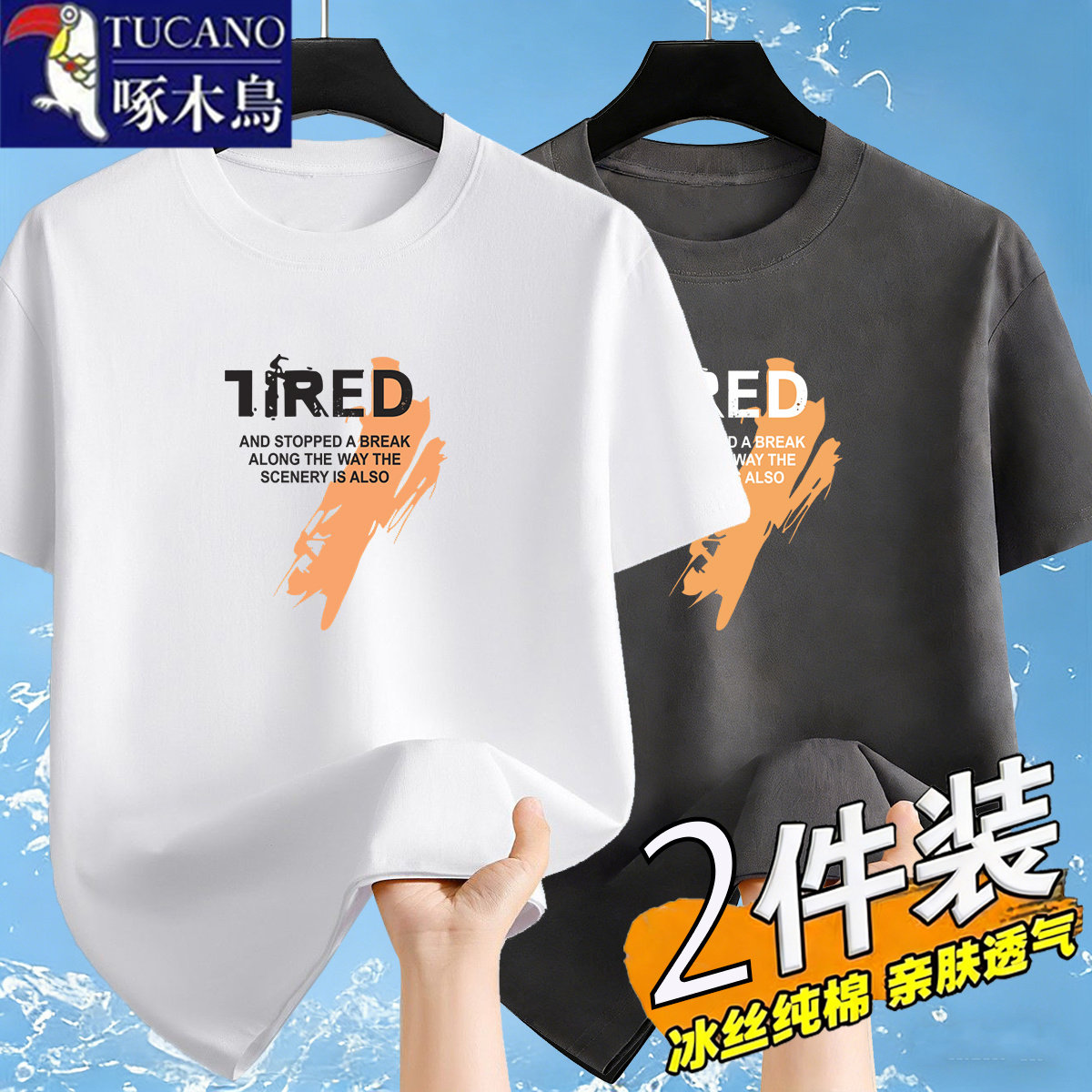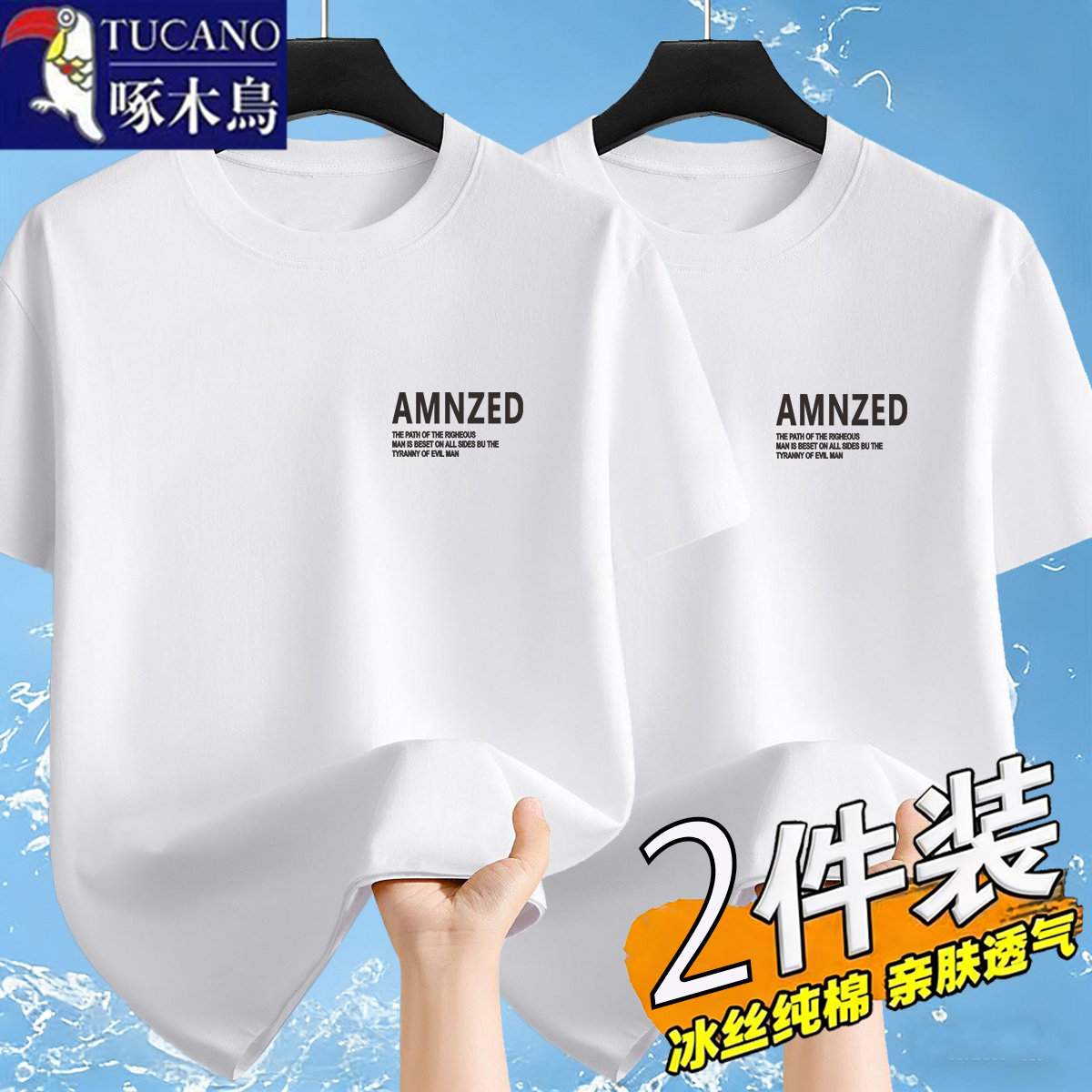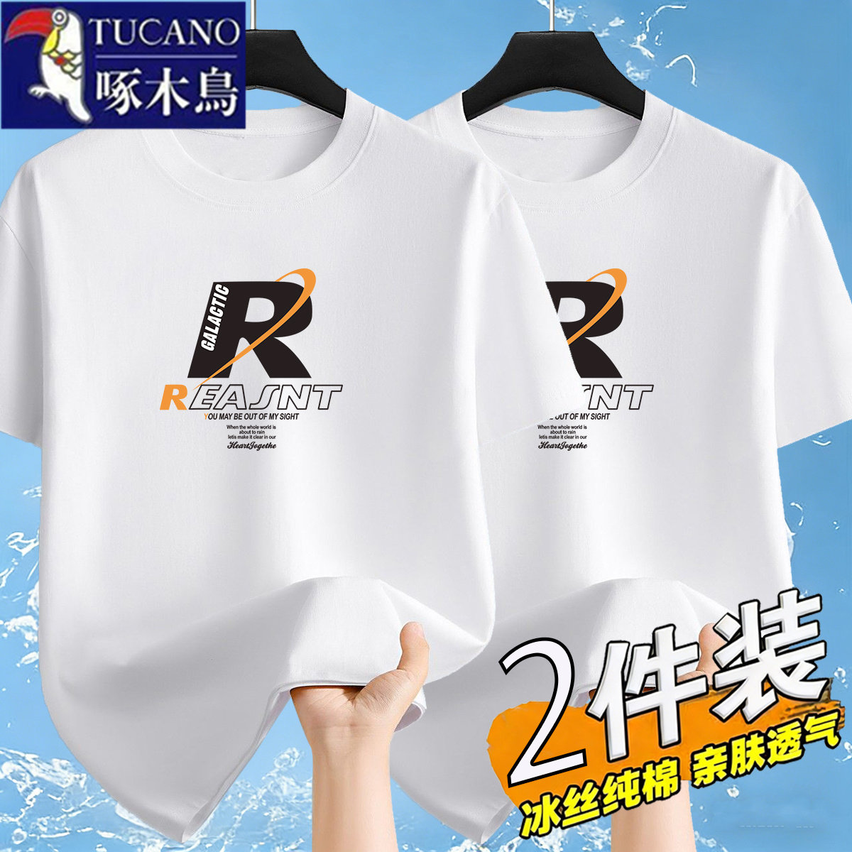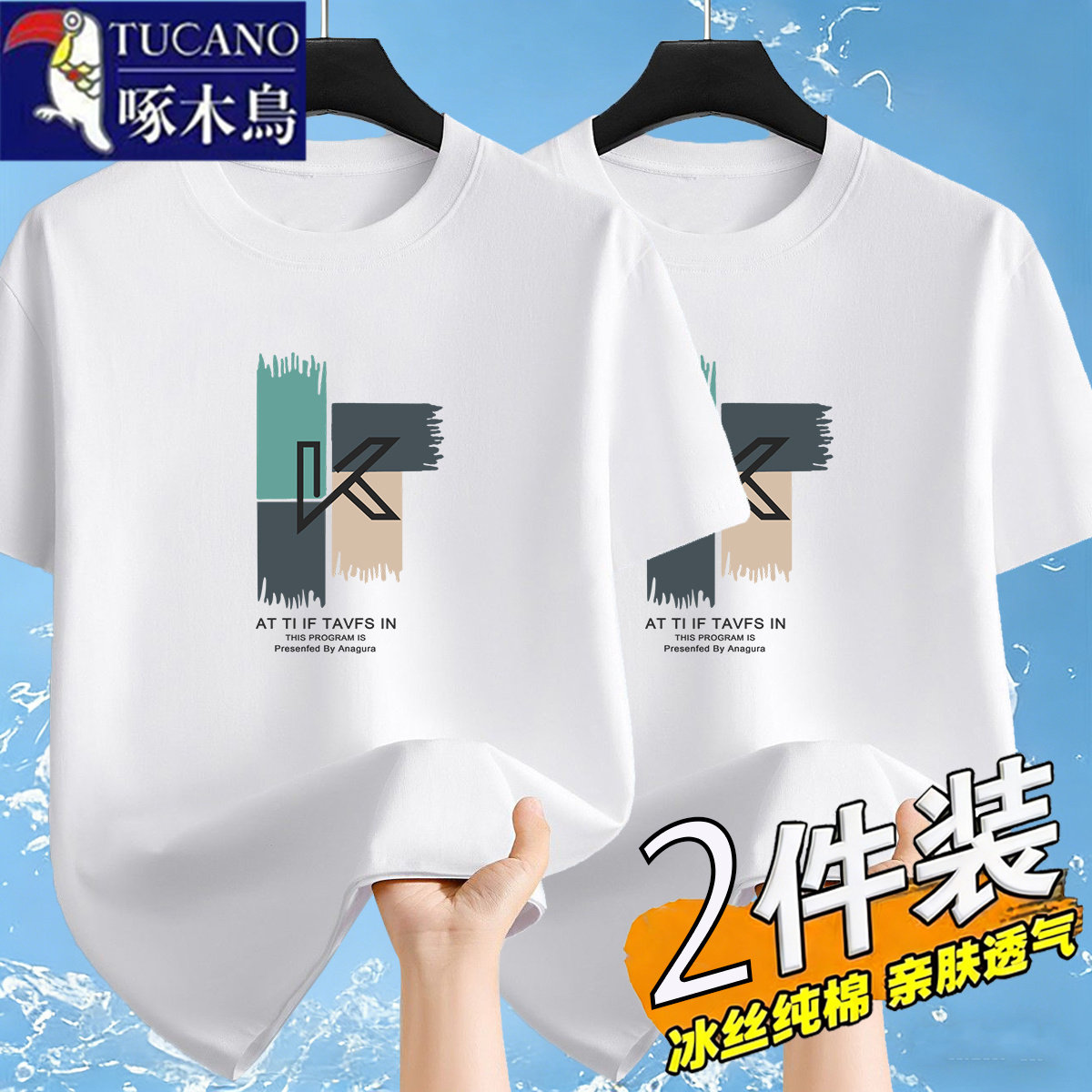 HomeProducts啄木鸟纯棉短袖男士t恤2026夏季新款学生宽松体恤圆领半袖上衣
