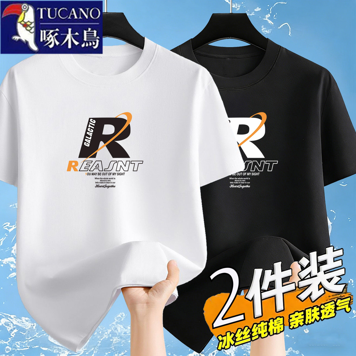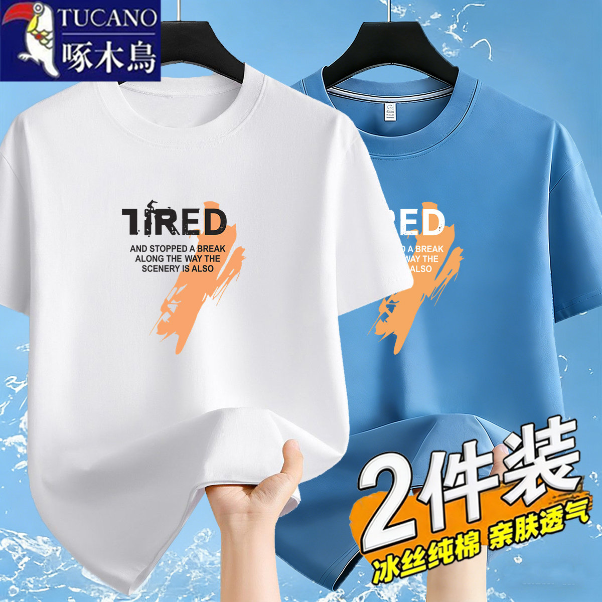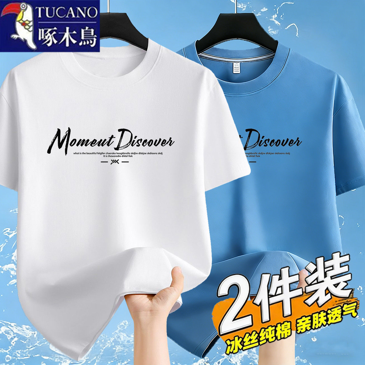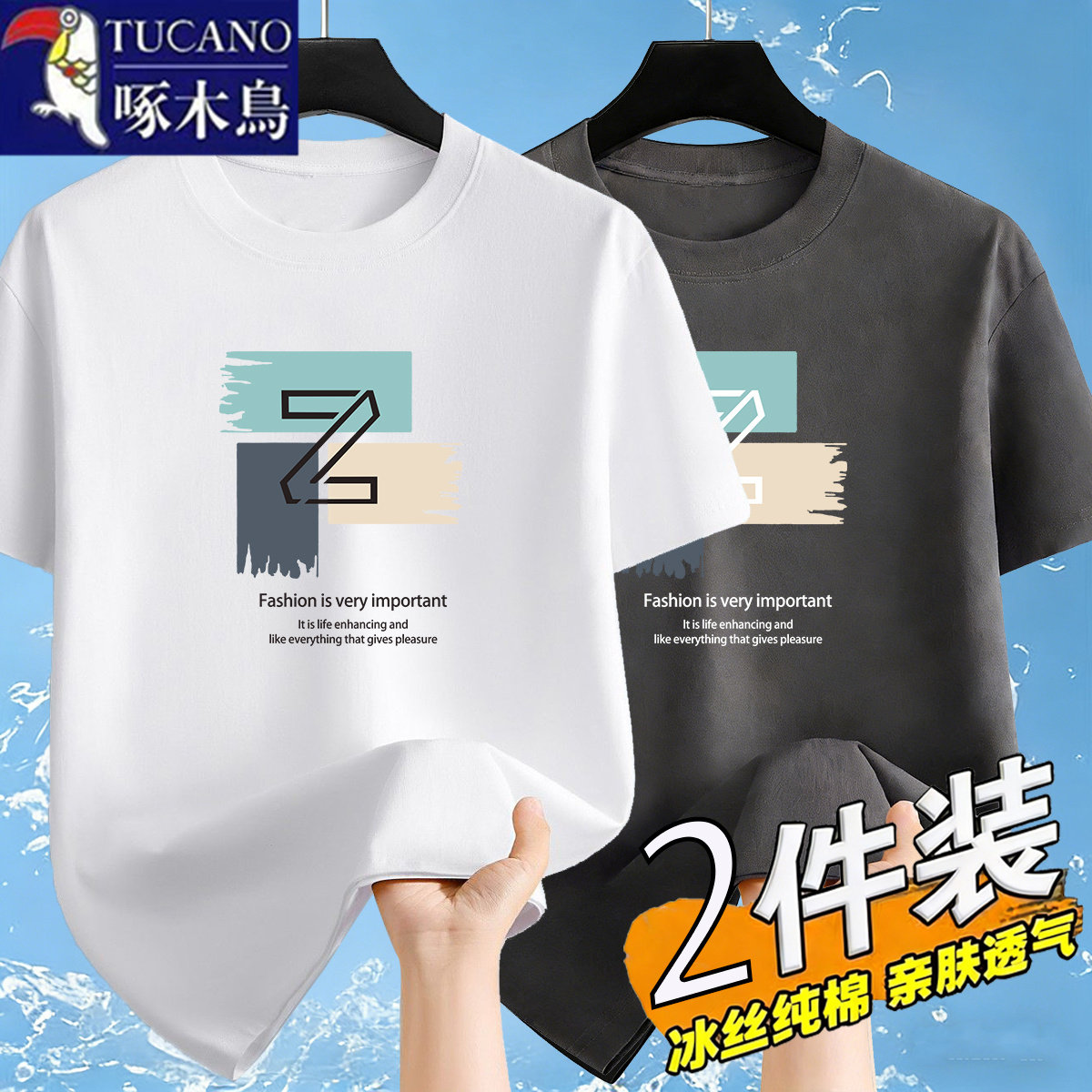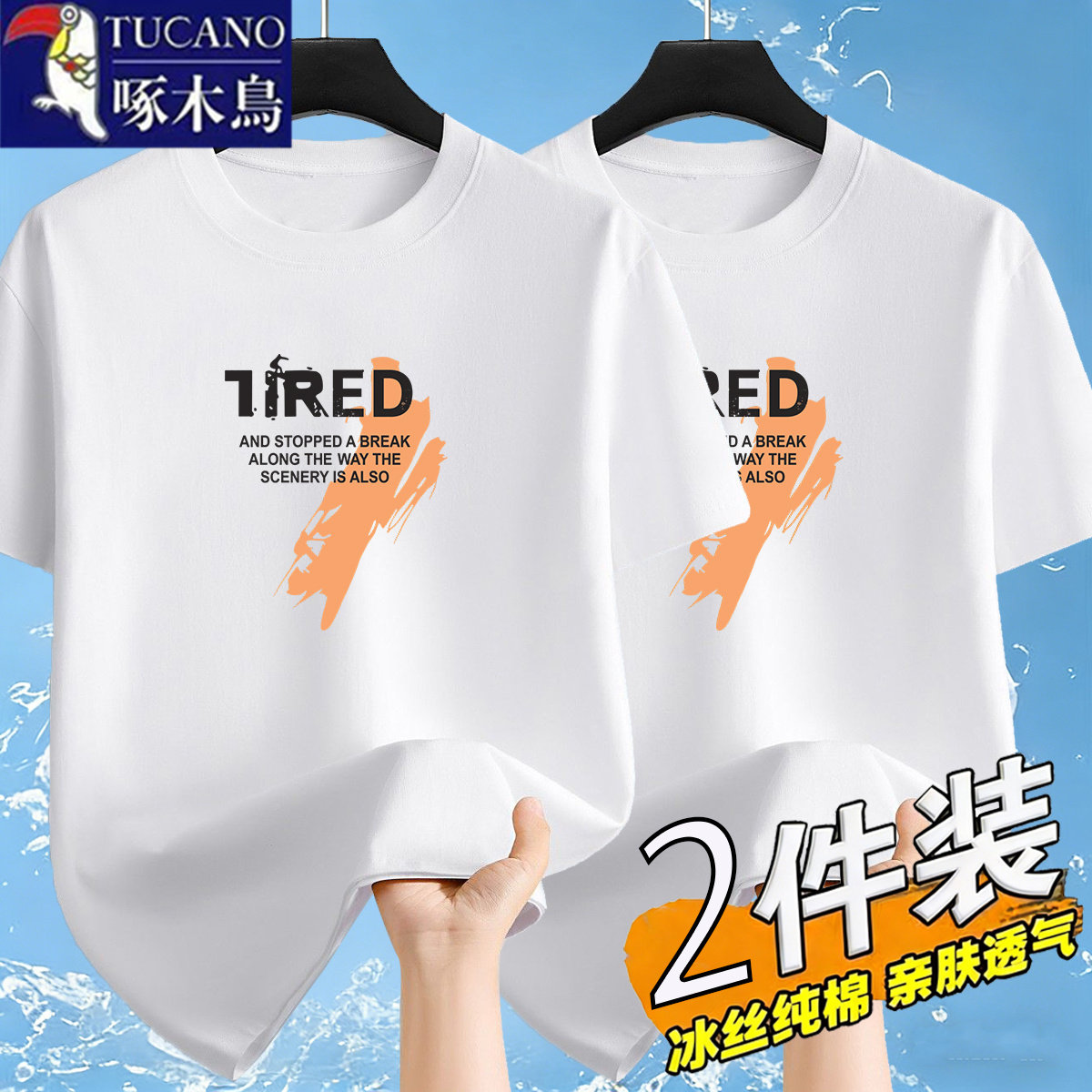 HomeProducts啄木鸟纯棉短袖男士t恤2026夏季新款学生宽松体恤圆领半袖上衣