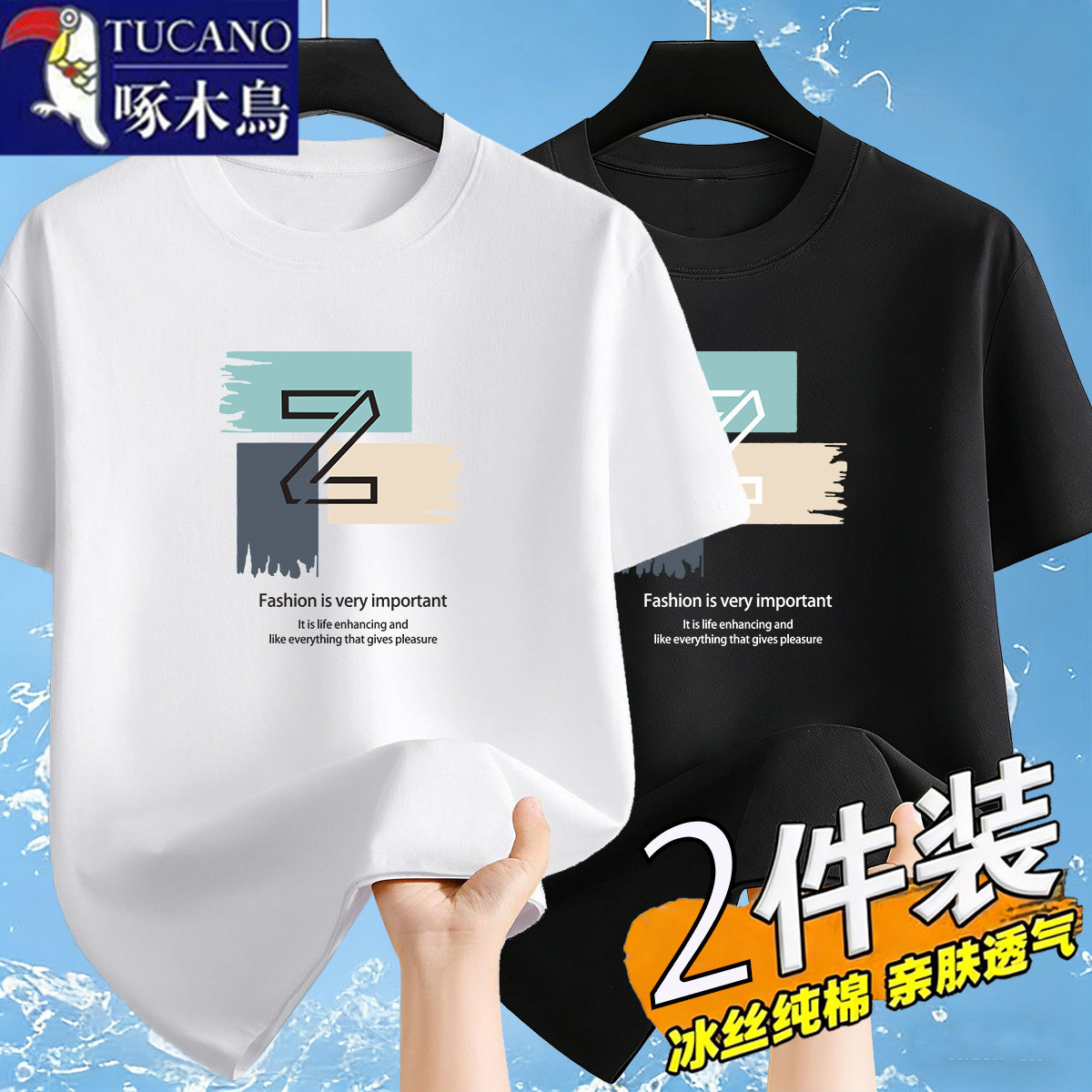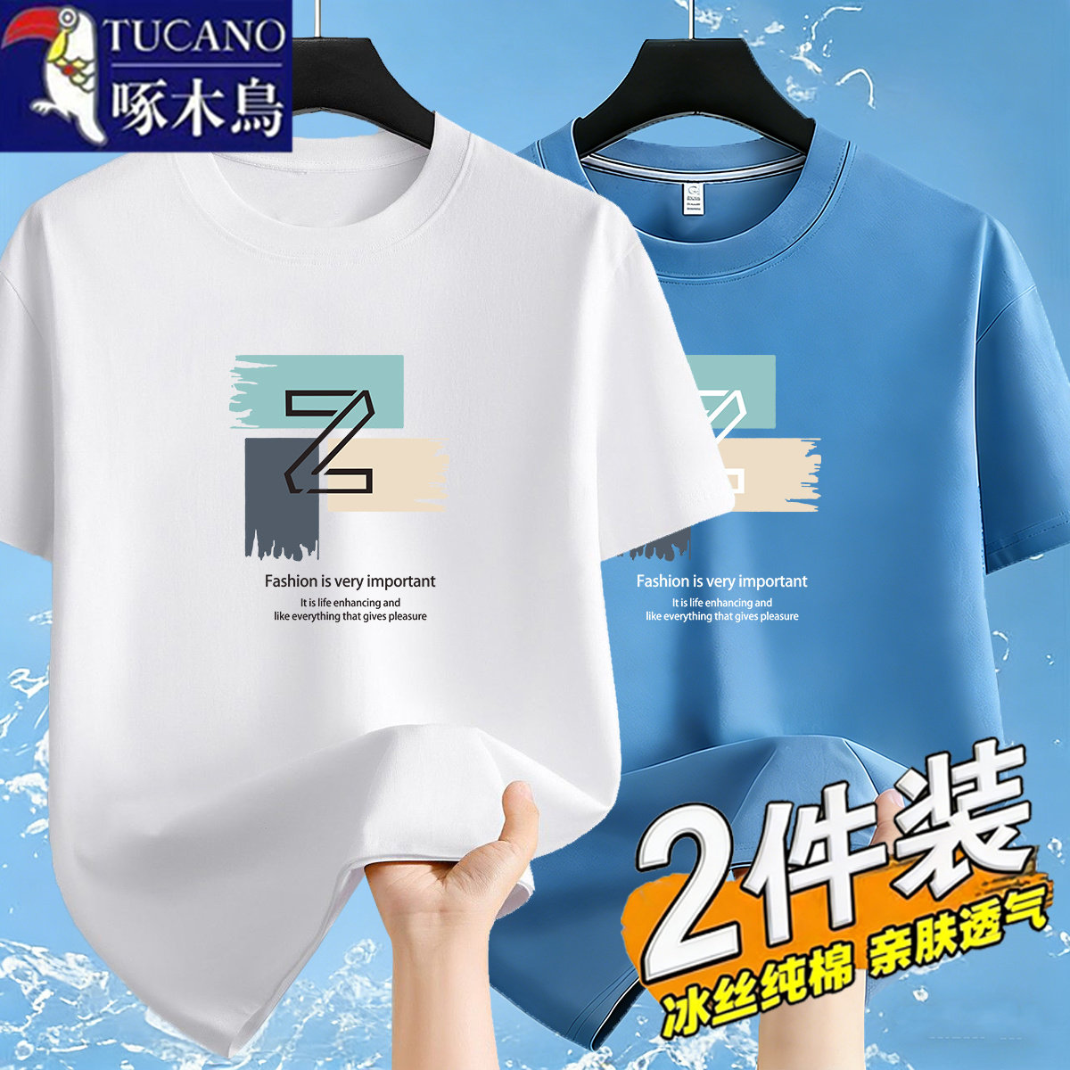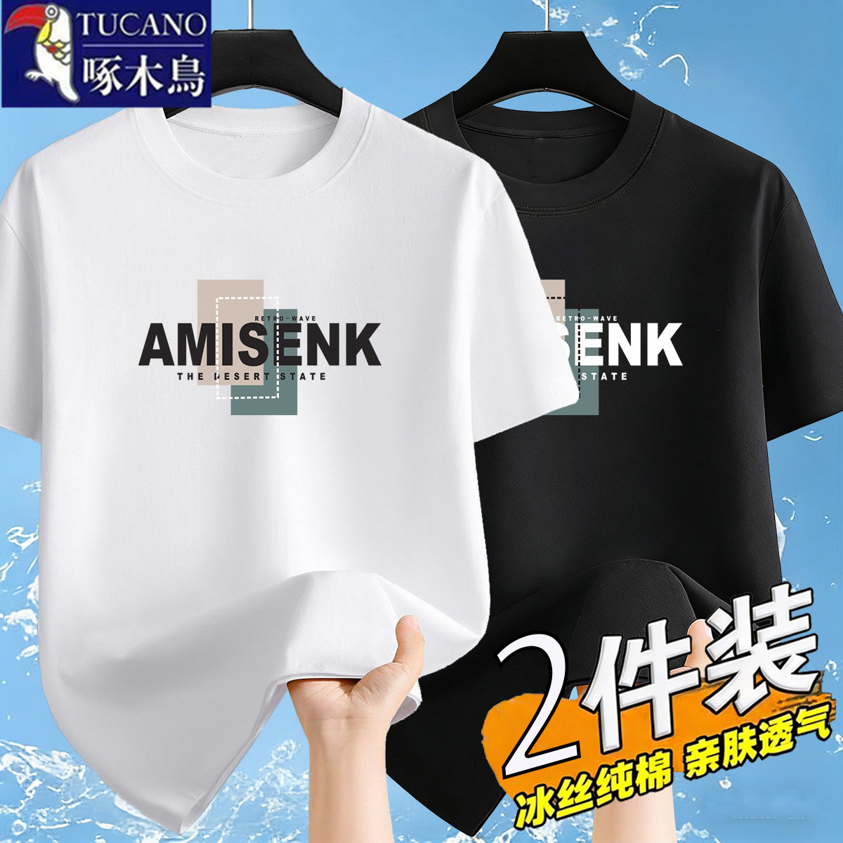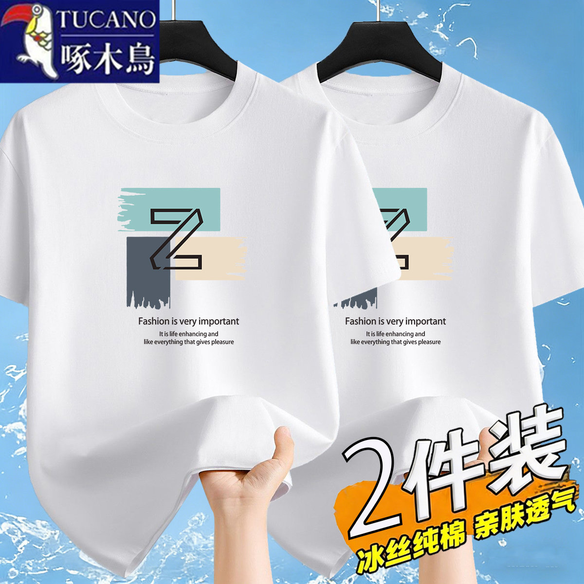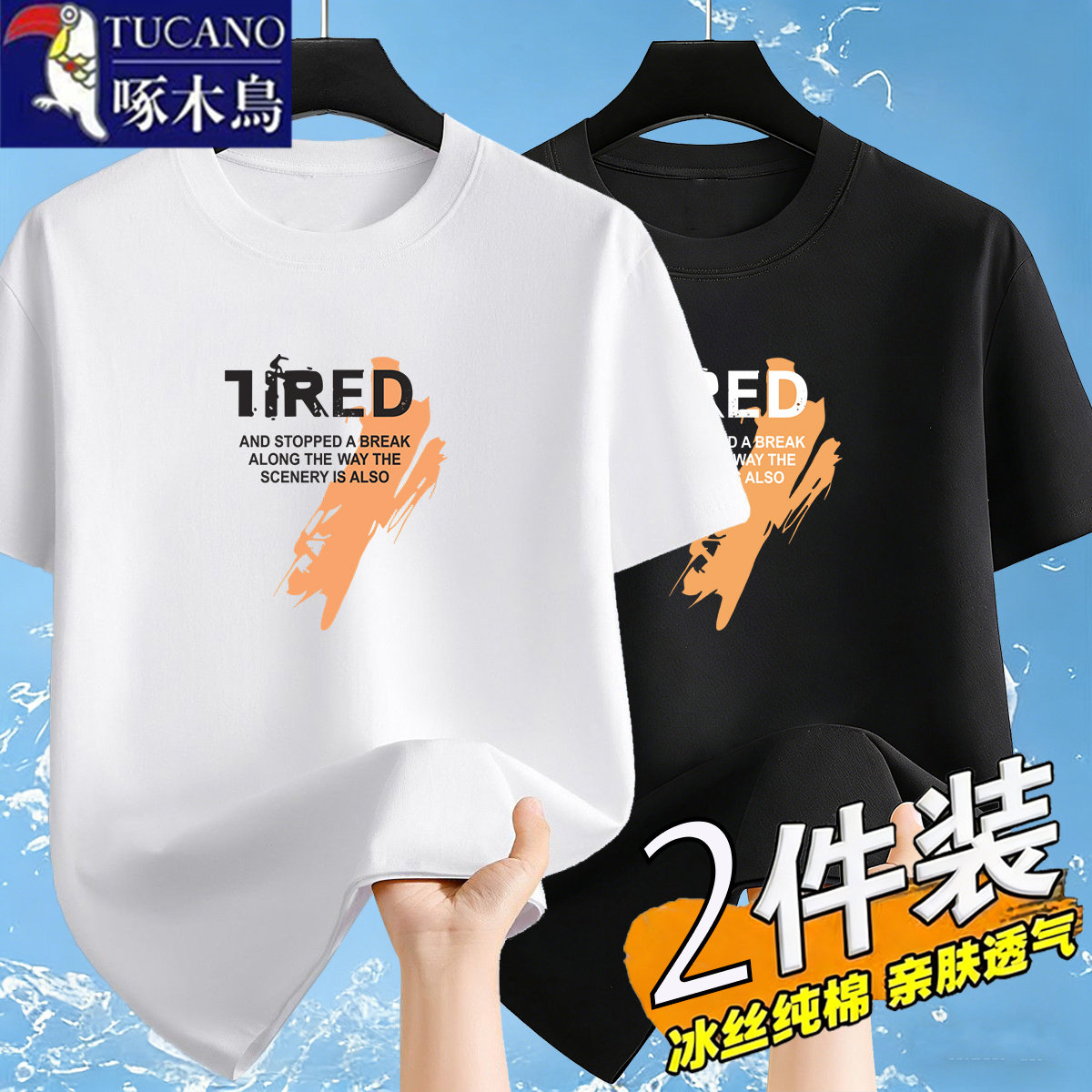 HomeProducts啄木鸟纯棉短袖男士t恤2026夏季新款学生宽松体恤圆领半袖上衣