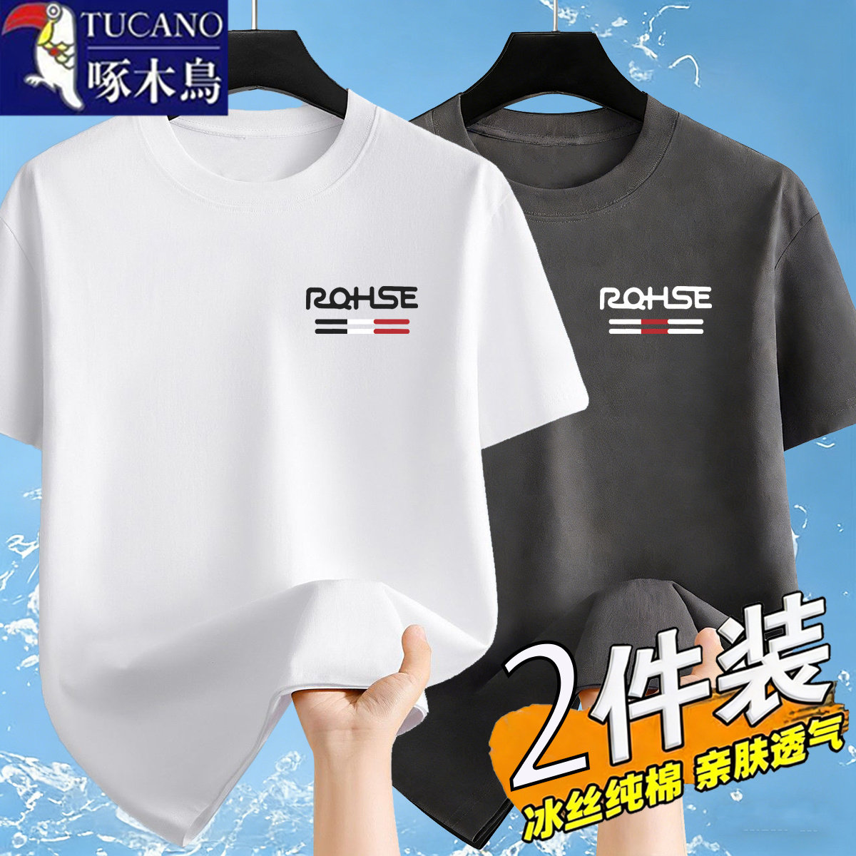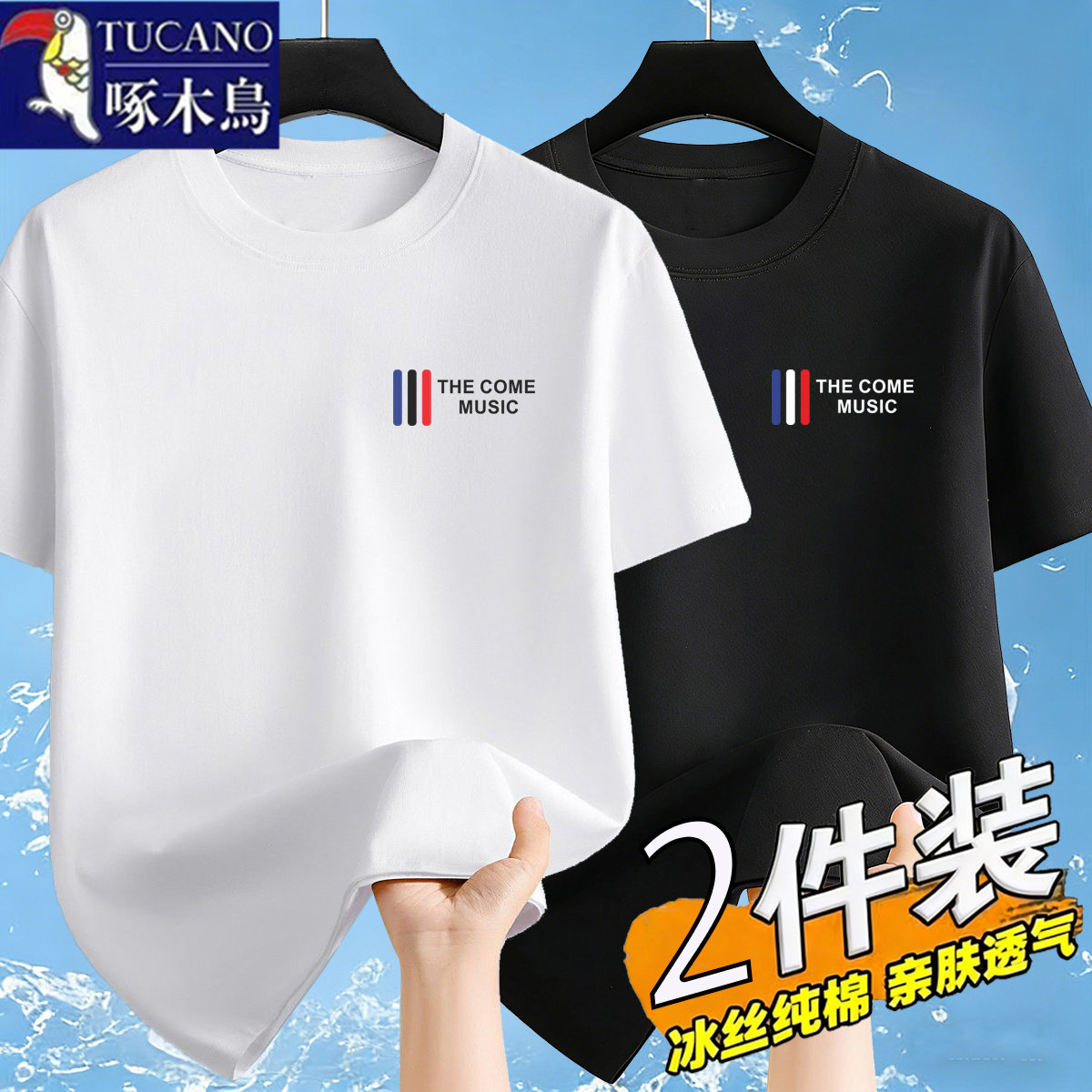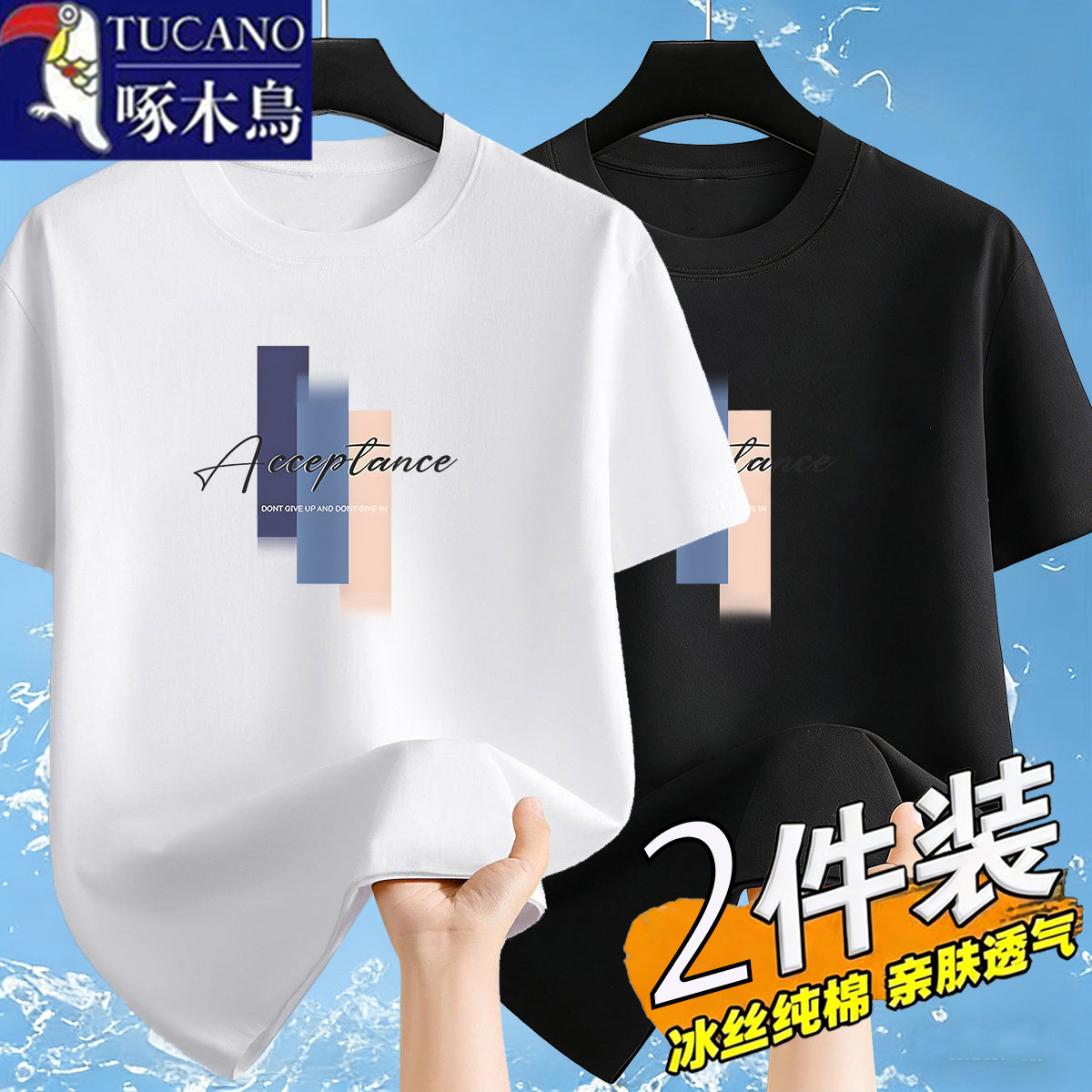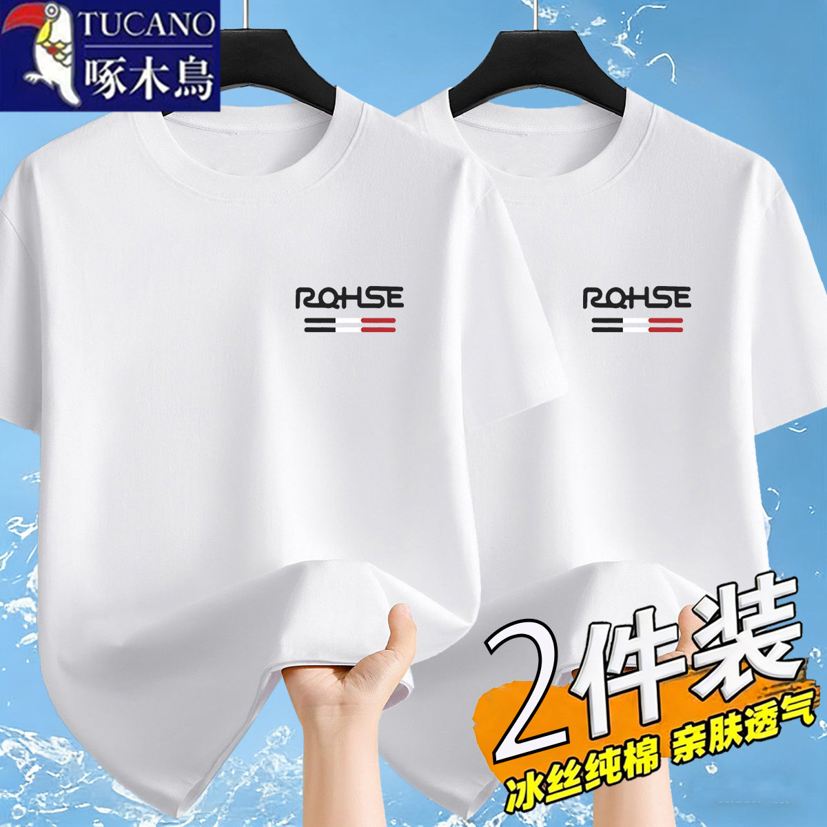 啄木鸟纯棉短袖男士t恤2026夏季新款学生宽松体恤圆领半袖上衣