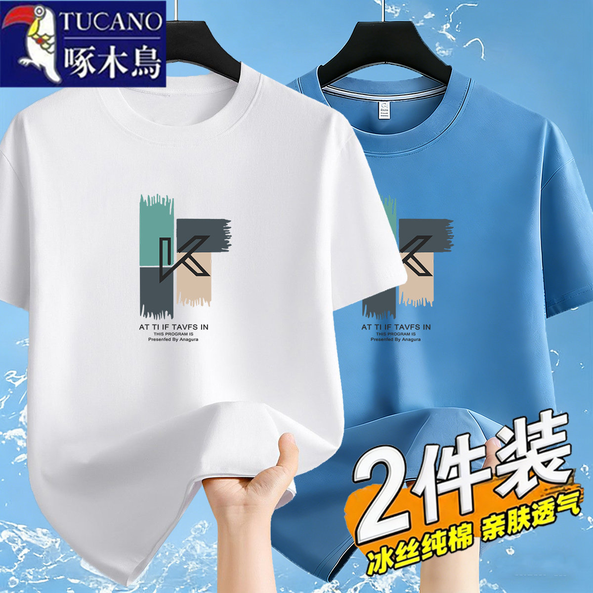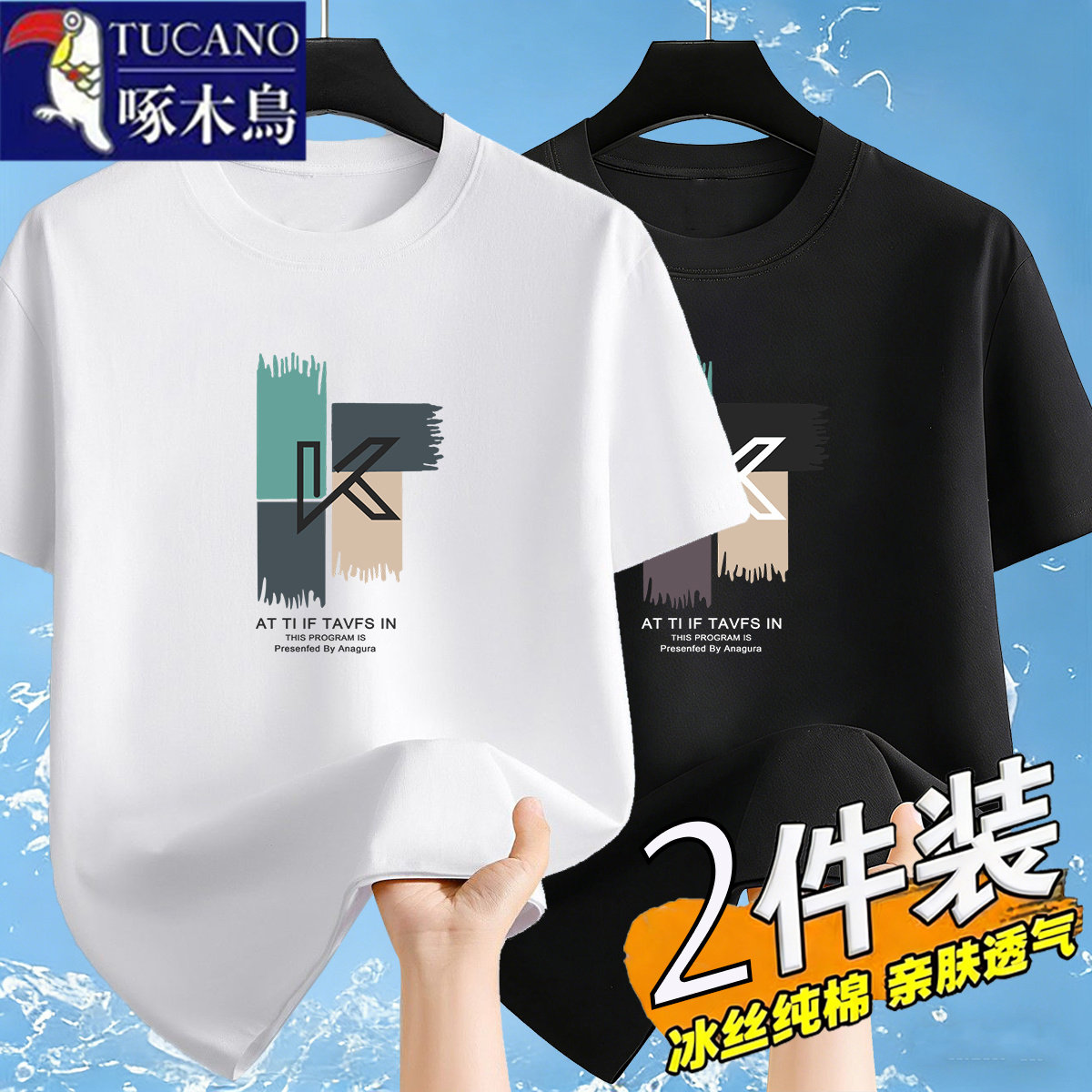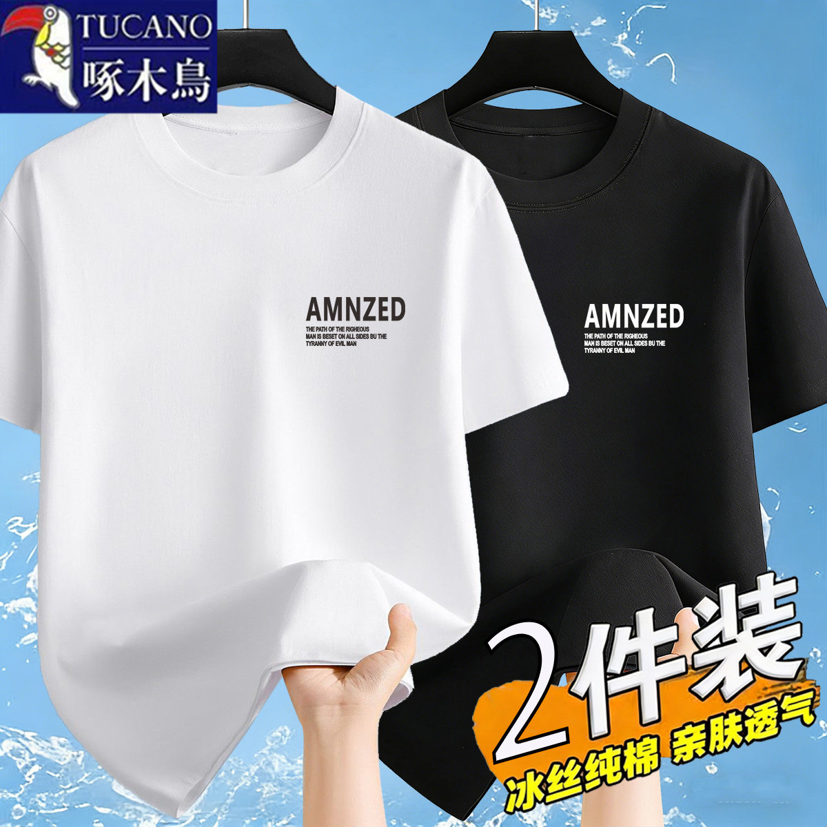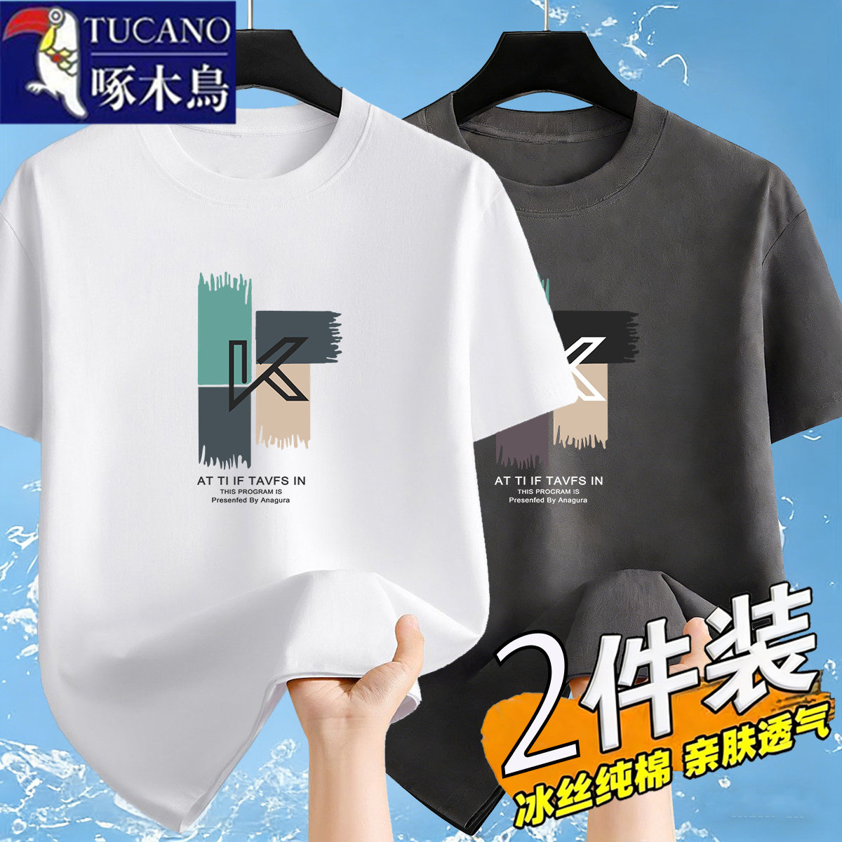 啄木鸟纯棉短袖男士t恤2026夏季新款学生宽松体恤圆领半袖上衣