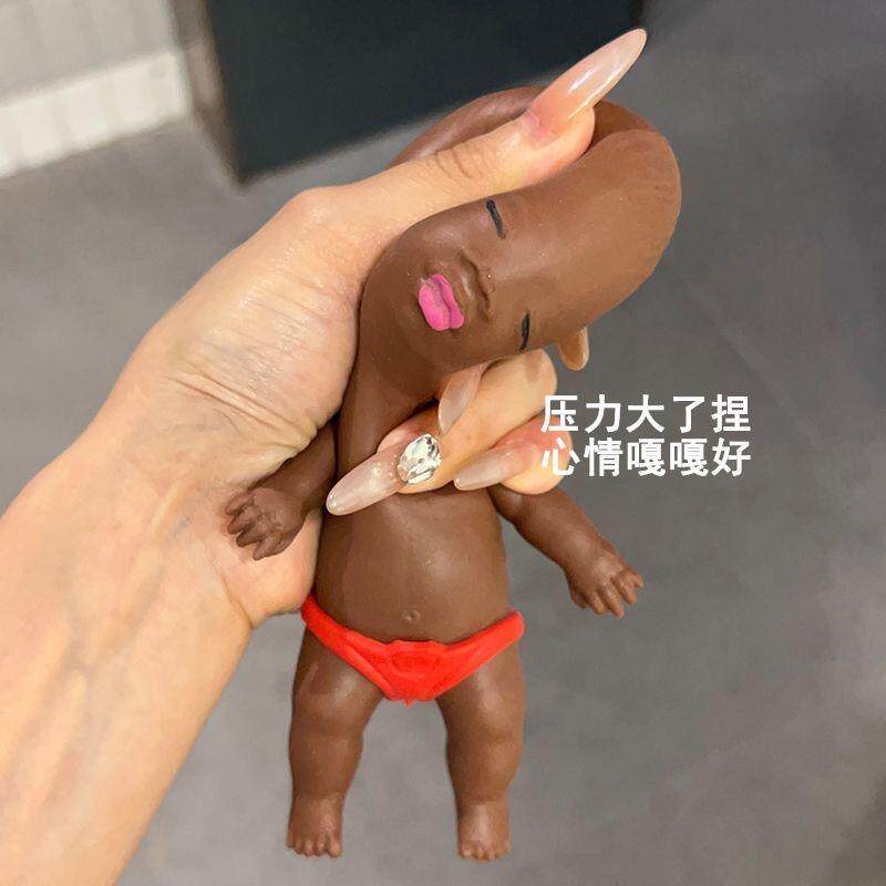 娜塔莎小黑娃捏捏丑萌掌心娃娃办公室焦虑解压神器创意玩具小黑孩
