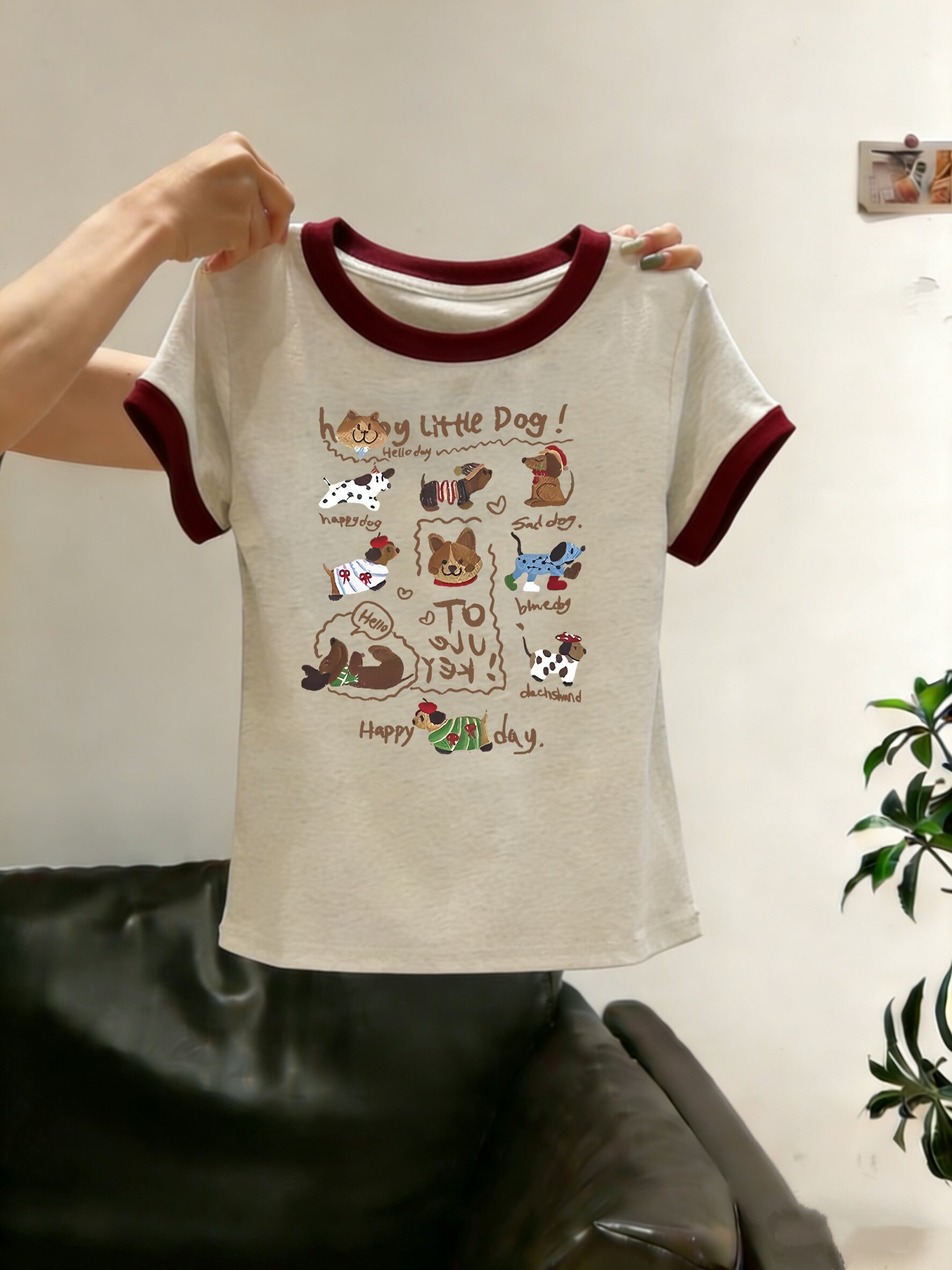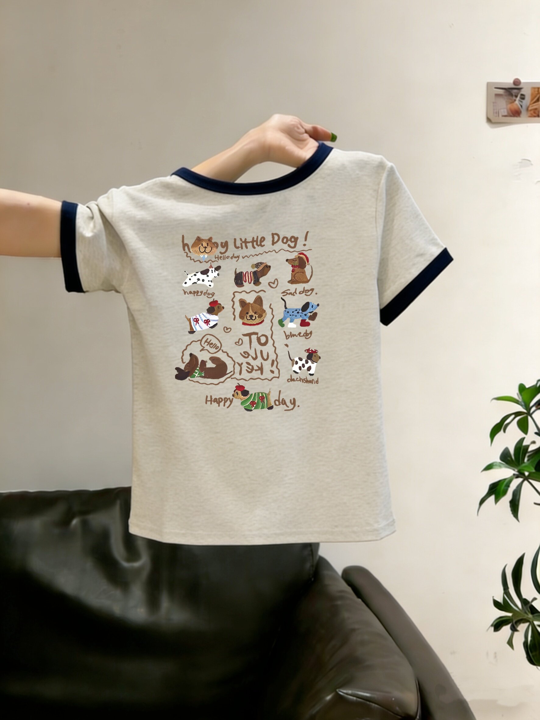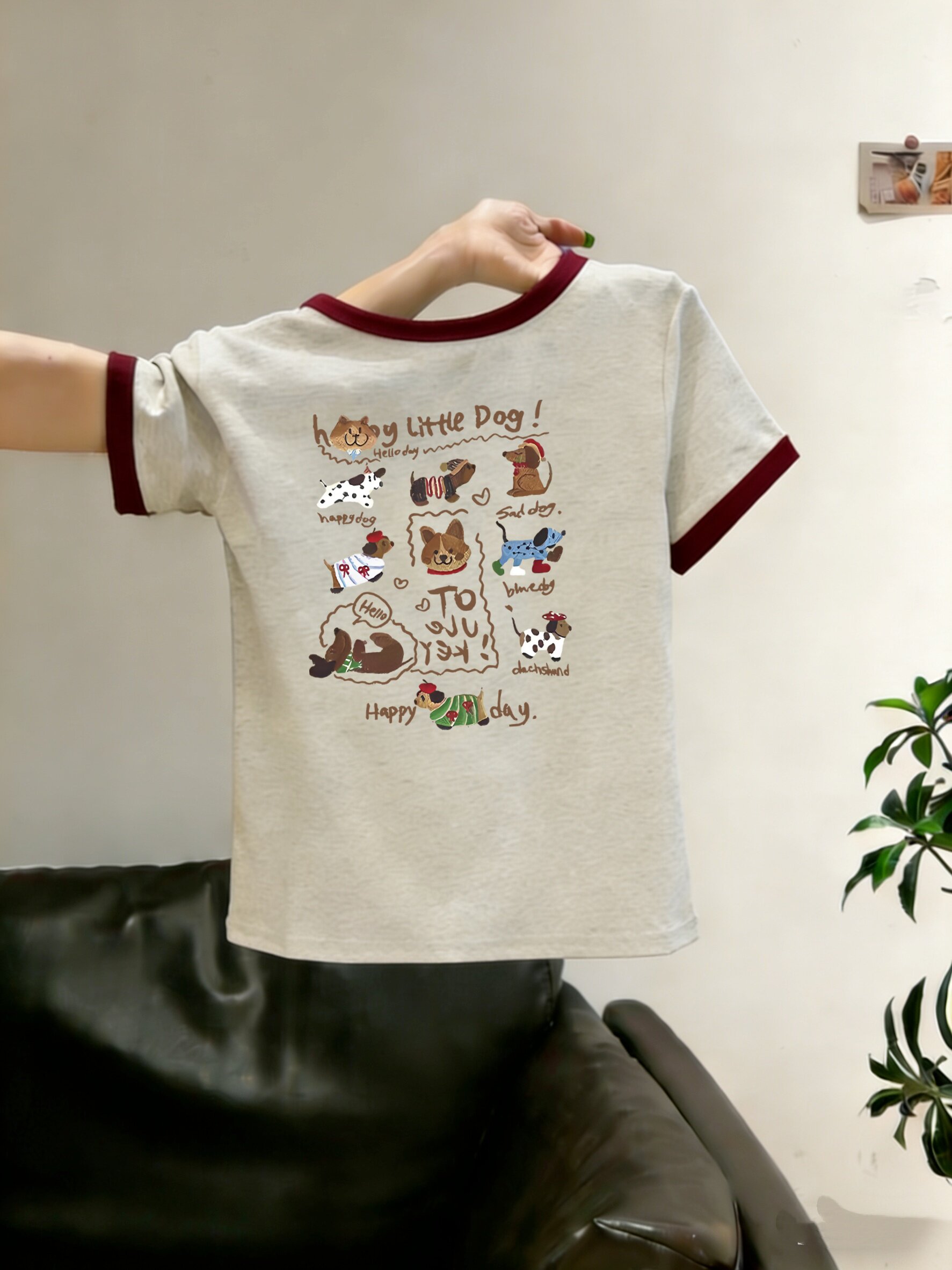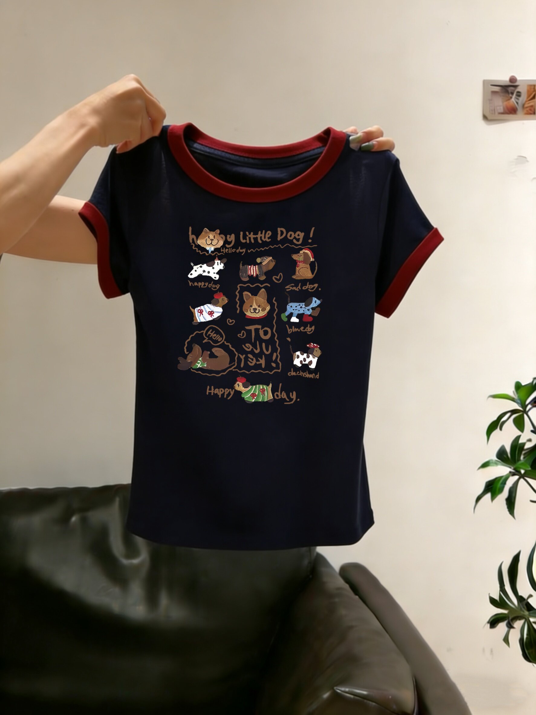 藏青拼酒红-10只happy小狗 / S