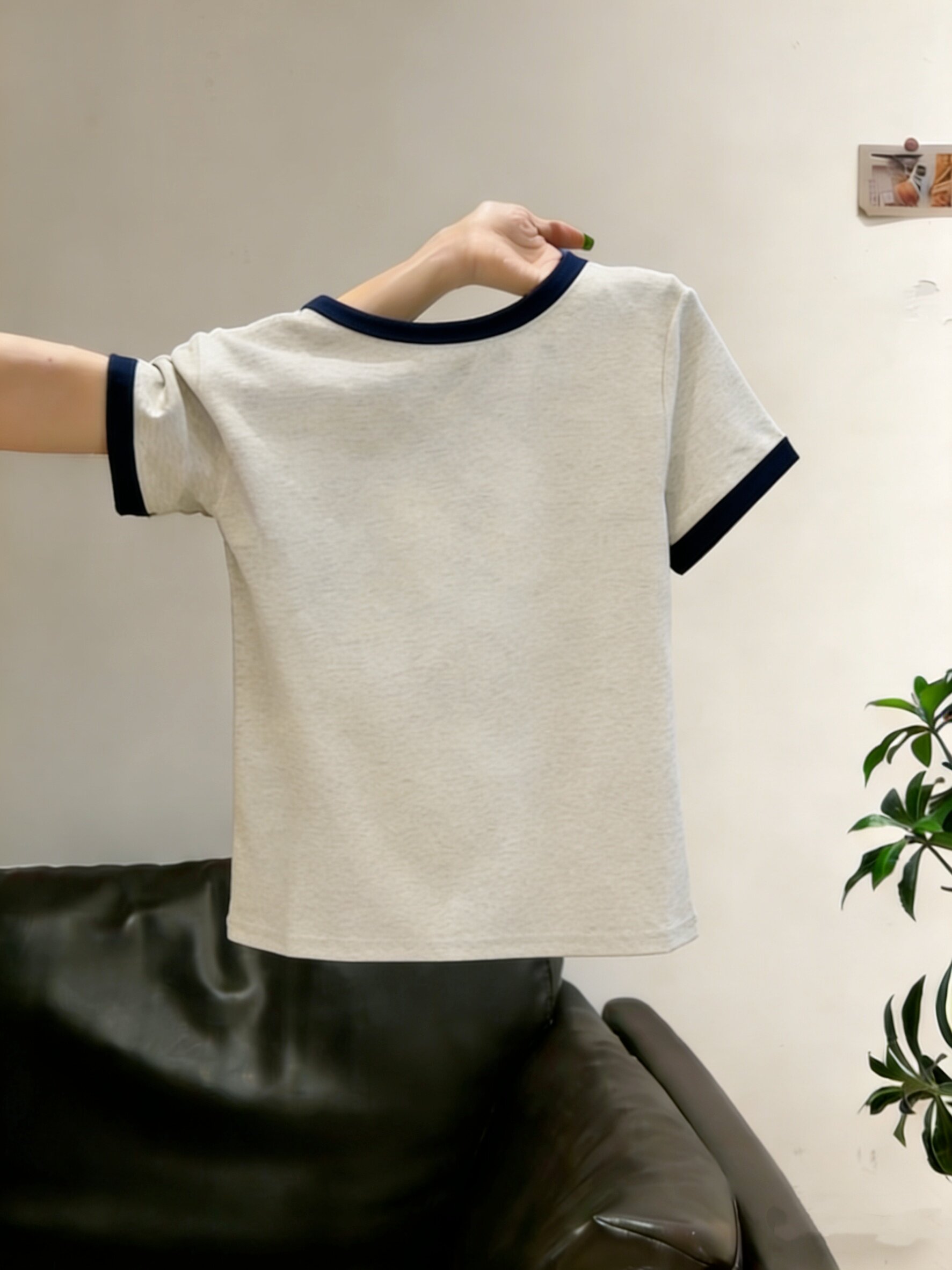 2026春夏季流行爆款拼色正肩短袖t恤女欧货时尚百搭减龄显瘦上衣