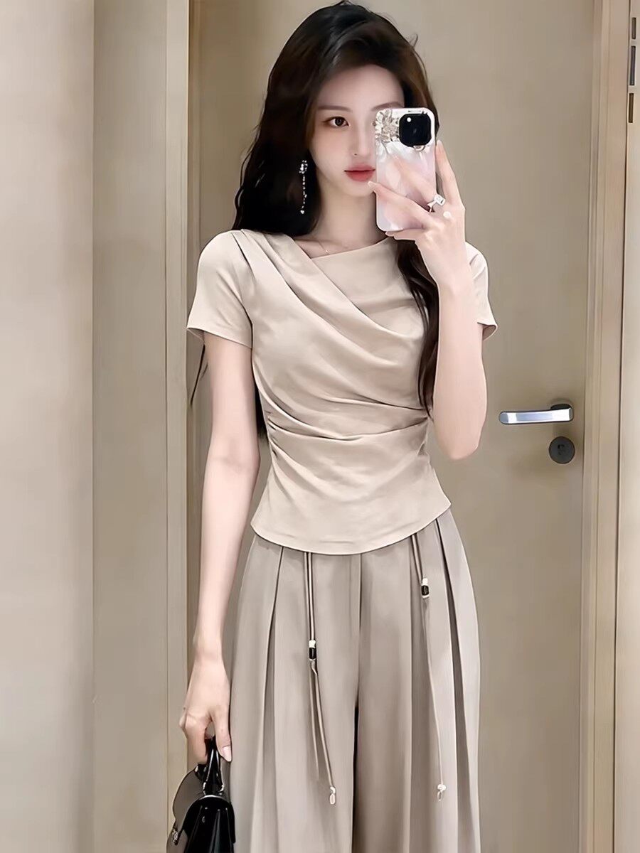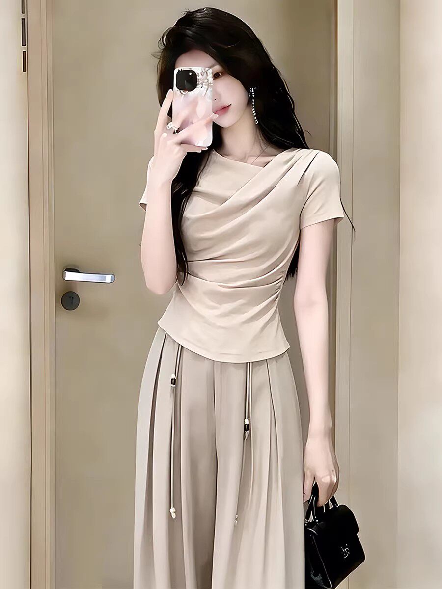 适合150小个子穿搭一整套巨好看套装女2026夏季新款阔腿裤两件套