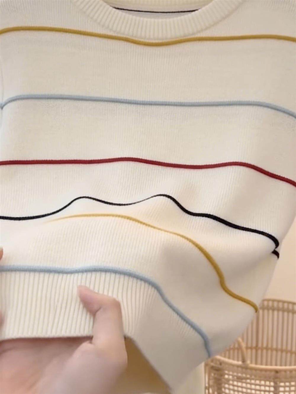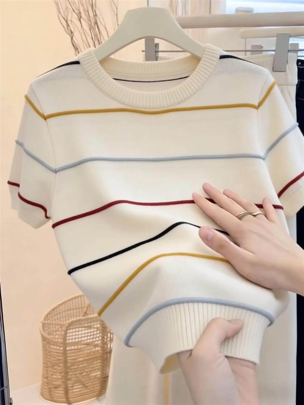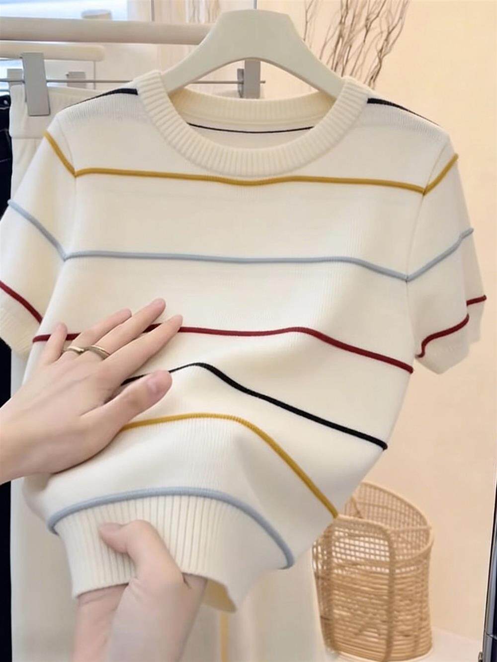 绝美巨好看的小上衣超火减龄针织条纹短袖t恤女2026新款夏季穿搭