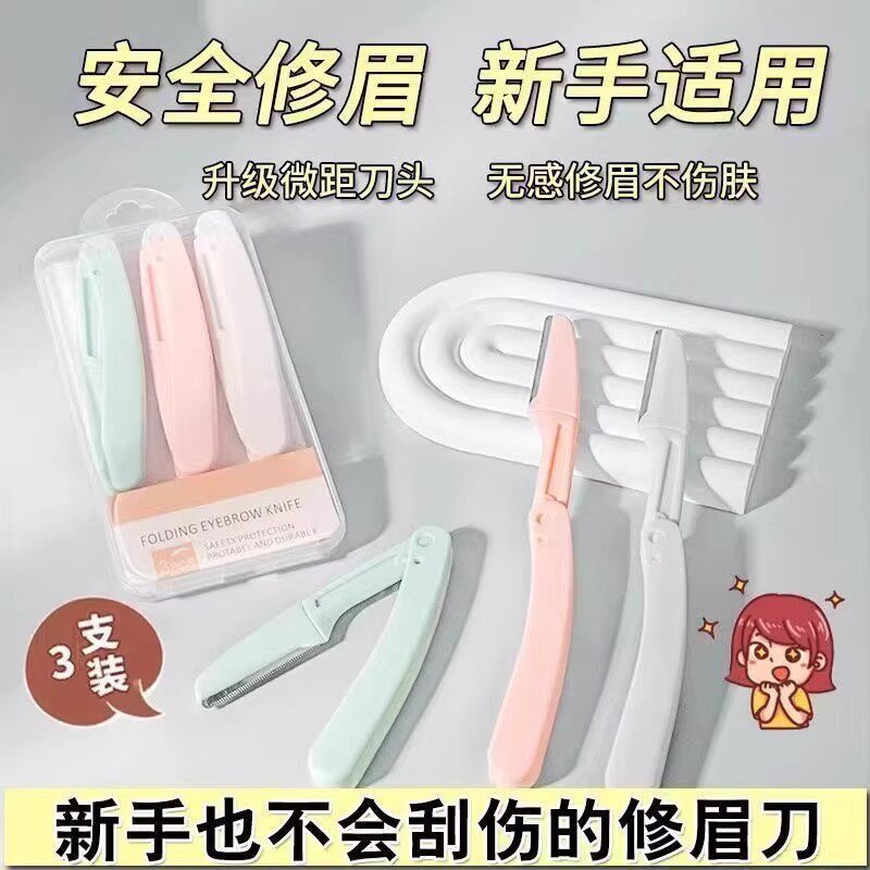 安全型折叠修眉刀刮眉刀女防刮伤初学者套装美妆工具可替换刀片