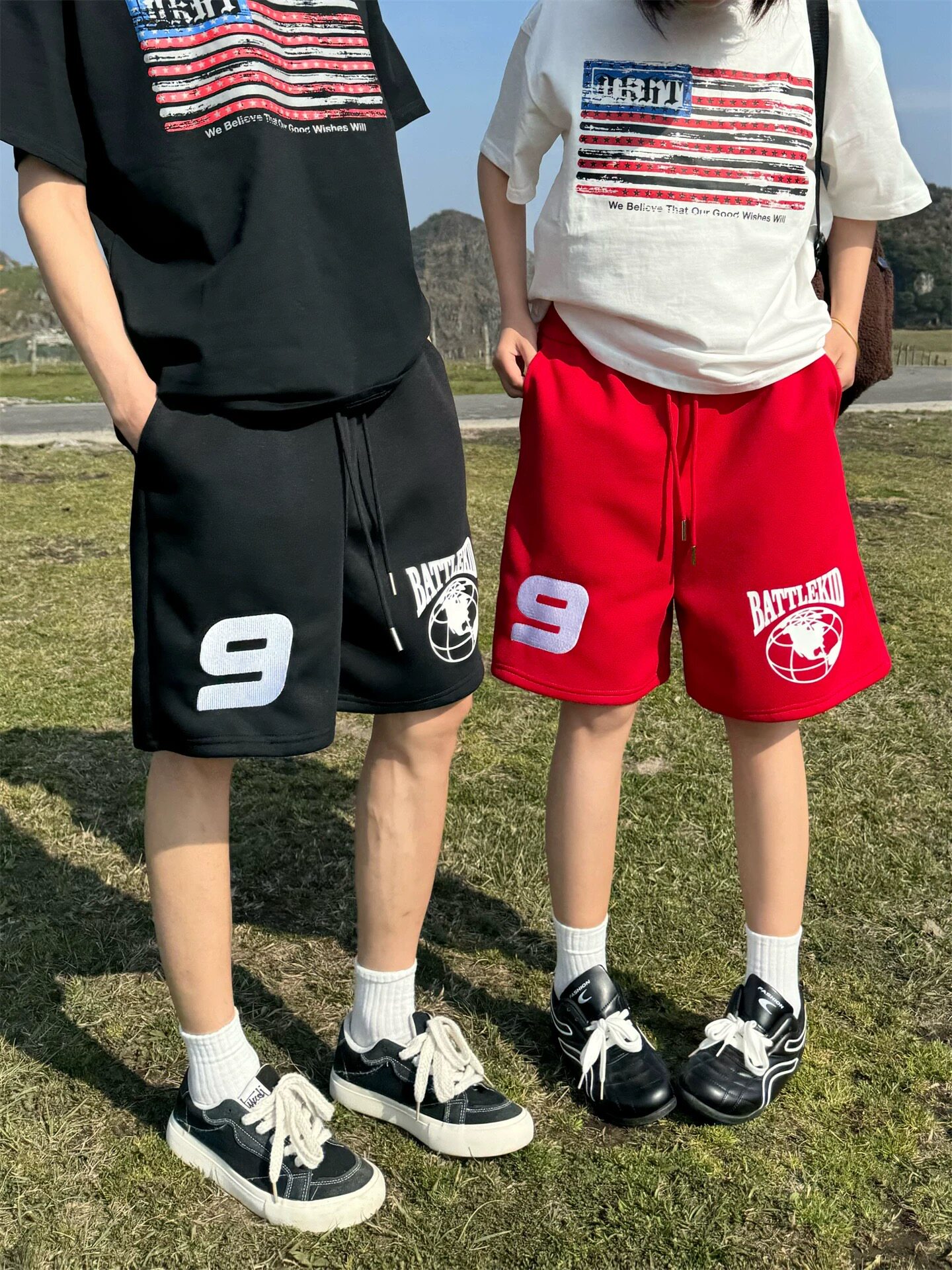 HomeProducts美式复古字母印花休闲短裤男女2026夏季新款阔腿百搭抽绳五分裤潮