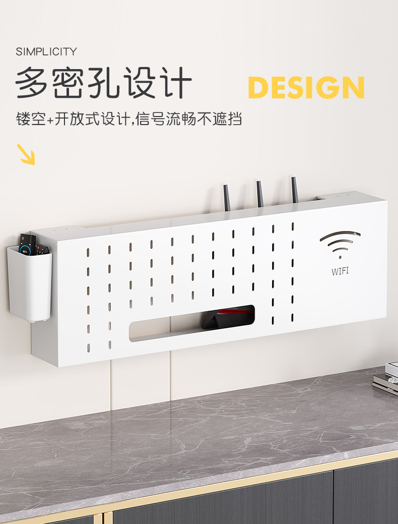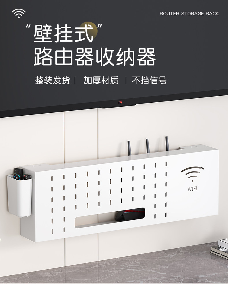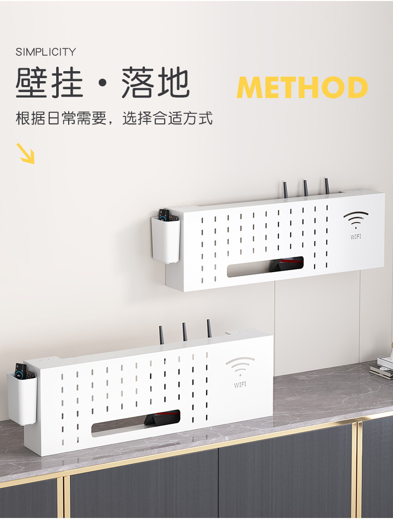 路由器置物架wifi放置架免打孔上墙遮挡收纳盒光猫插座壁挂理线盒