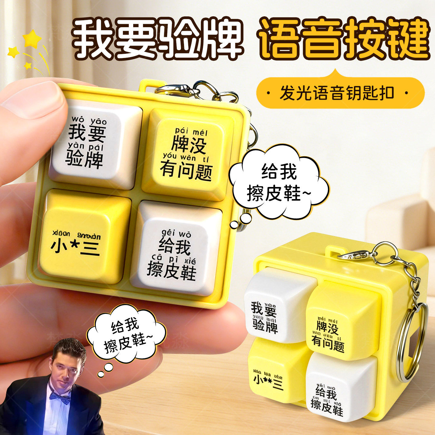 嘎嘎滴辣虾按键盘玩具捧腹笑奶龙不知火舞语音发光钥匙扣解压神器