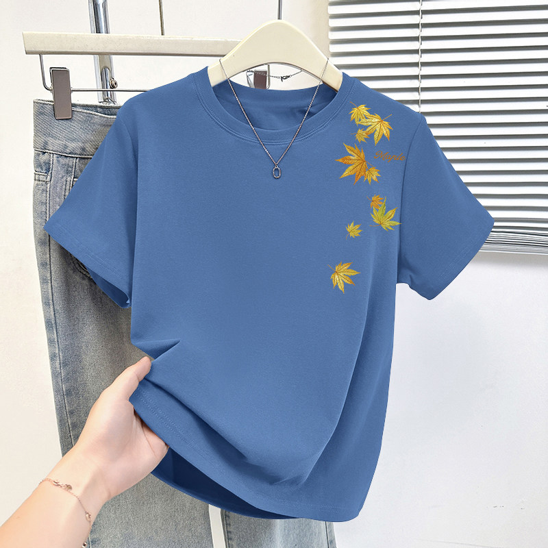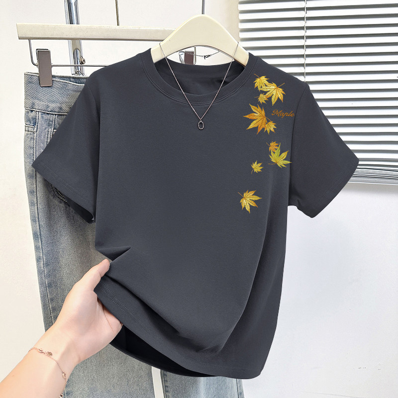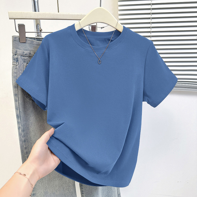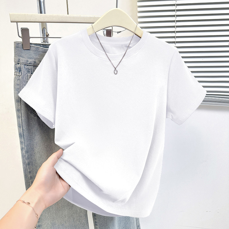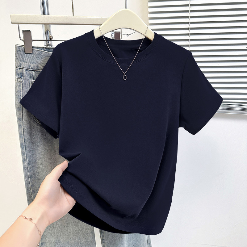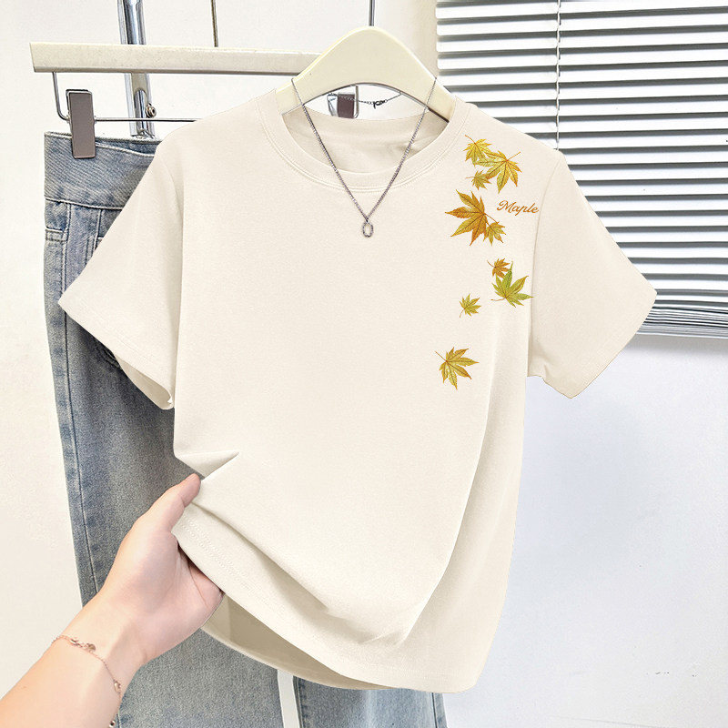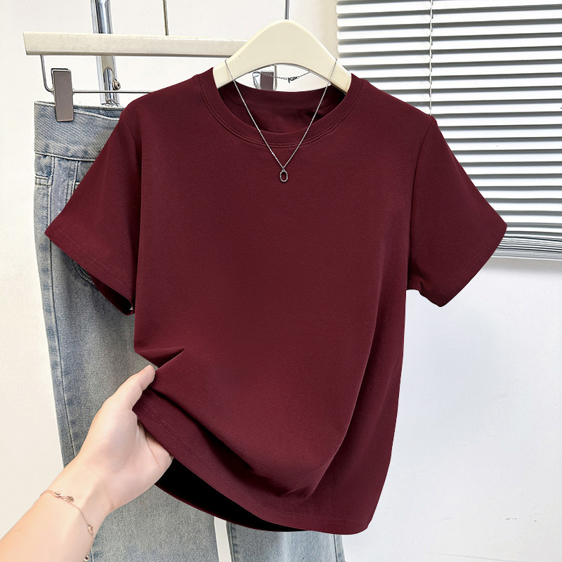 HomeProducts杏色纯棉100%气质减龄大码显瘦圆领t恤女士薄款洋气短袖时尚上衣