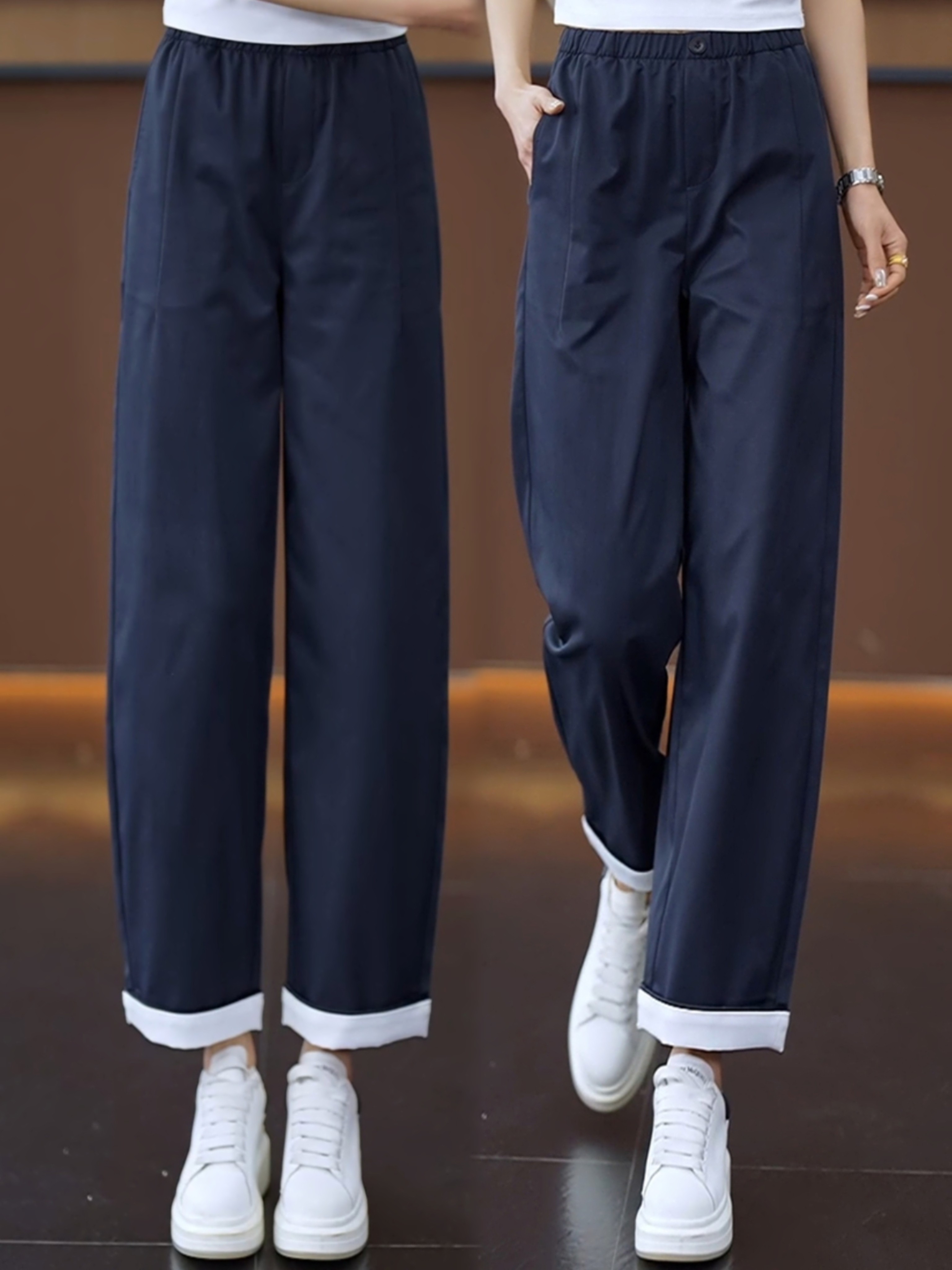 时尚百搭冰丝速干弯刀工装裤女2026夏新款高腰显瘦宽松直筒休闲裤