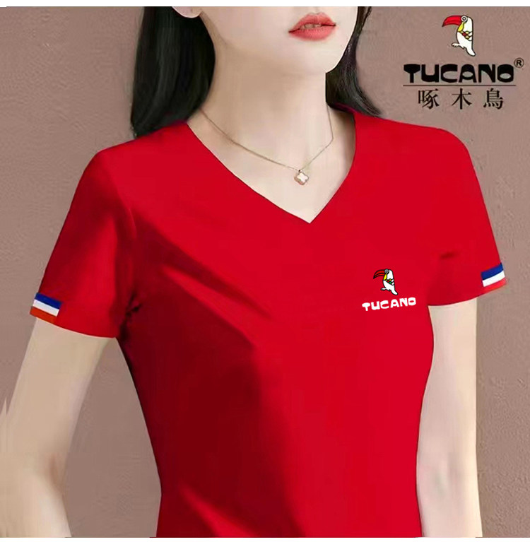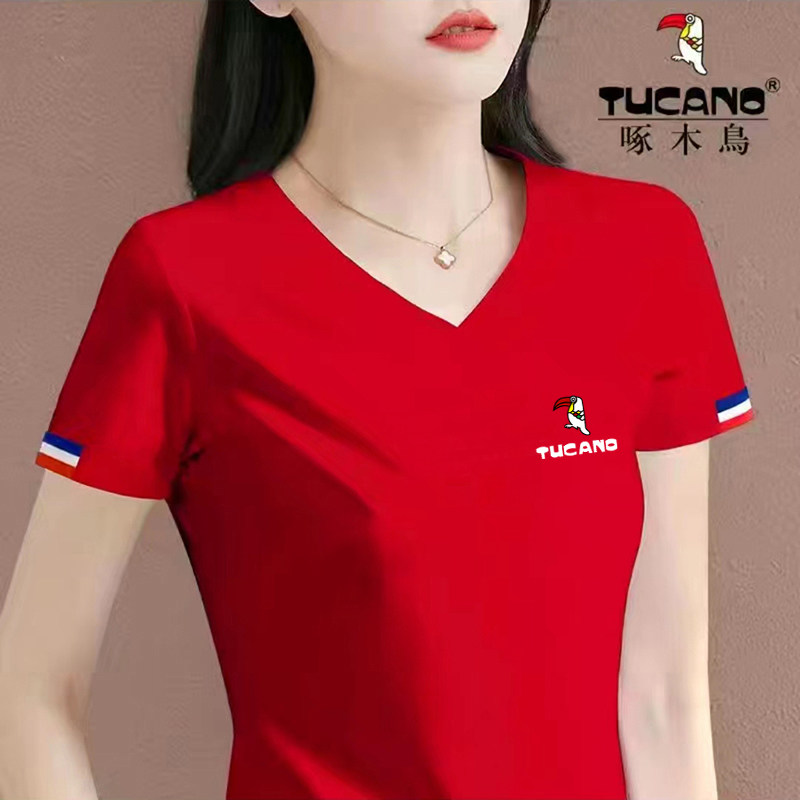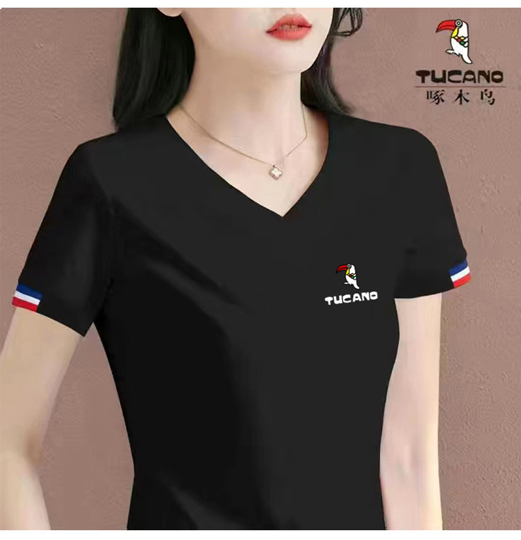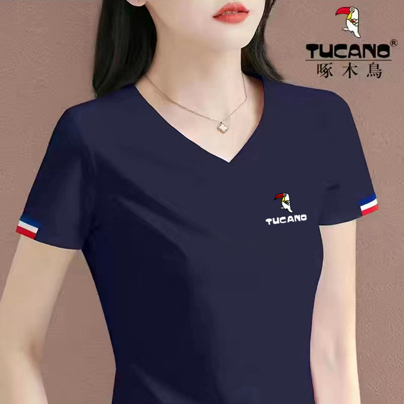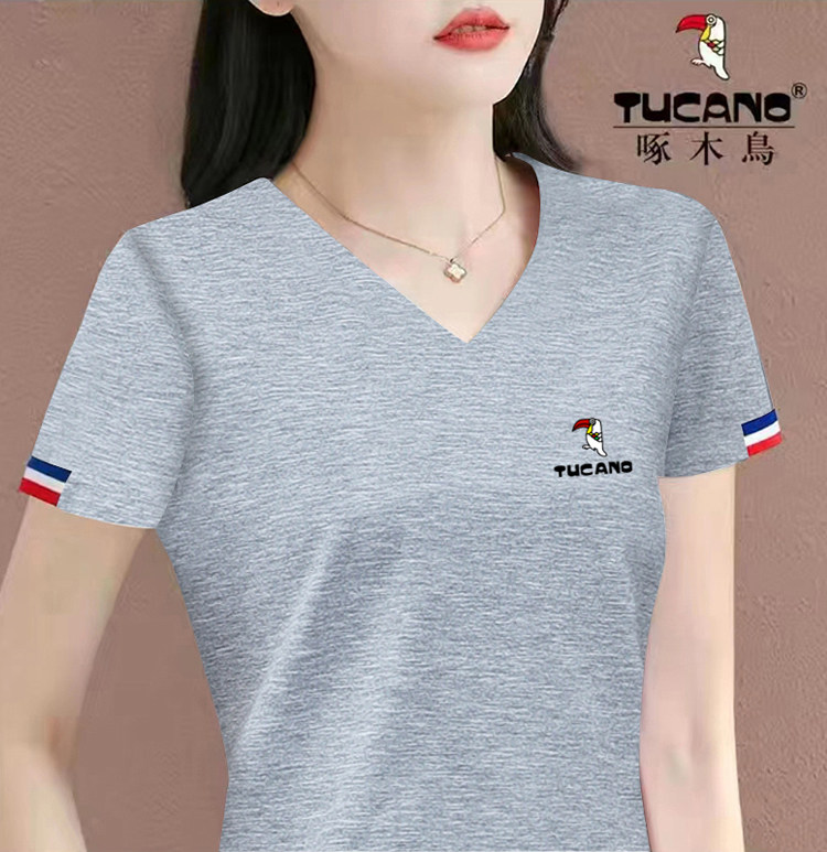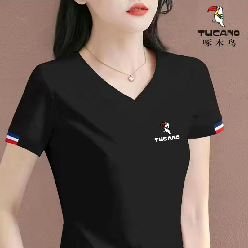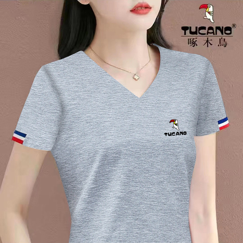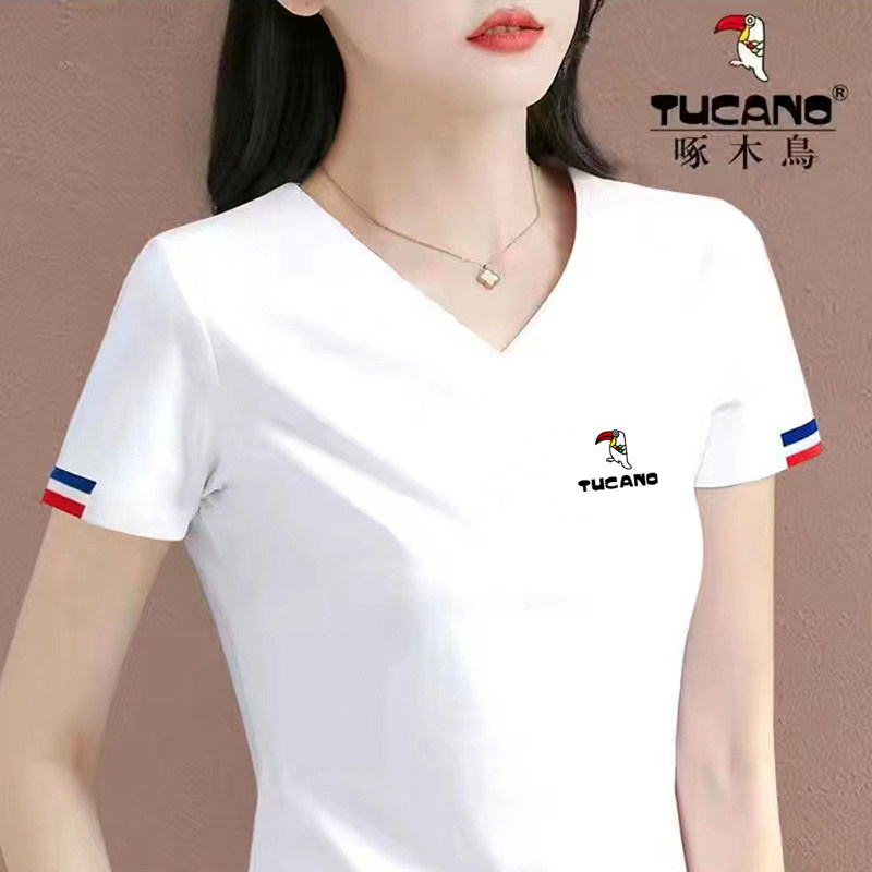 啄木鸟女士V领短袖t恤夏装2026新款休闲时尚纯棉体恤短款夏季上衣