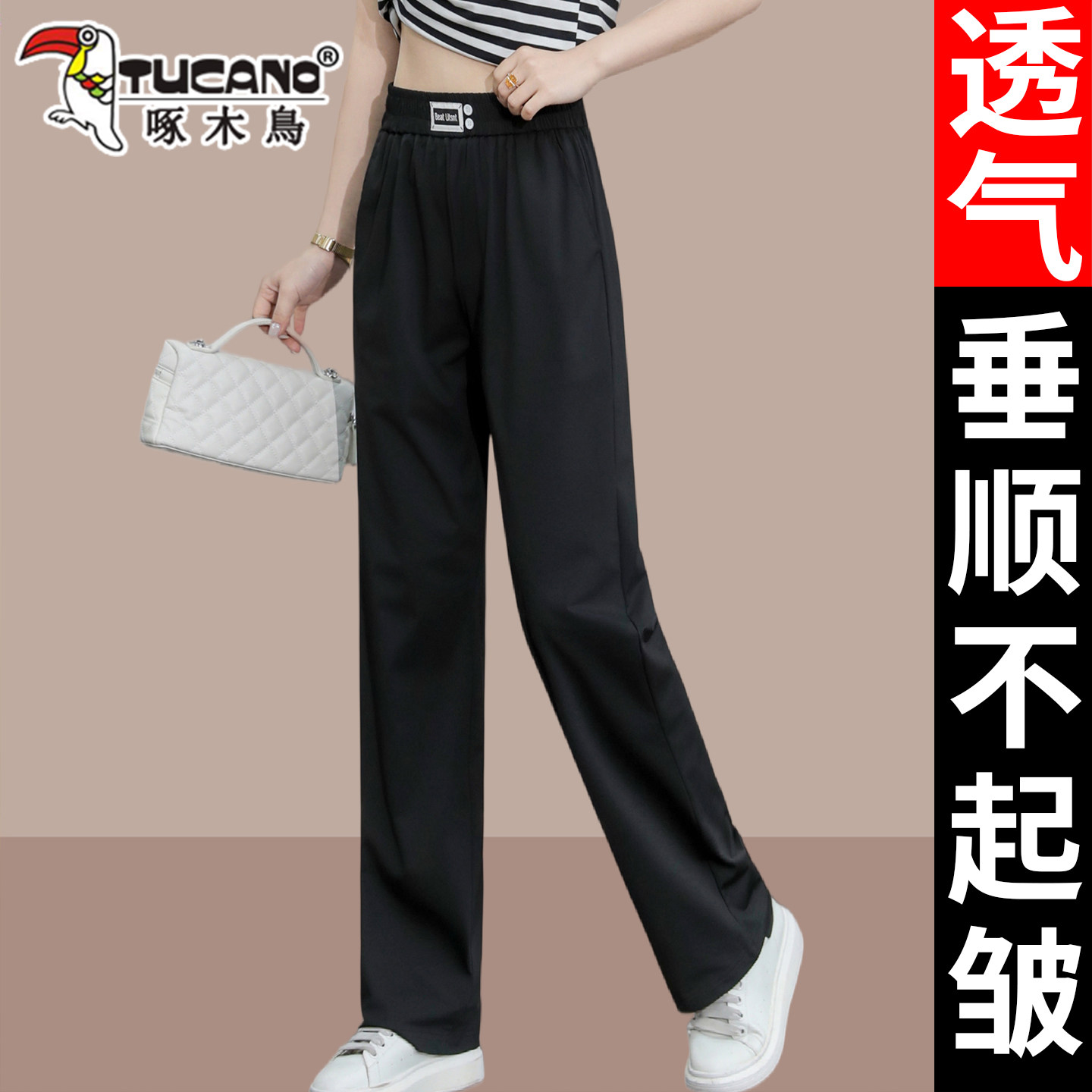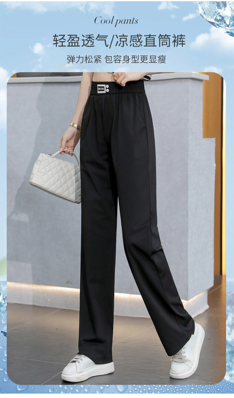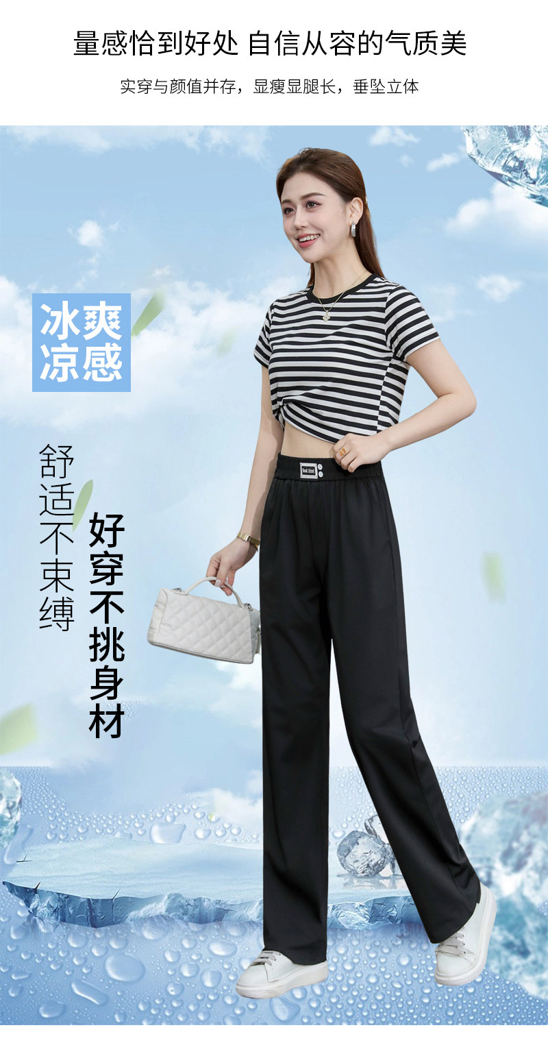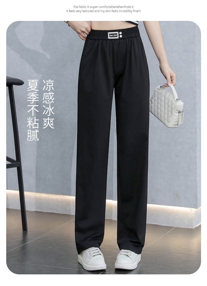 啄木鸟冰丝运动阔腿裤女夏季薄款2026年新款高腰垂感显瘦直筒裤子