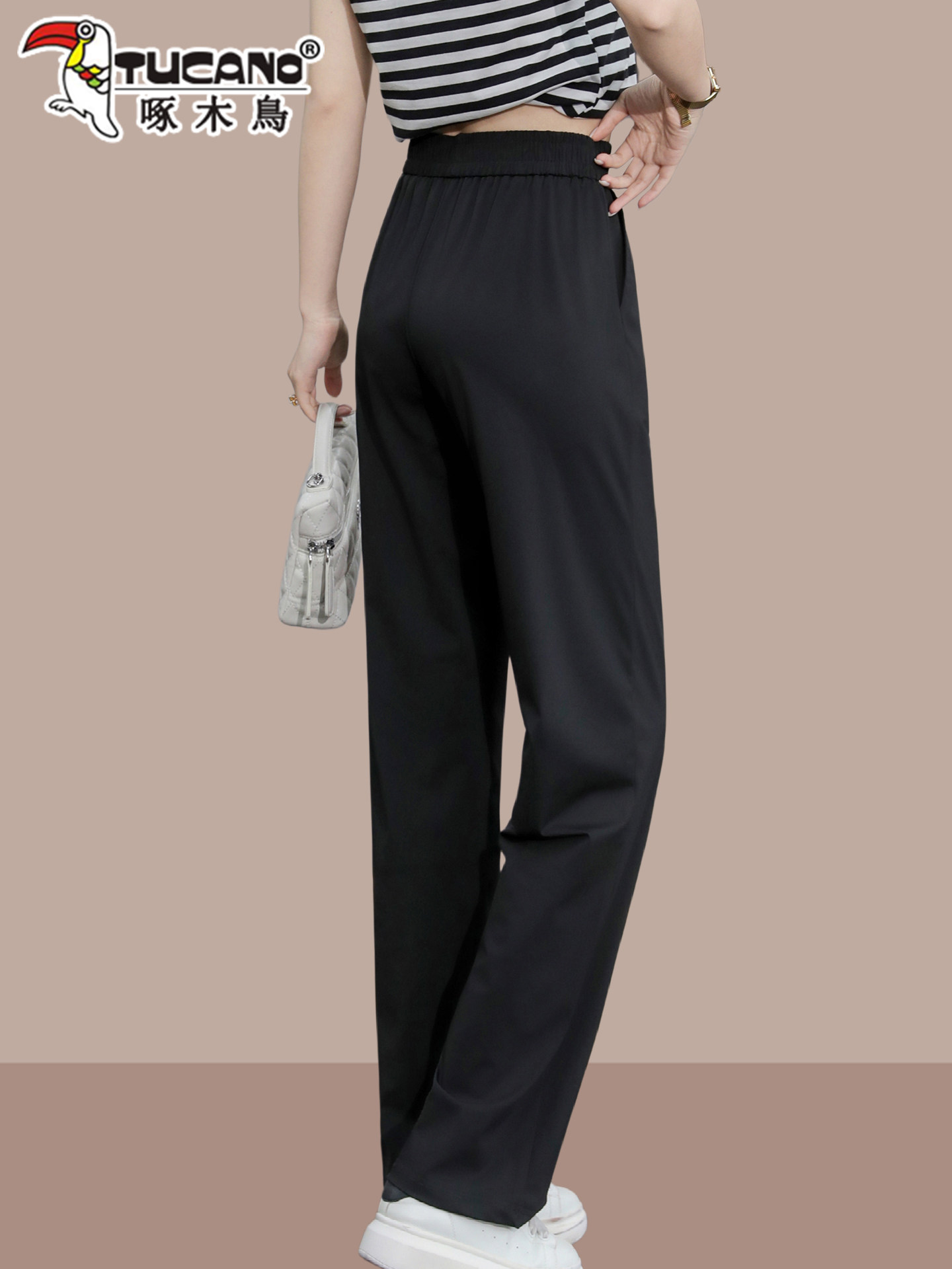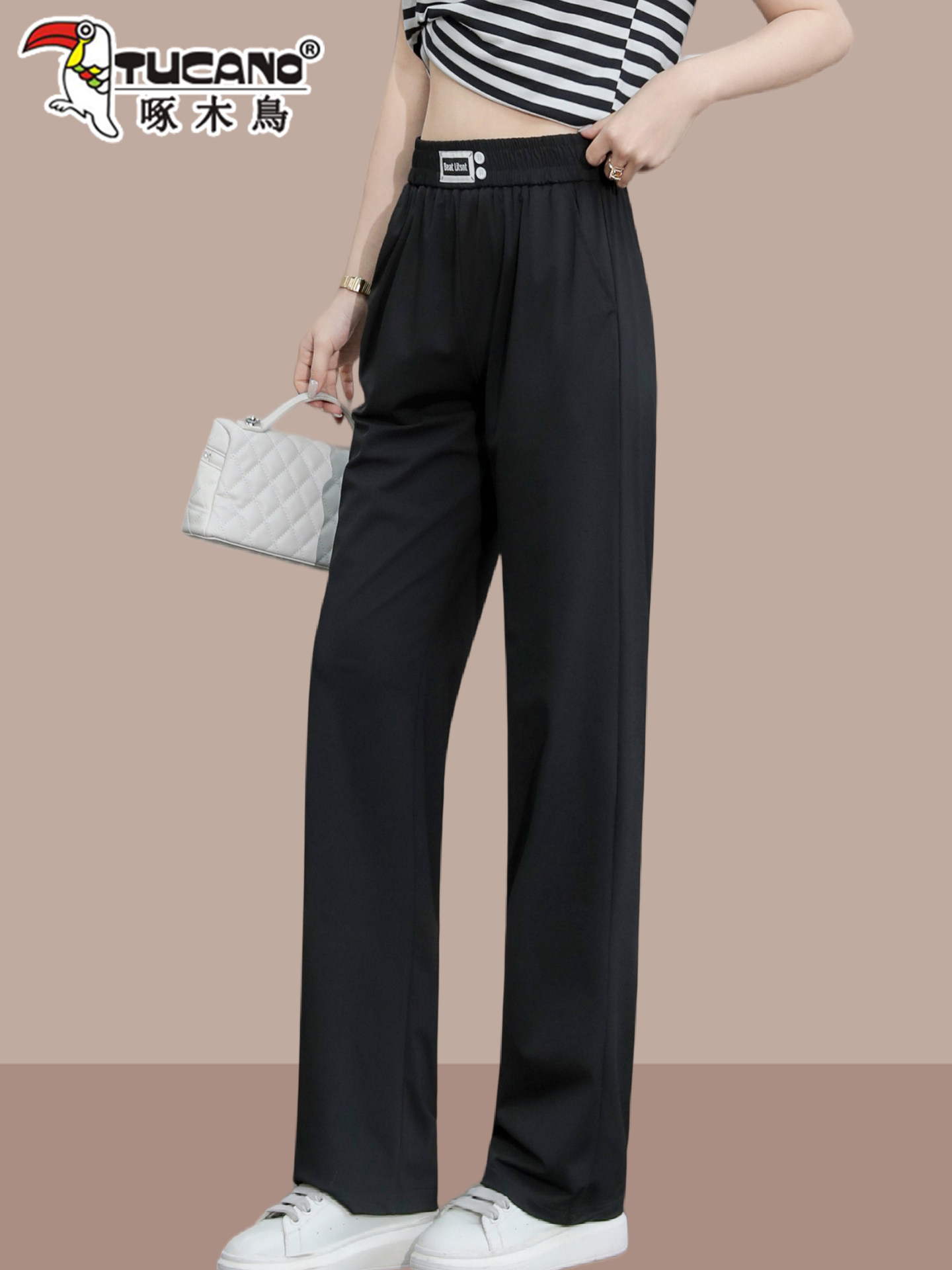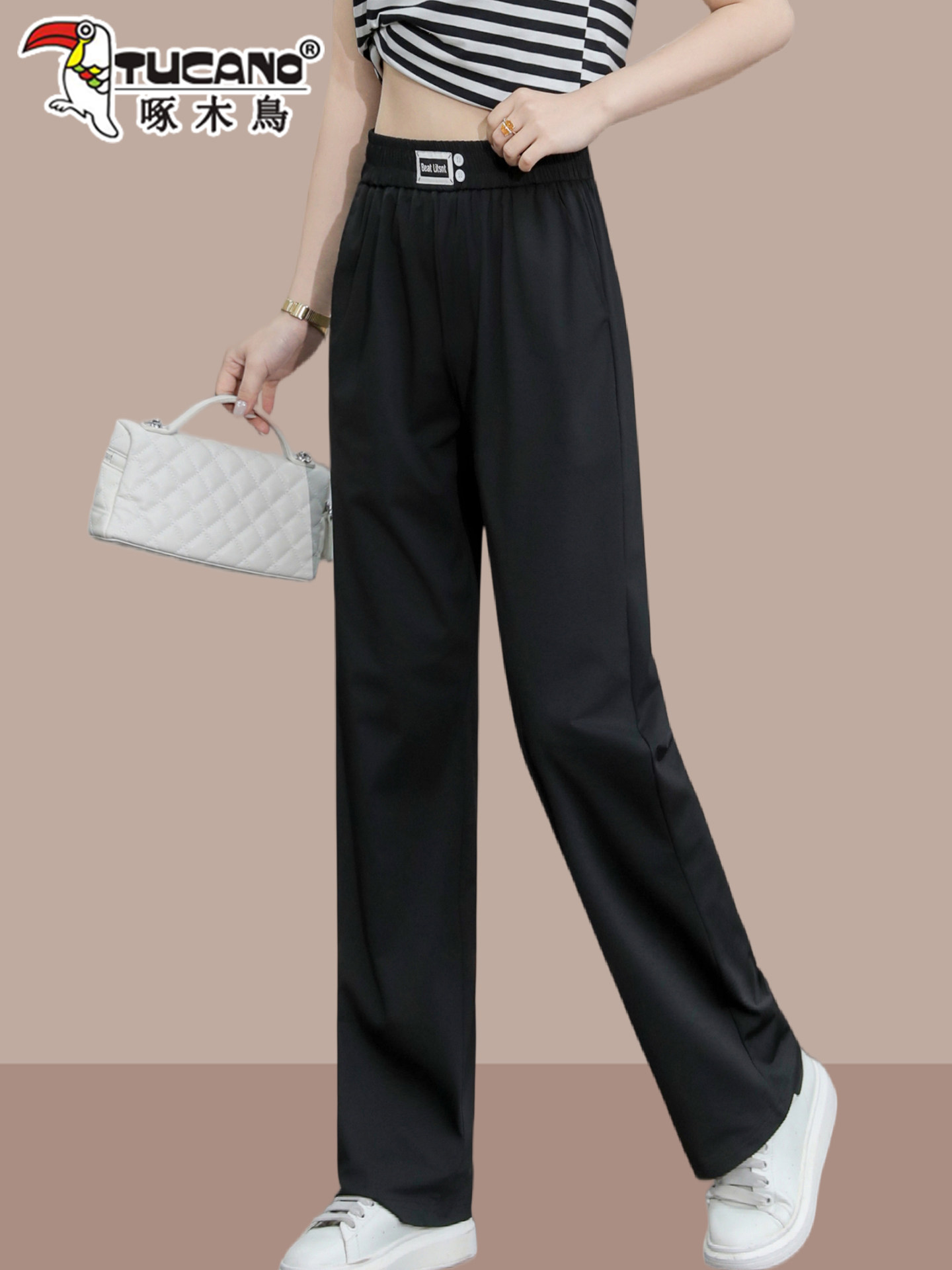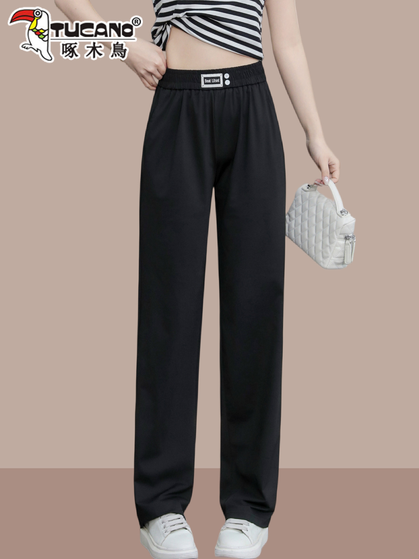 啄木鸟冰丝运动阔腿裤女夏季薄款2026年新款高腰垂感显瘦直筒裤子
