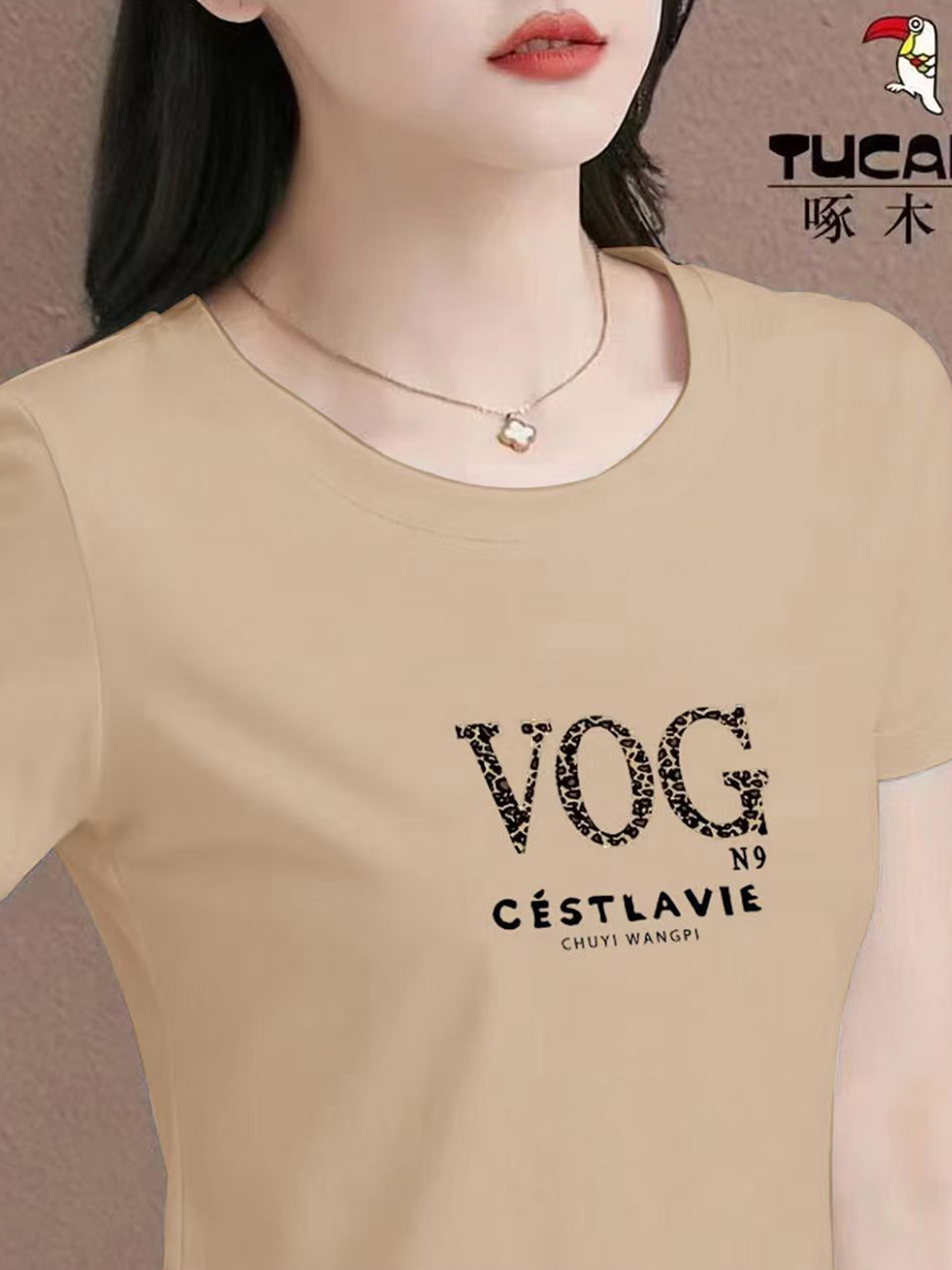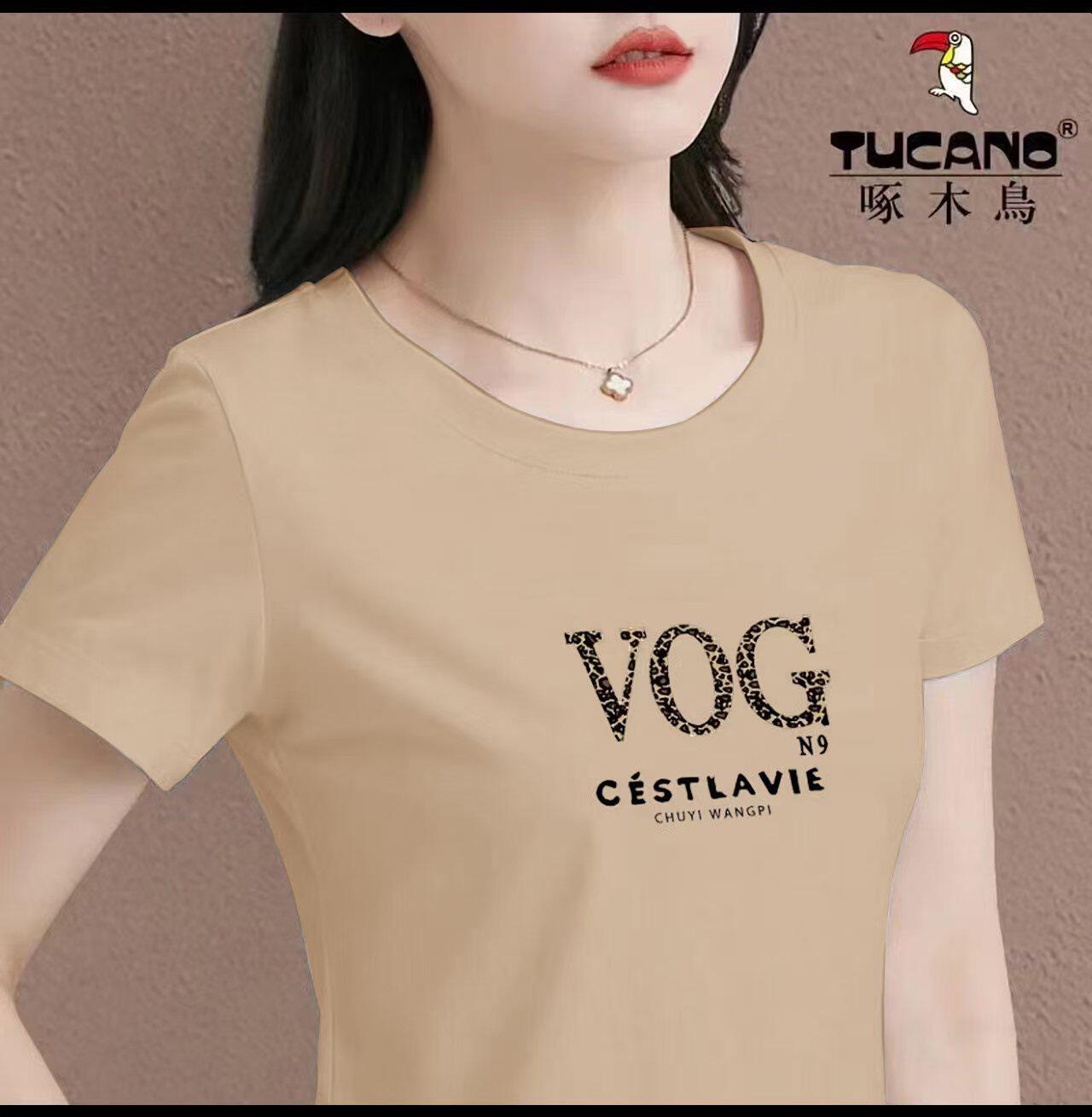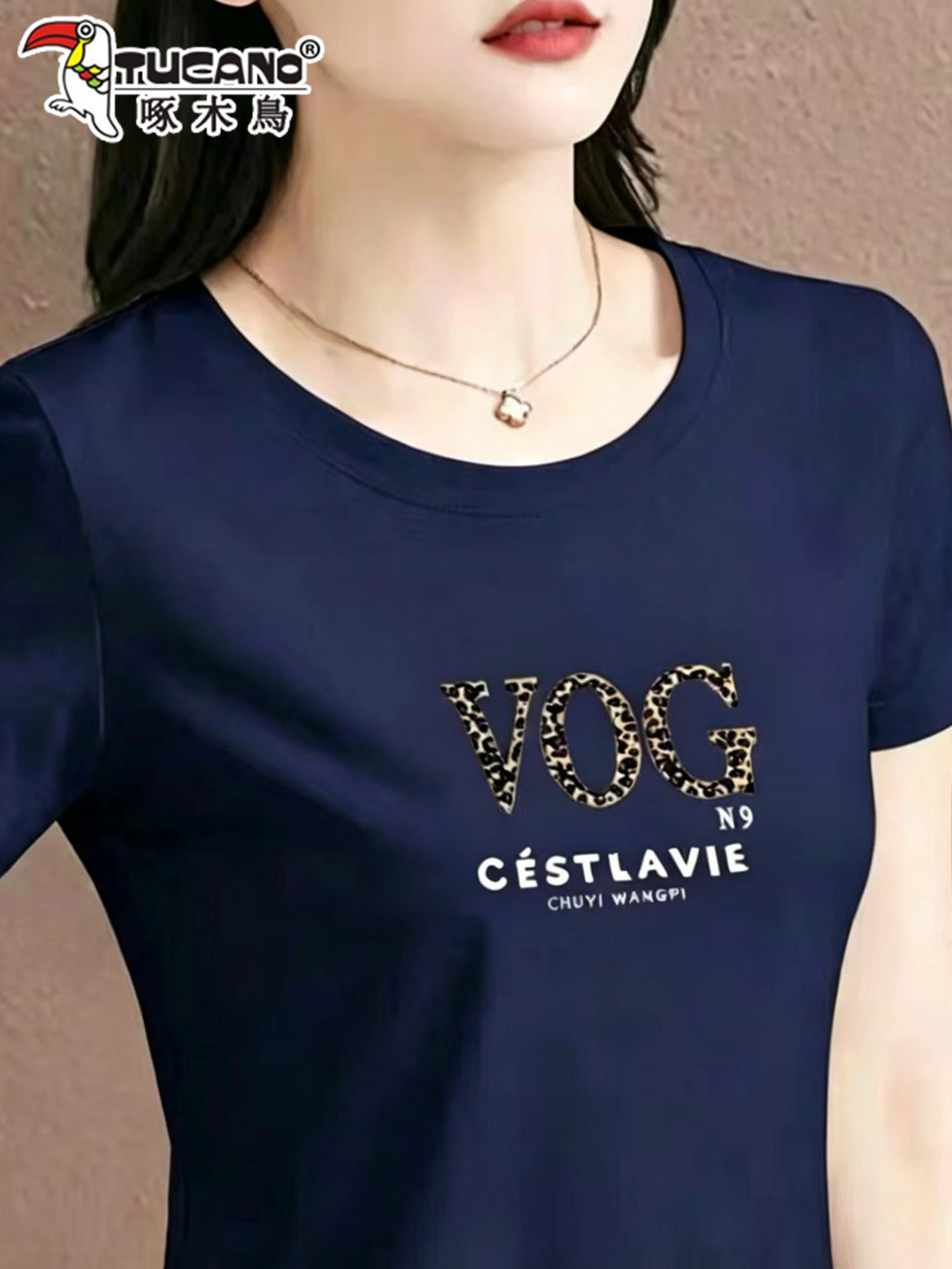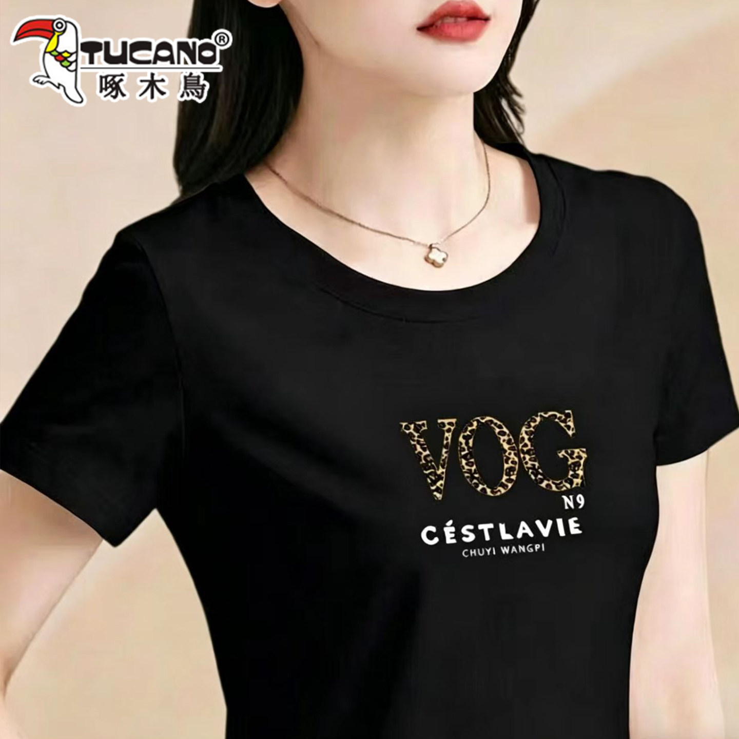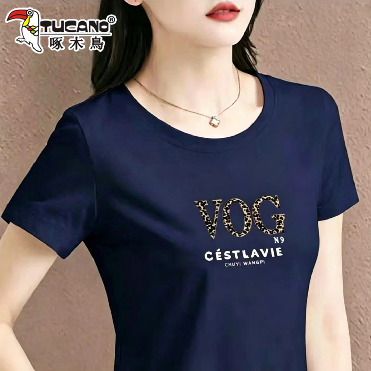 啄木鸟纯棉圆领短袖T恤女夏季薄款2026新款中年妈妈修身显瘦上衣