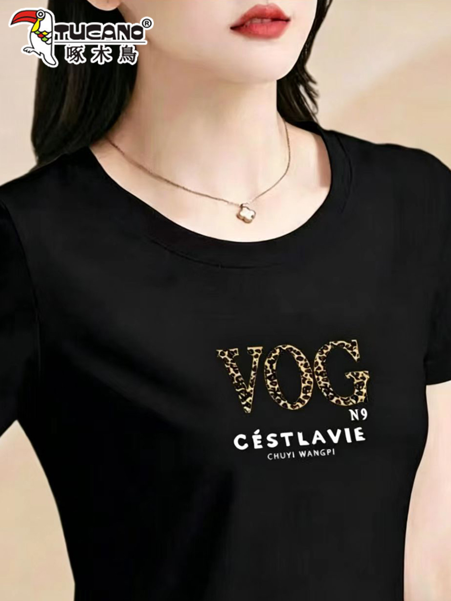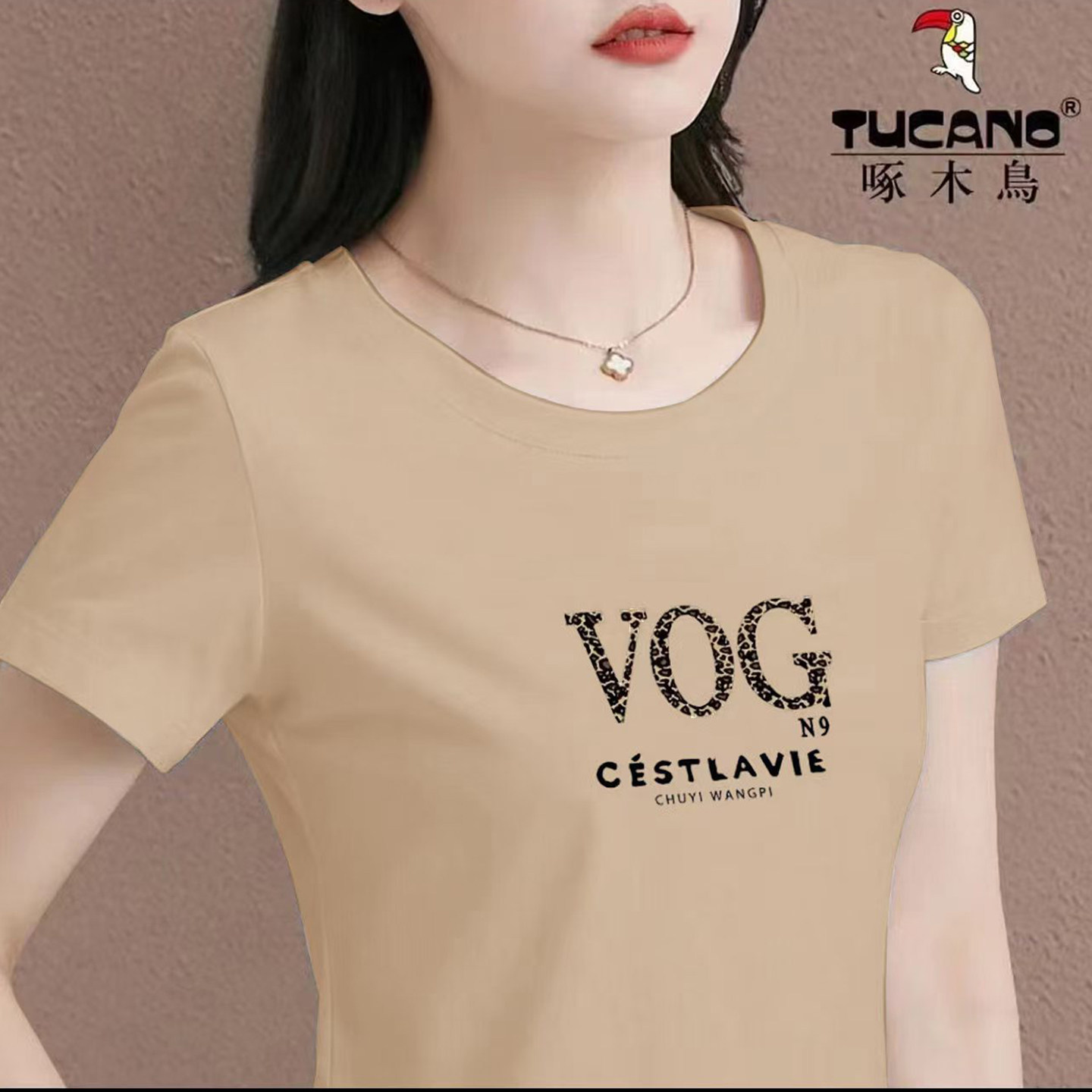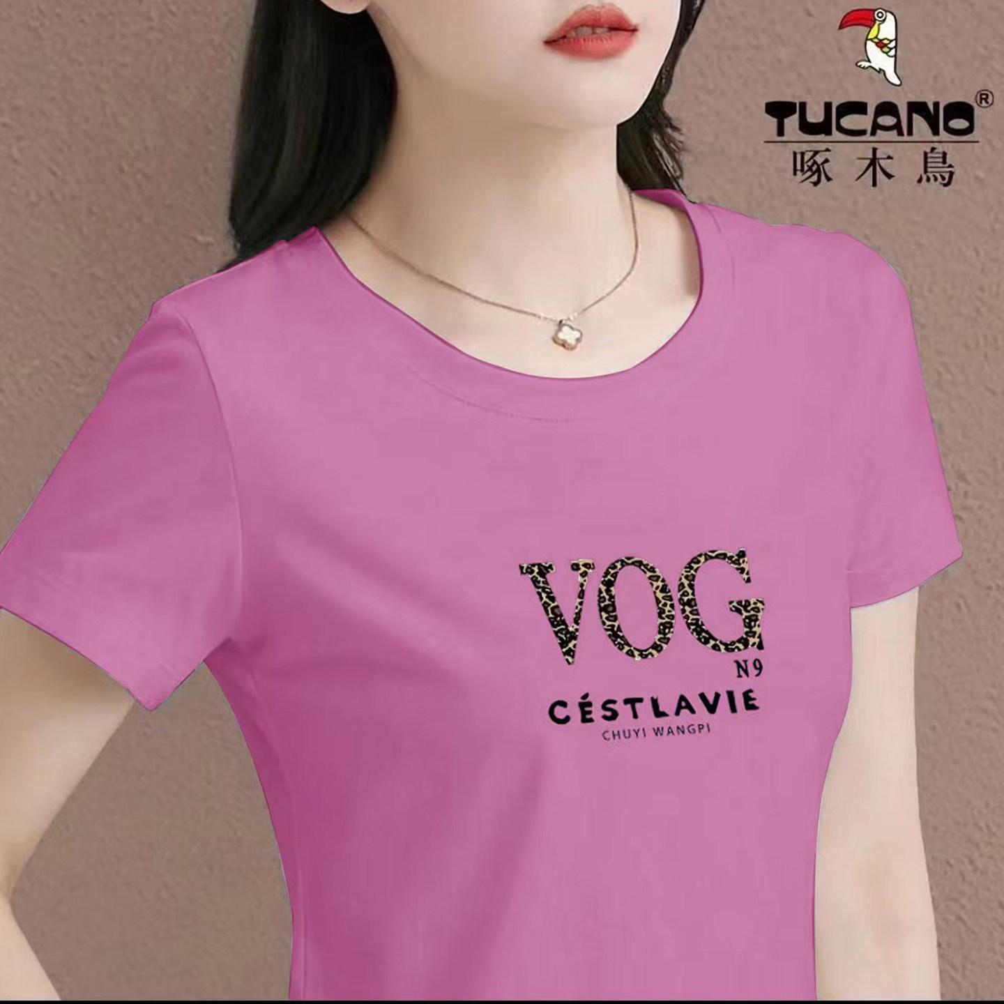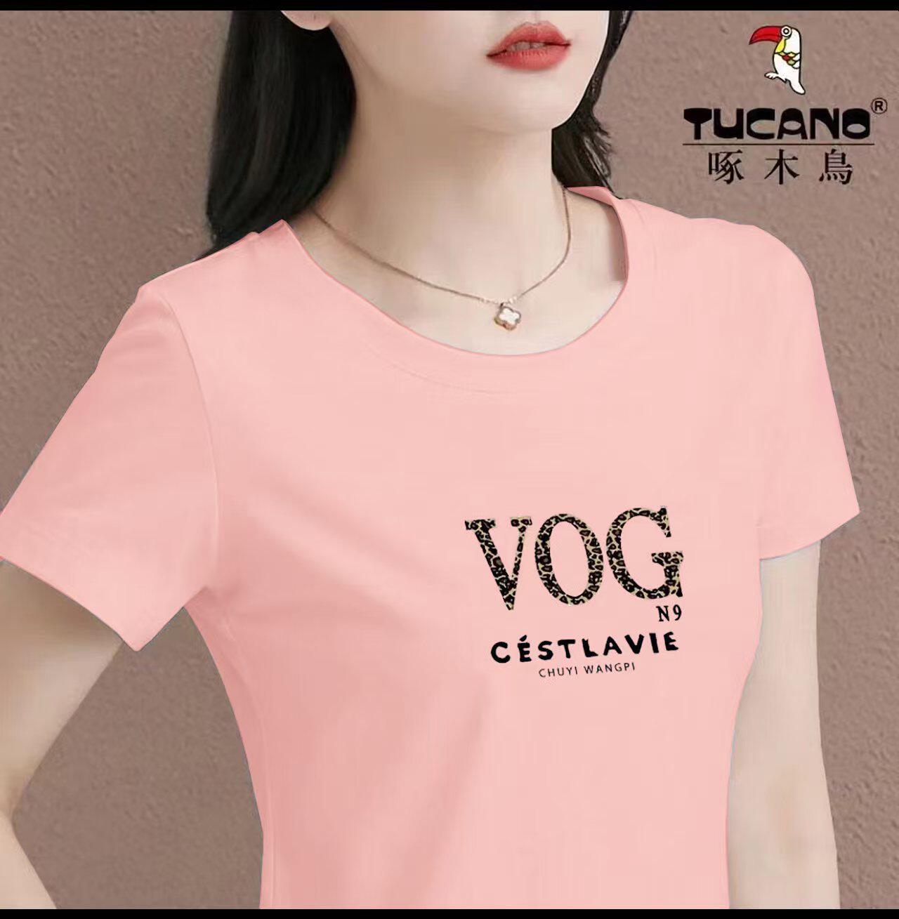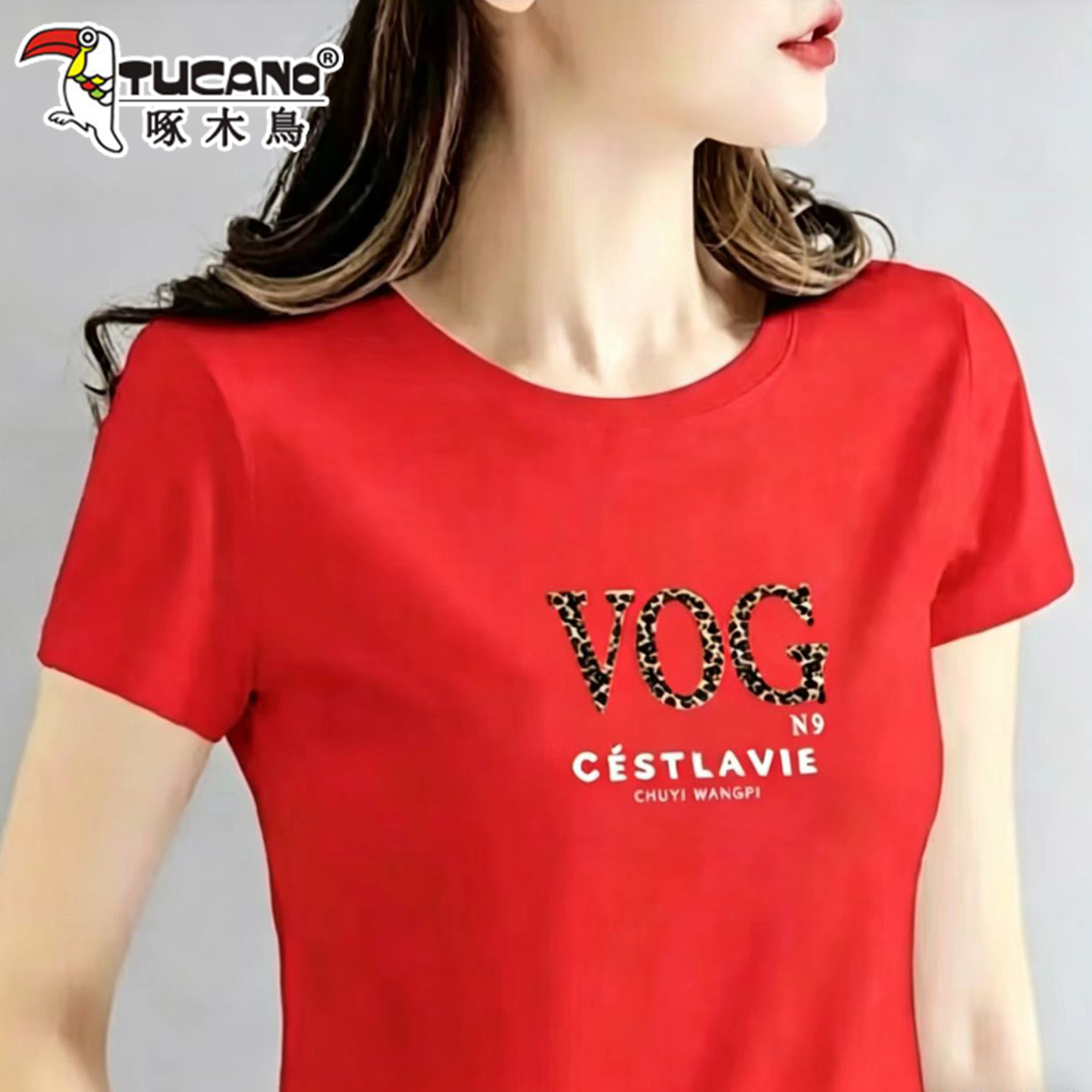 啄木鸟纯棉圆领短袖T恤女夏季薄款2026新款中年妈妈修身显瘦上衣