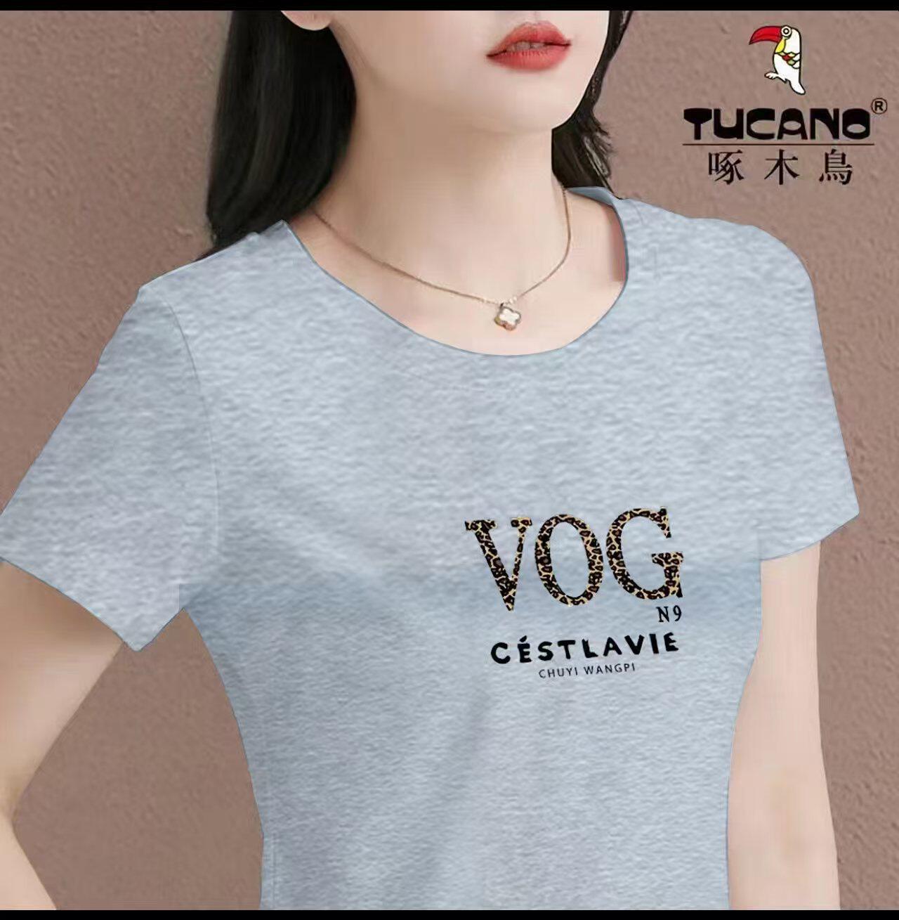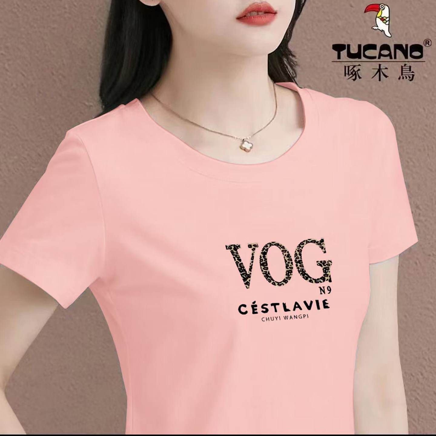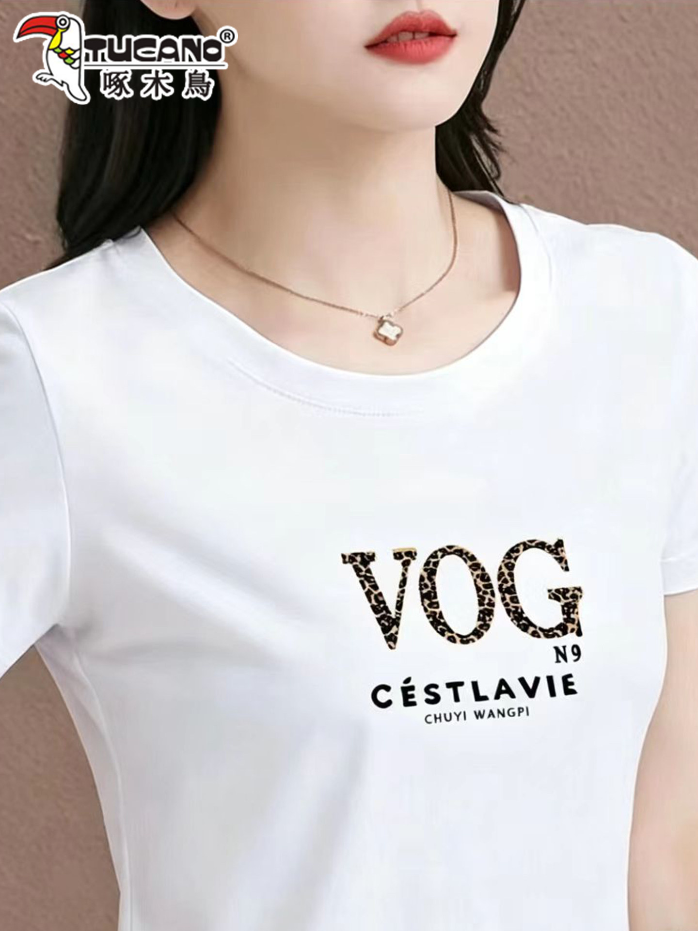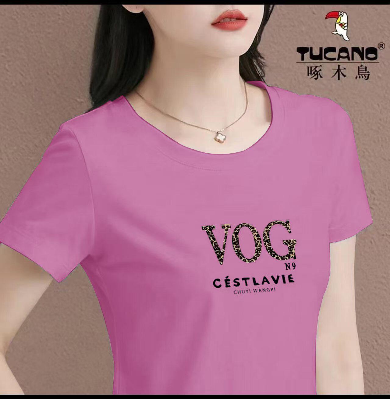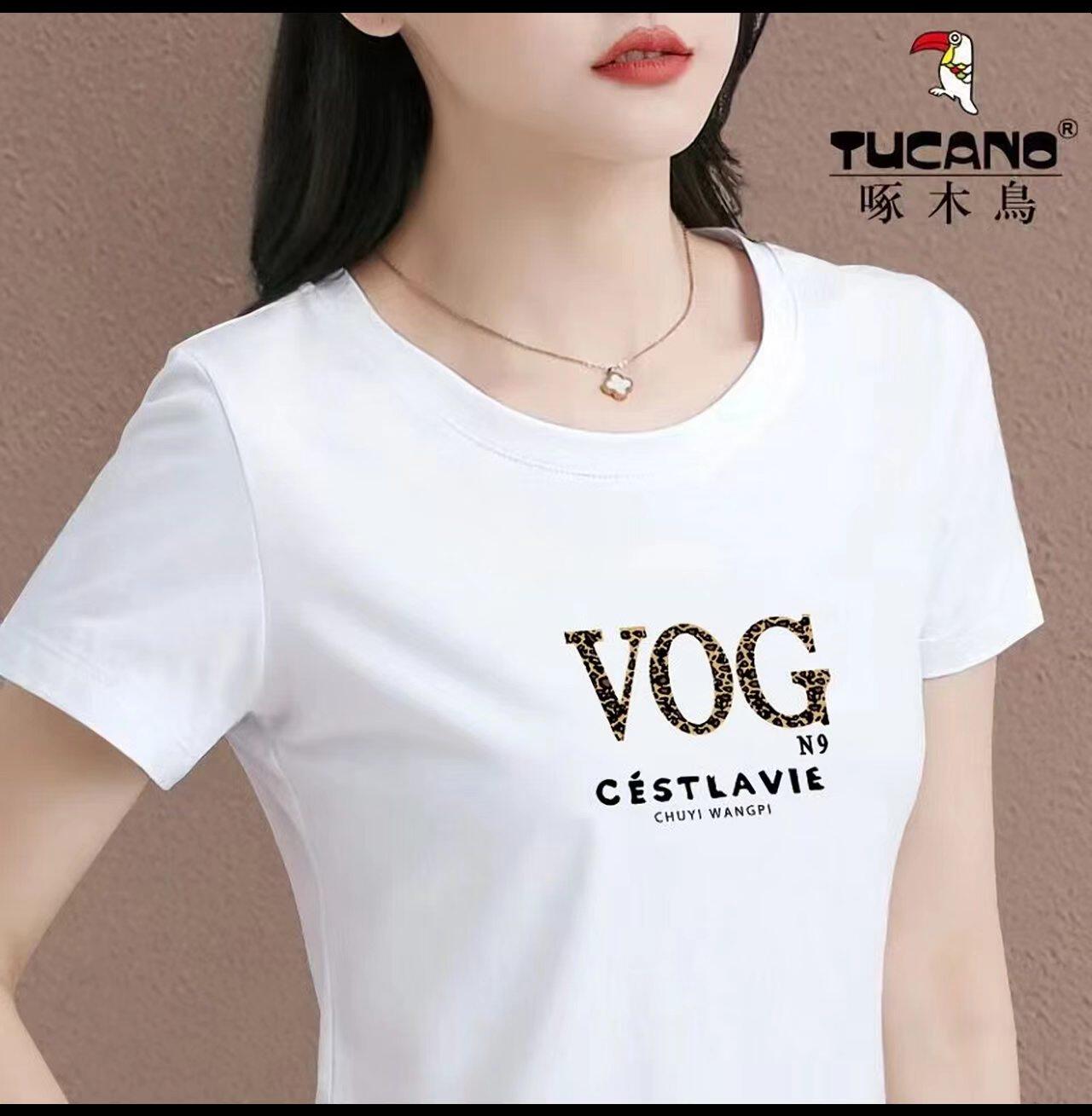 啄木鸟纯棉圆领短袖T恤女夏季薄款2026新款中年妈妈修身显瘦上衣