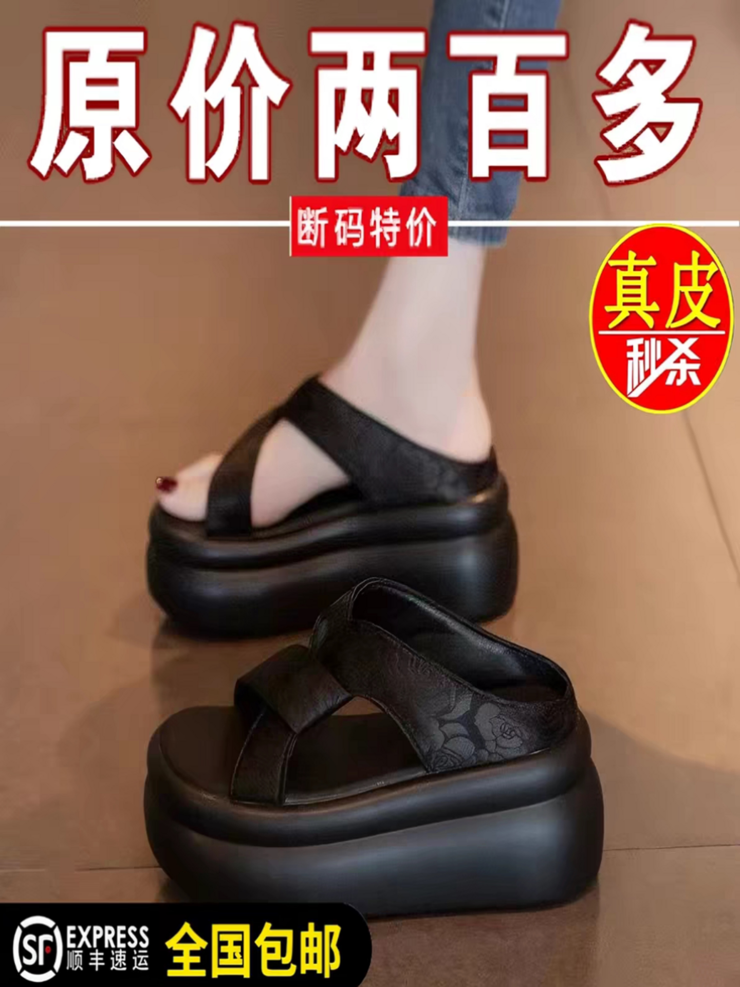 品牌鞋凉拖鞋女夏外穿2026夏季新款时尚松糕厚底跟软底沙滩凉鞋女