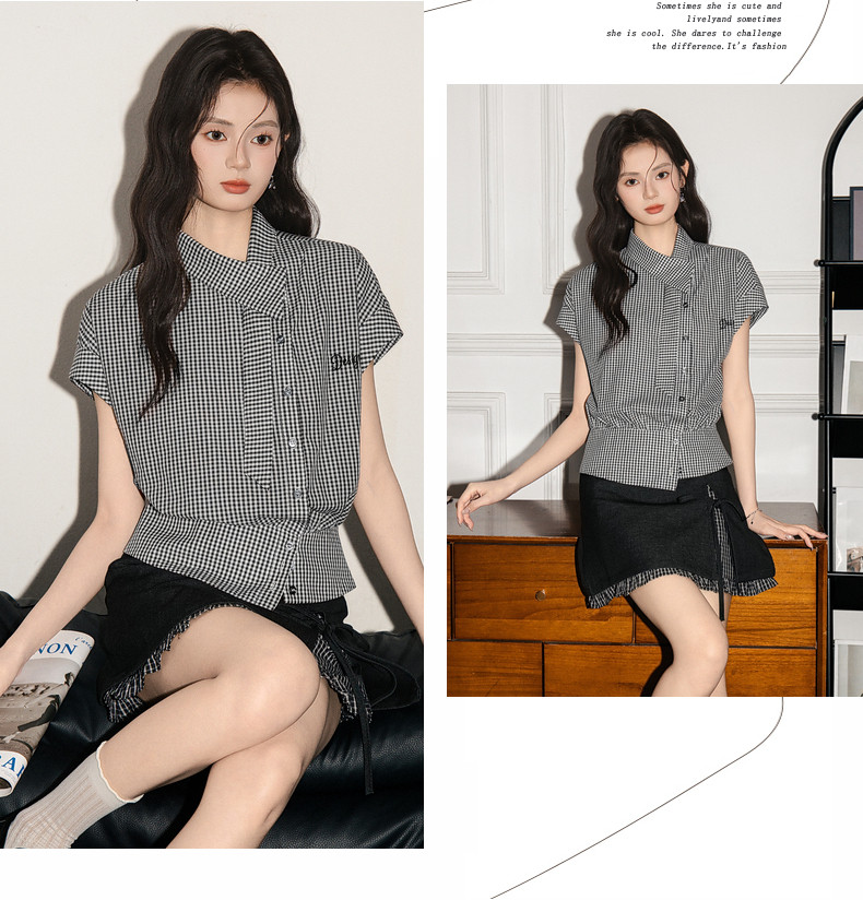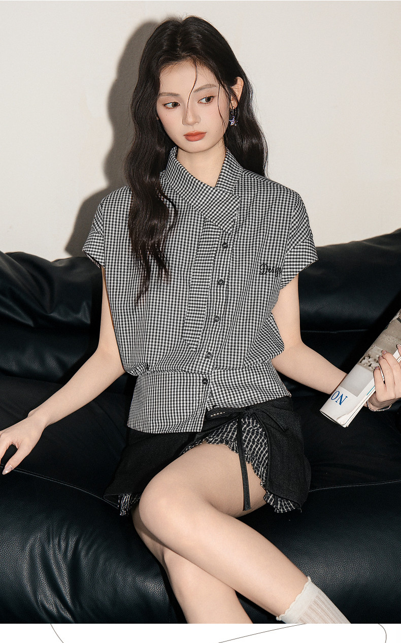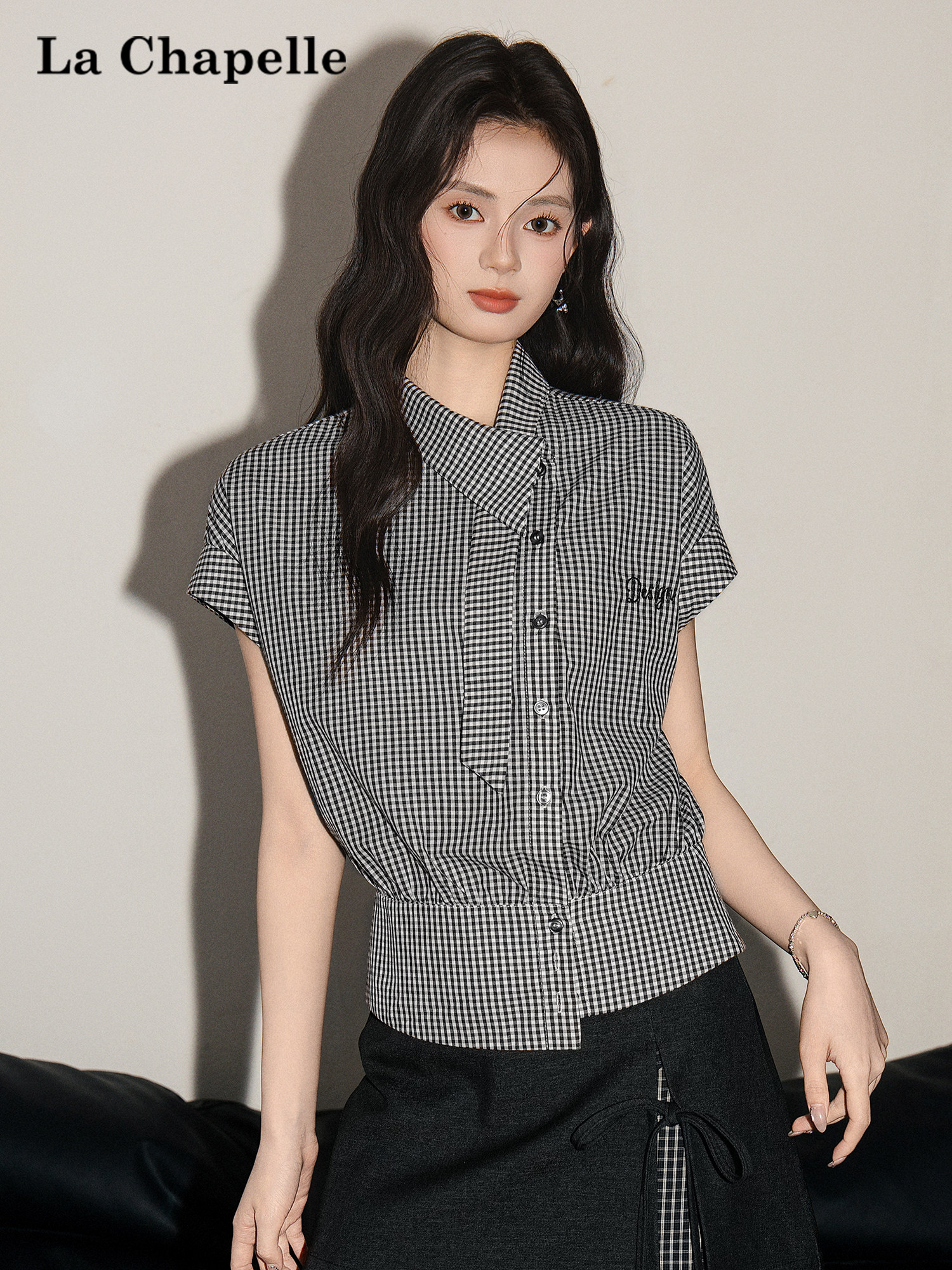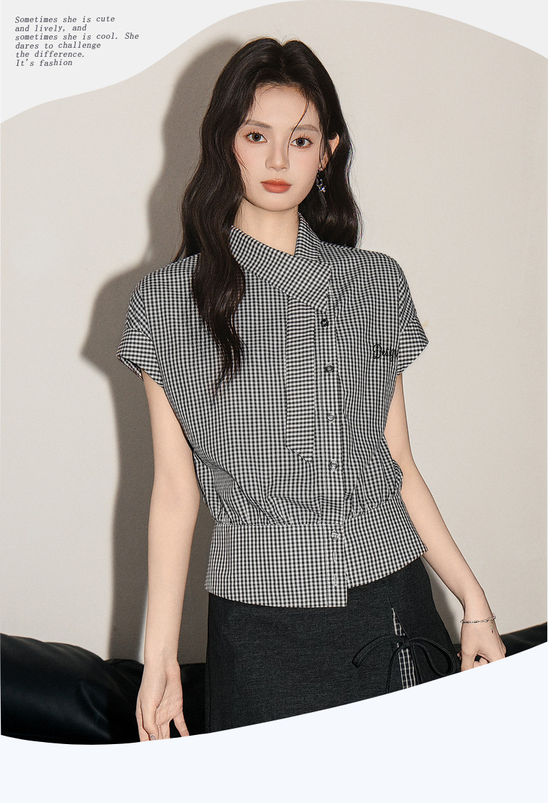 HomeProducts拉夏贝尔美式气质时尚高级感短袖衬衫女2026夏季新款修身显瘦上衣
