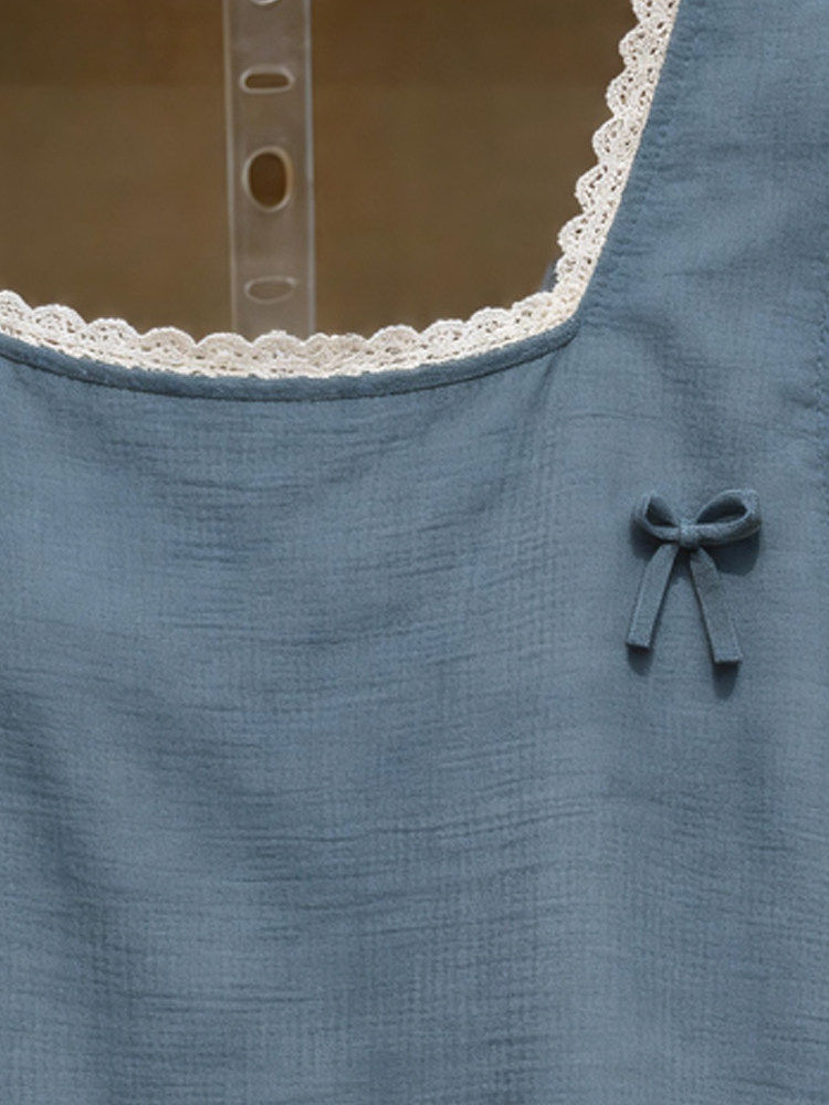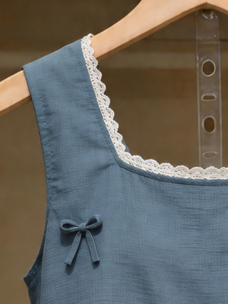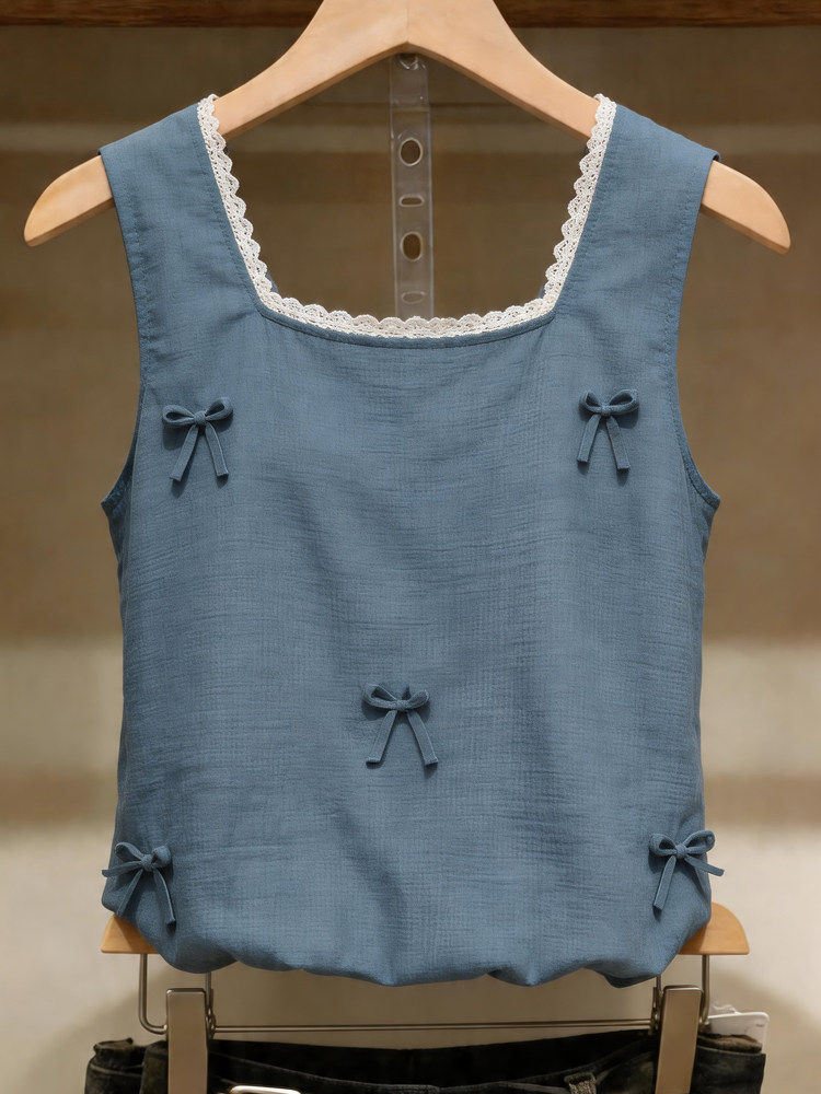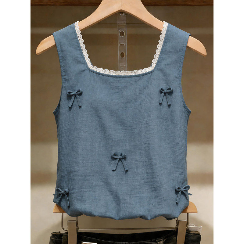 时尚洋气百搭女装蕾丝拼接方领吊带背心女性感修身显瘦无袖上衣夏