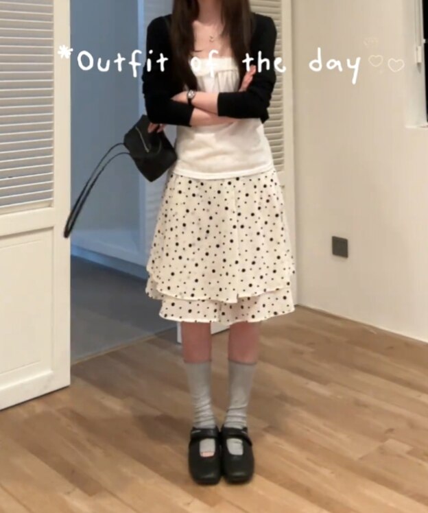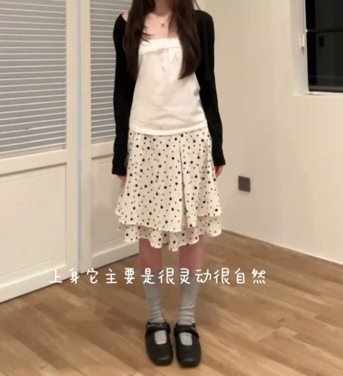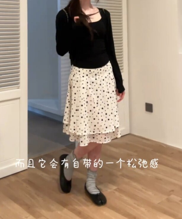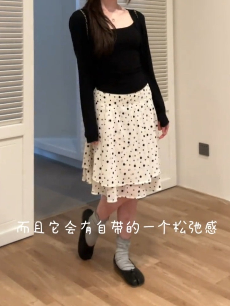 韩系ins风时尚波点蛋糕半身裙女拼接双层高腰气质减龄百搭a字短裙