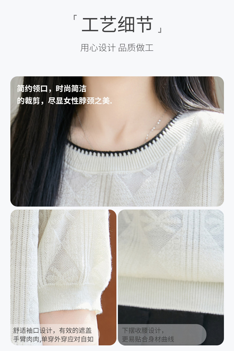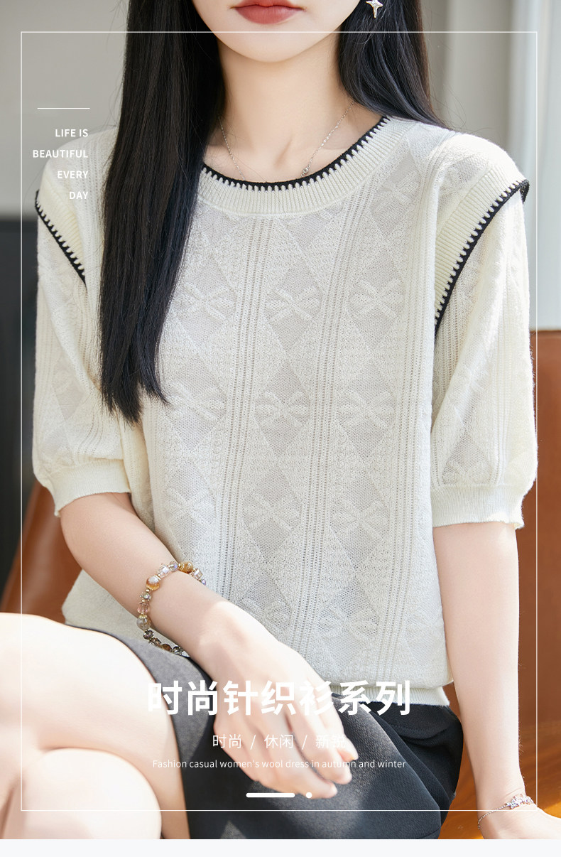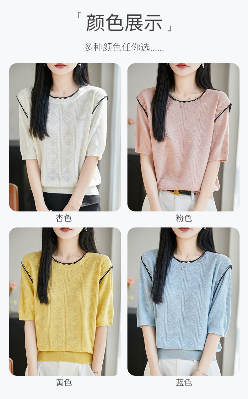 HomeProducts拉夏贝尔撞色提花短袖针织衫女夏薄款胖mm显瘦遮肚子圆领新款上衣