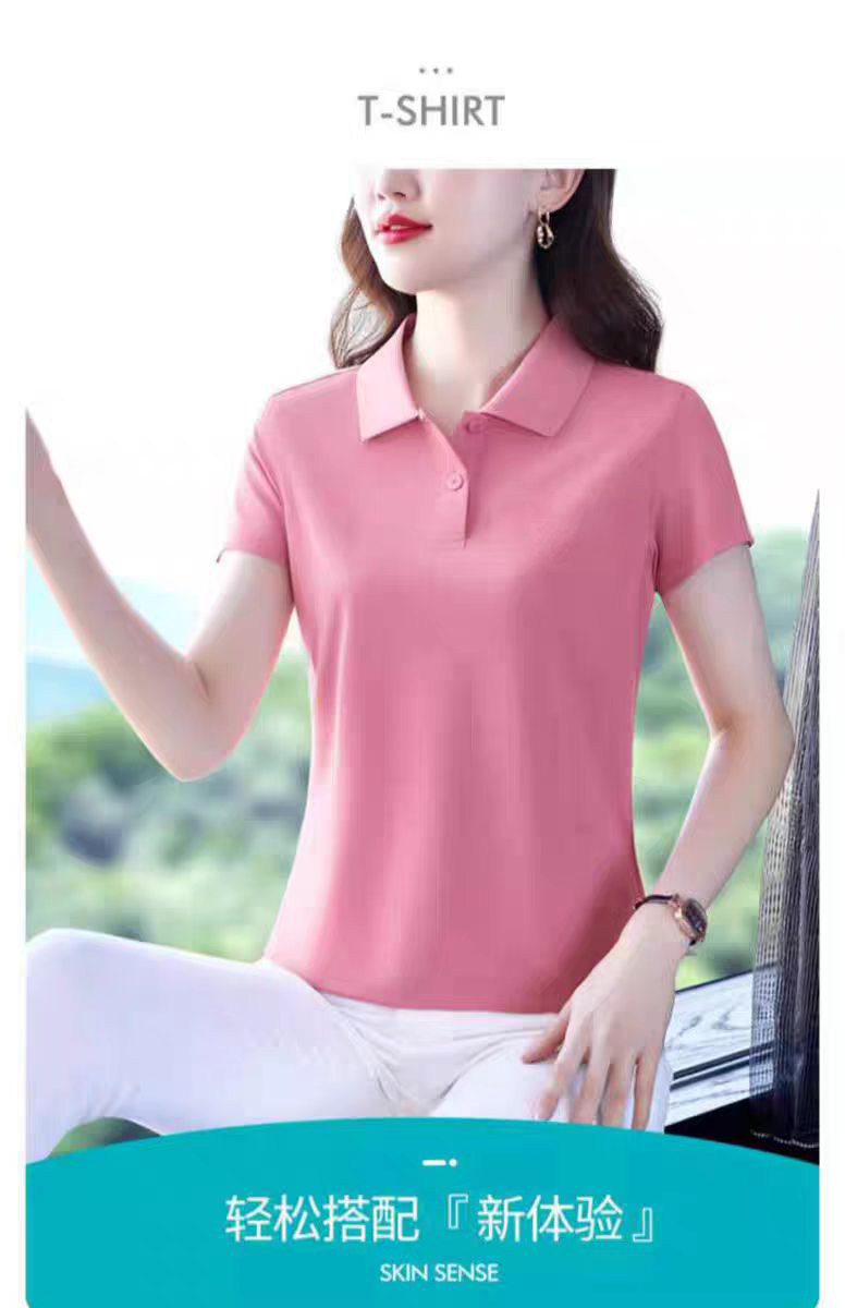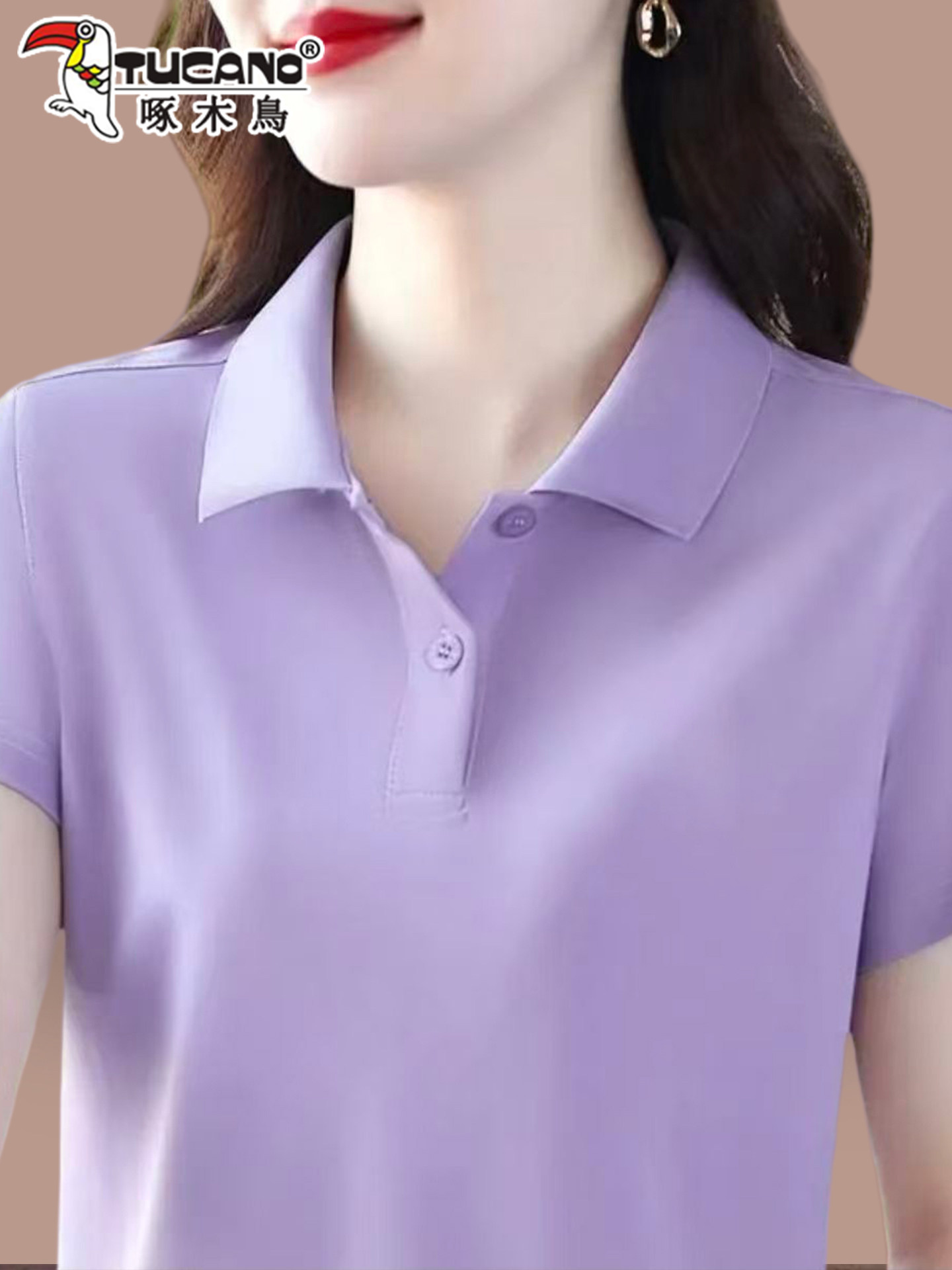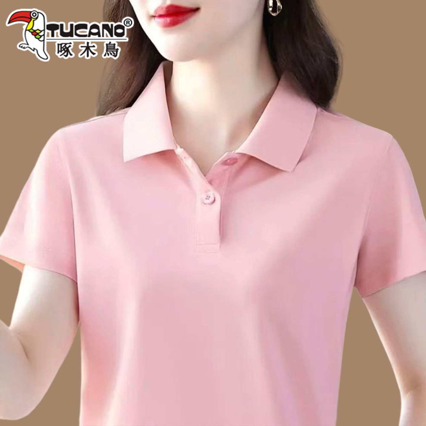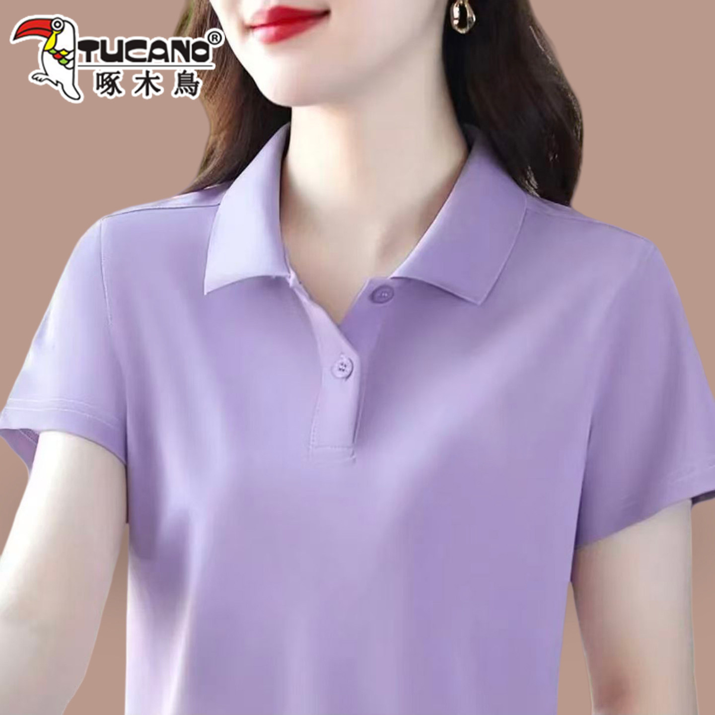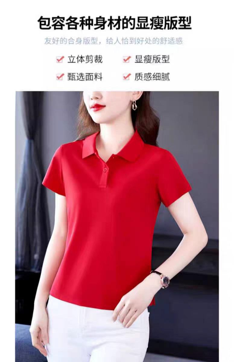 啄木鸟短袖女t恤夏季纯棉2026新款Polo衫宽松大码妈妈工作服上衣