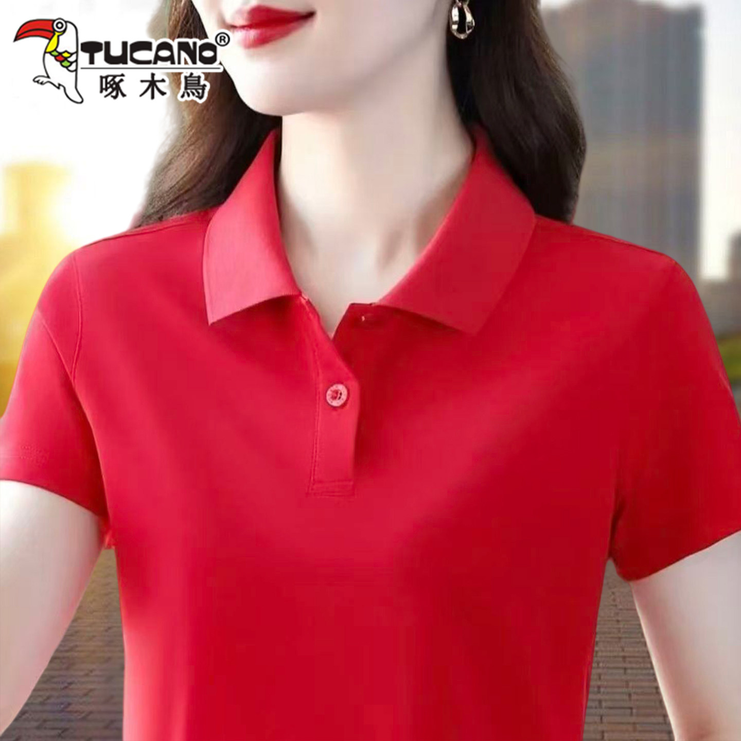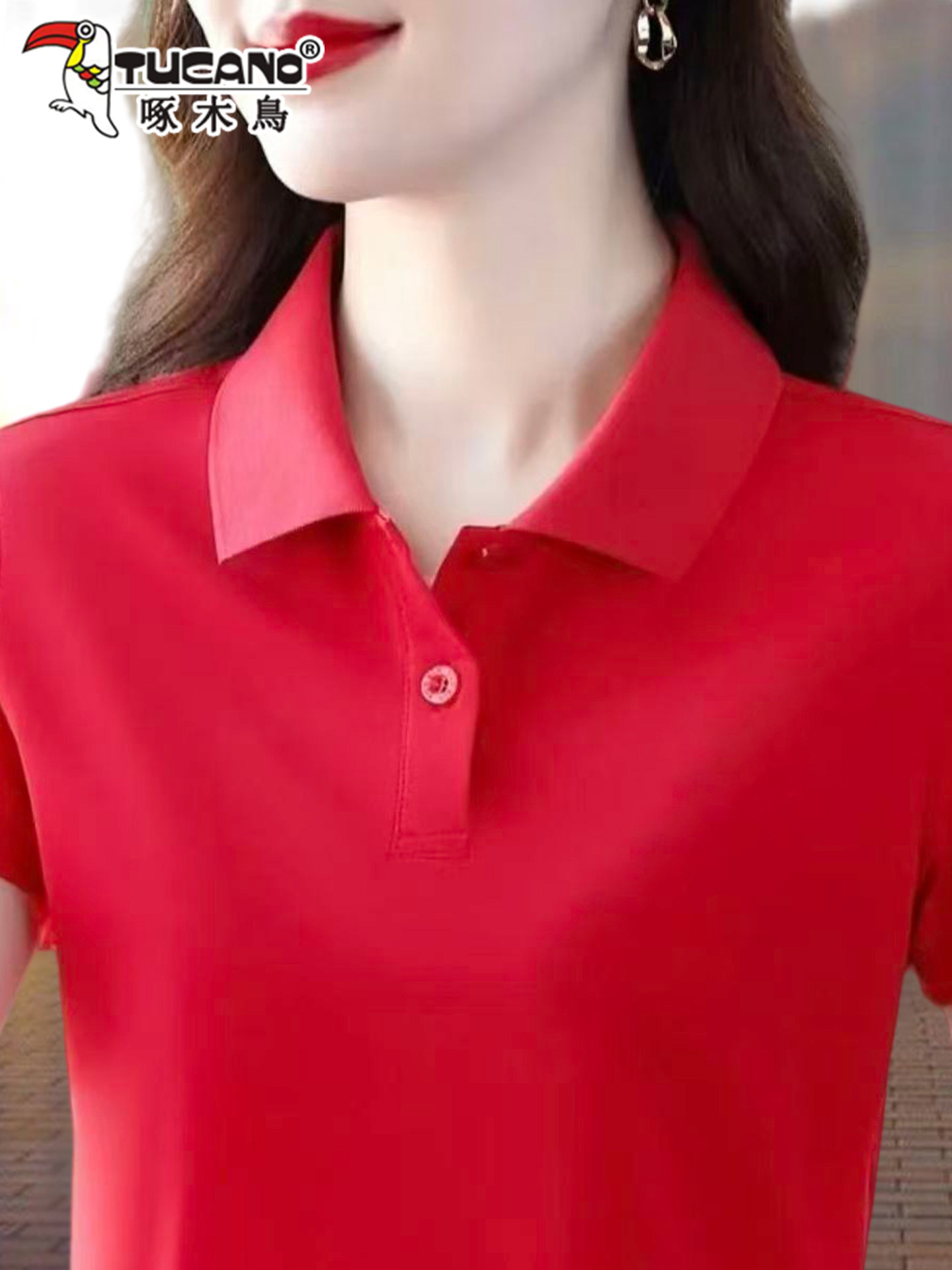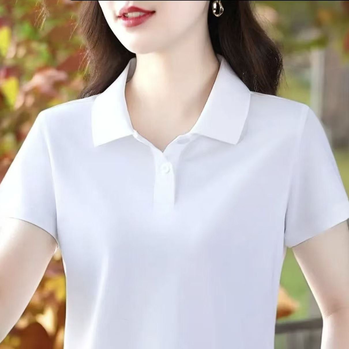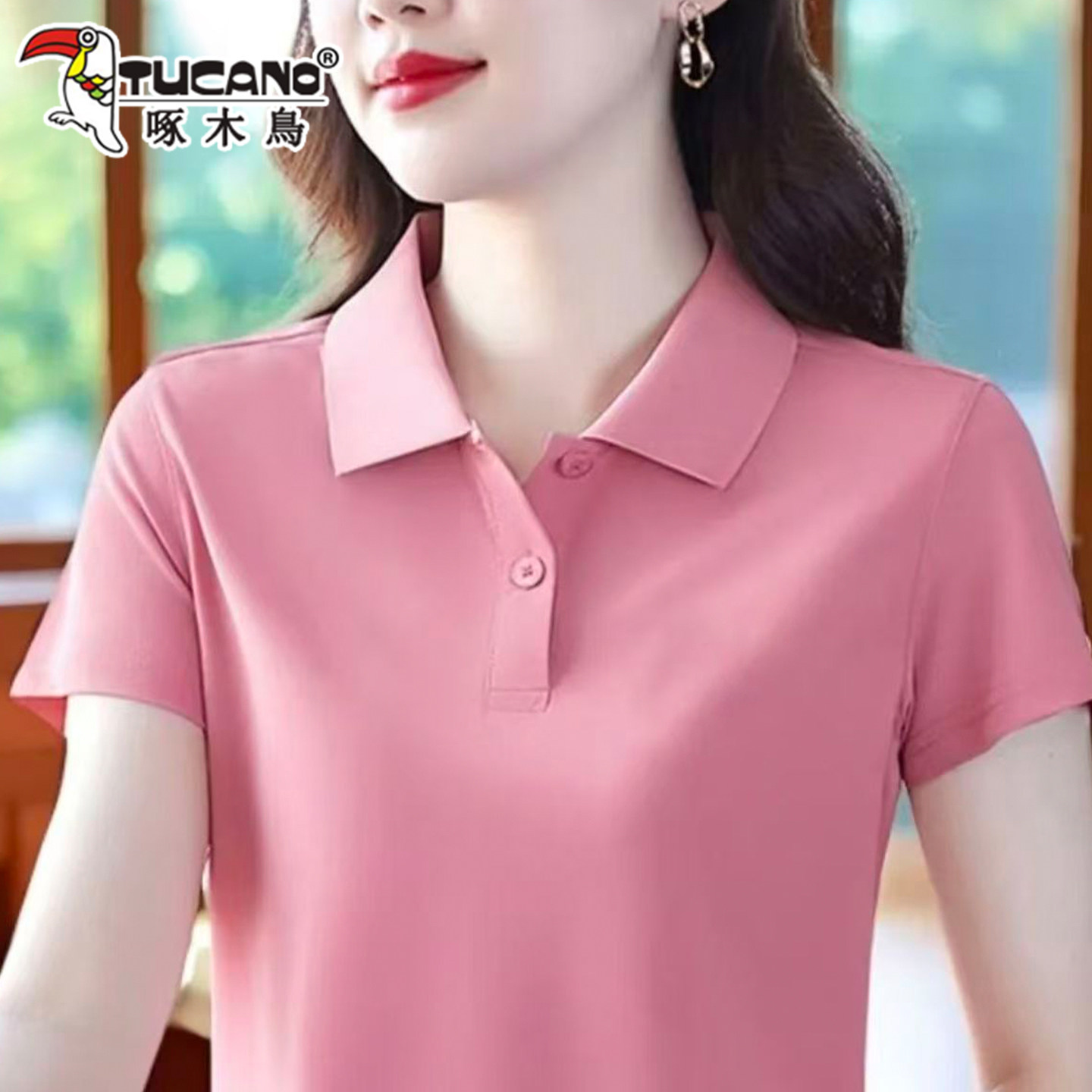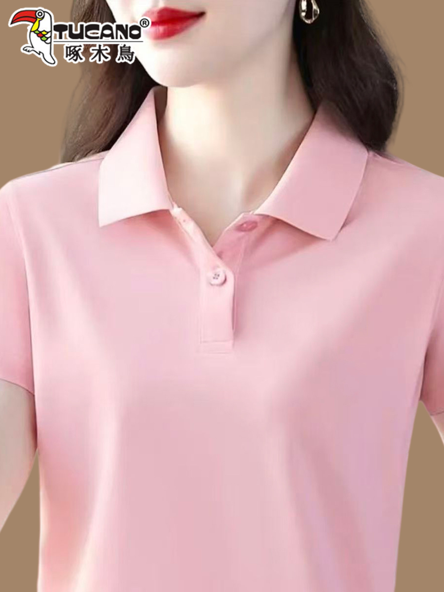 啄木鸟短袖女t恤夏季纯棉2026新款Polo衫宽松大码妈妈工作服上衣