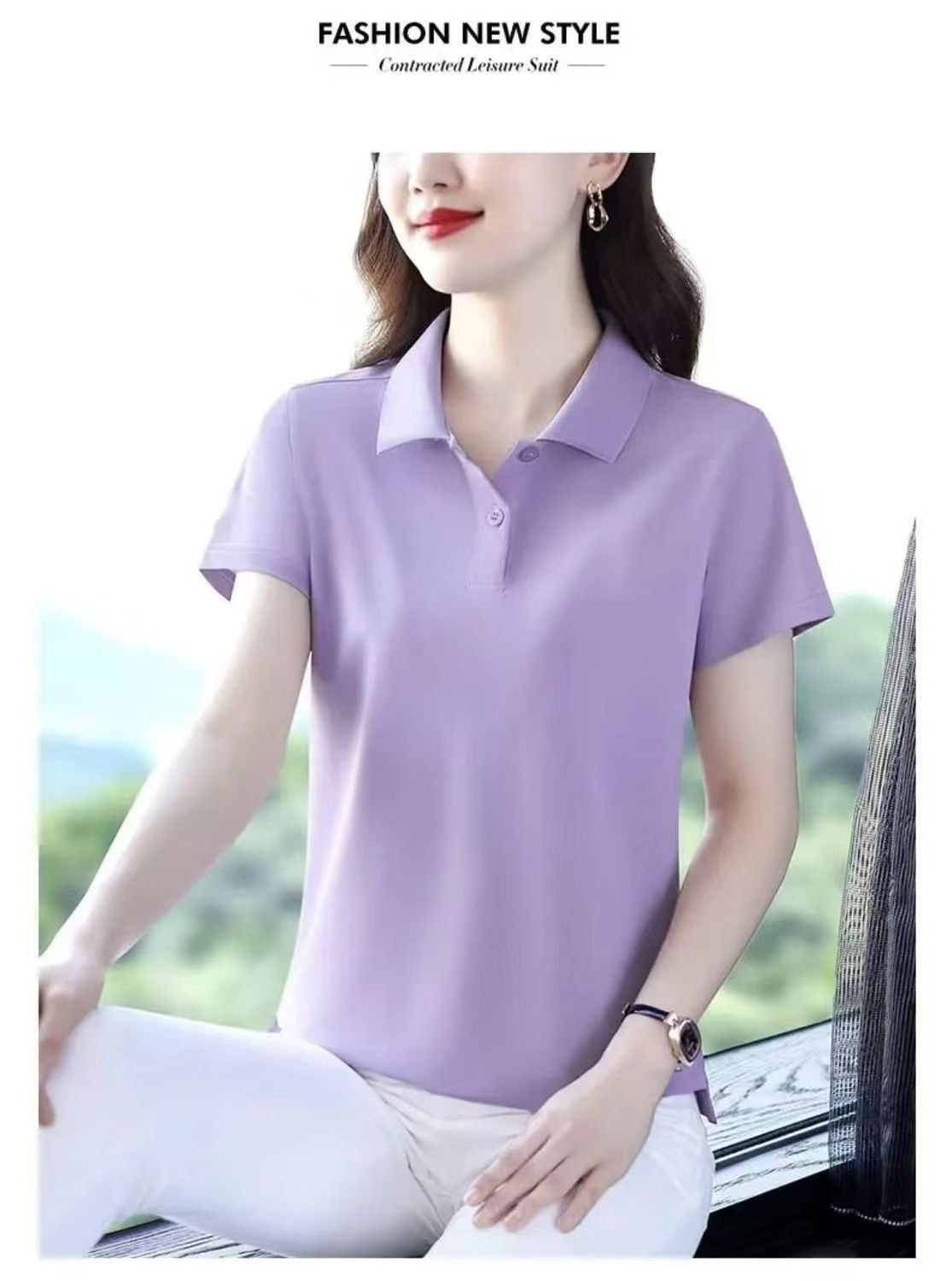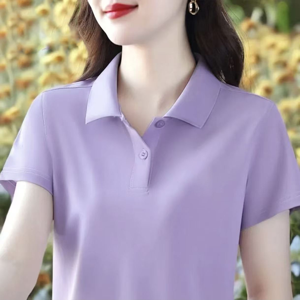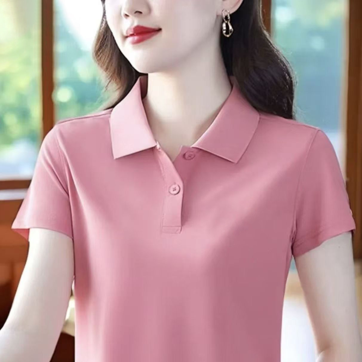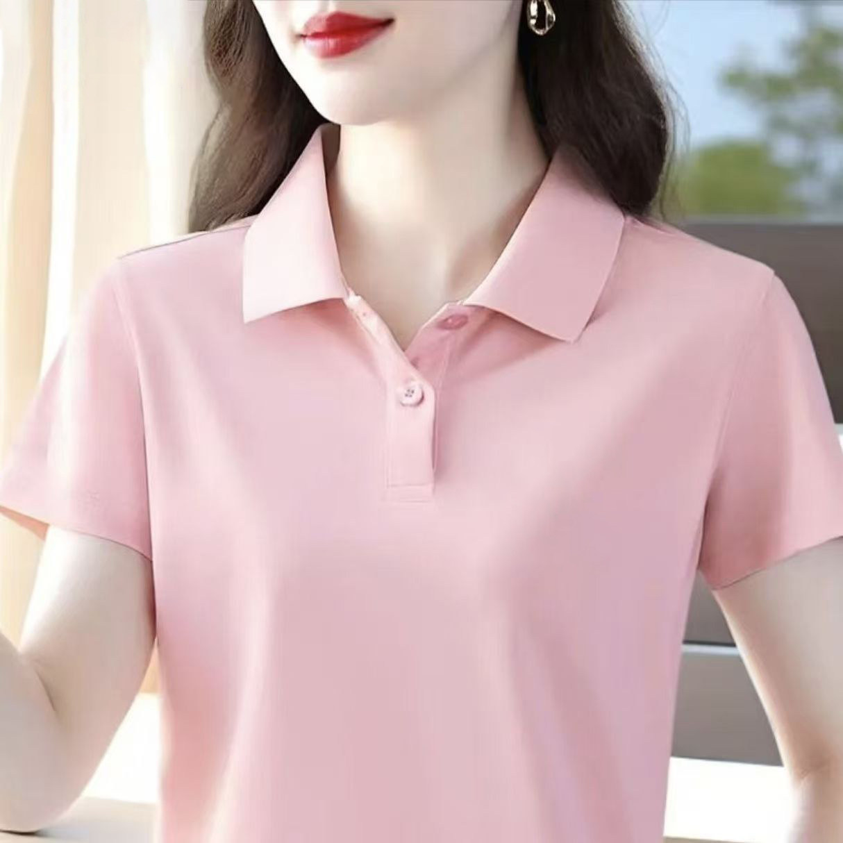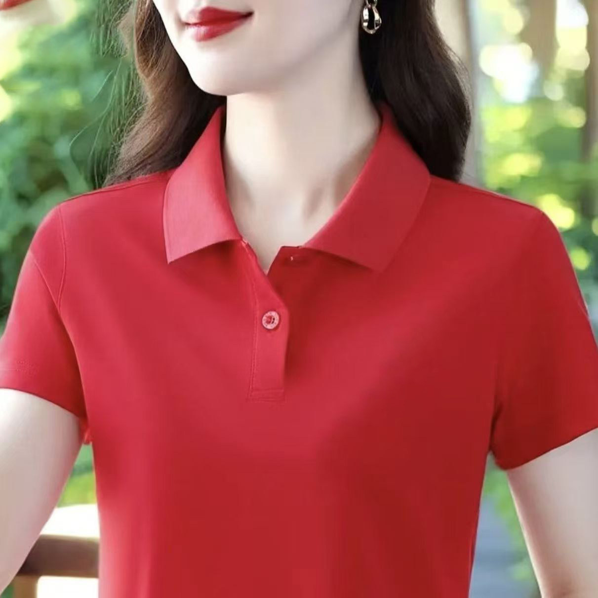 啄木鸟短袖女t恤夏季纯棉2026新款Polo衫宽松大码妈妈工作服上衣