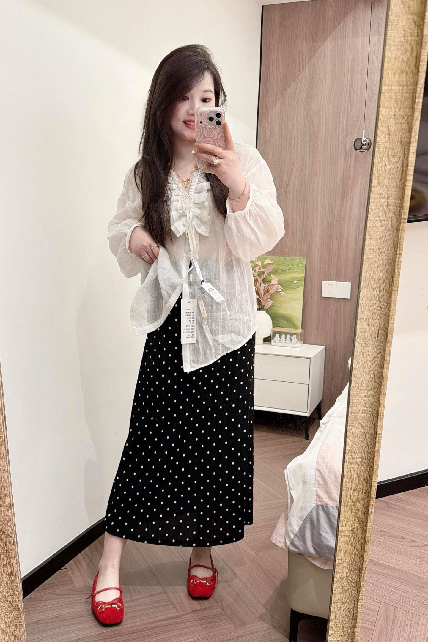 2026夏季新款韩版时尚淑女风黑色波点半身裙女遮跨显瘦大摆A字裙