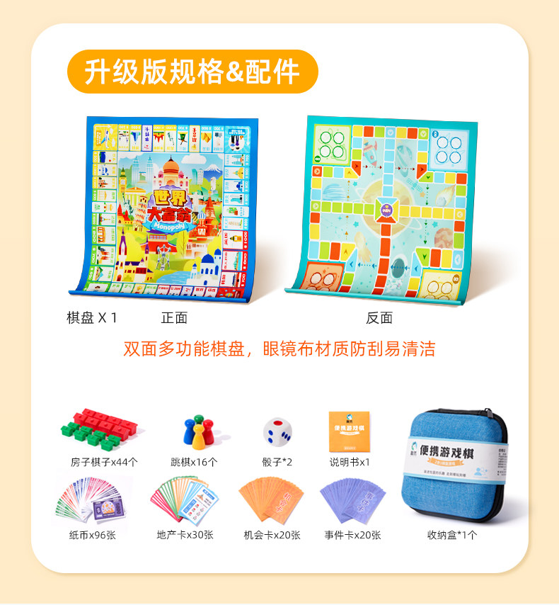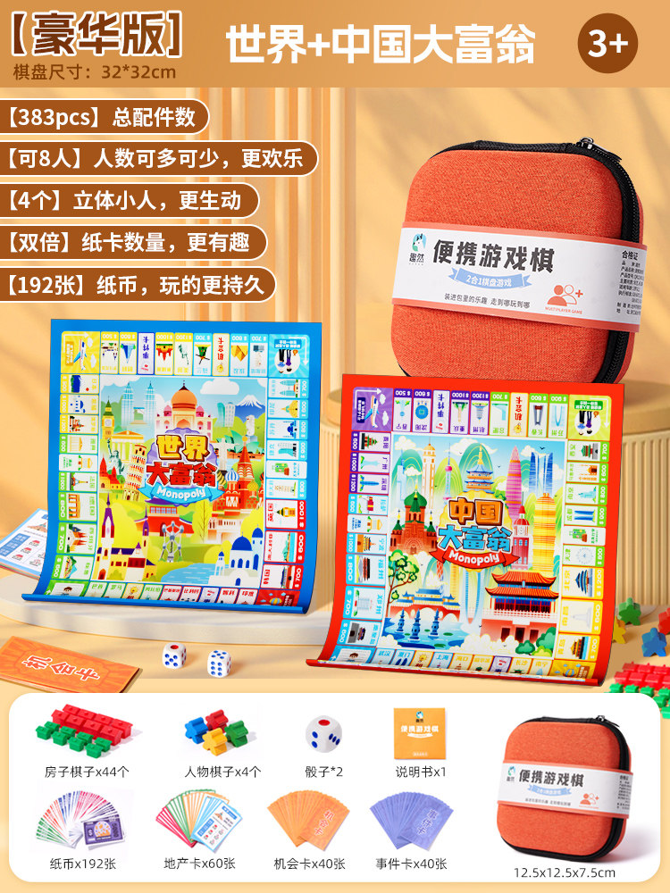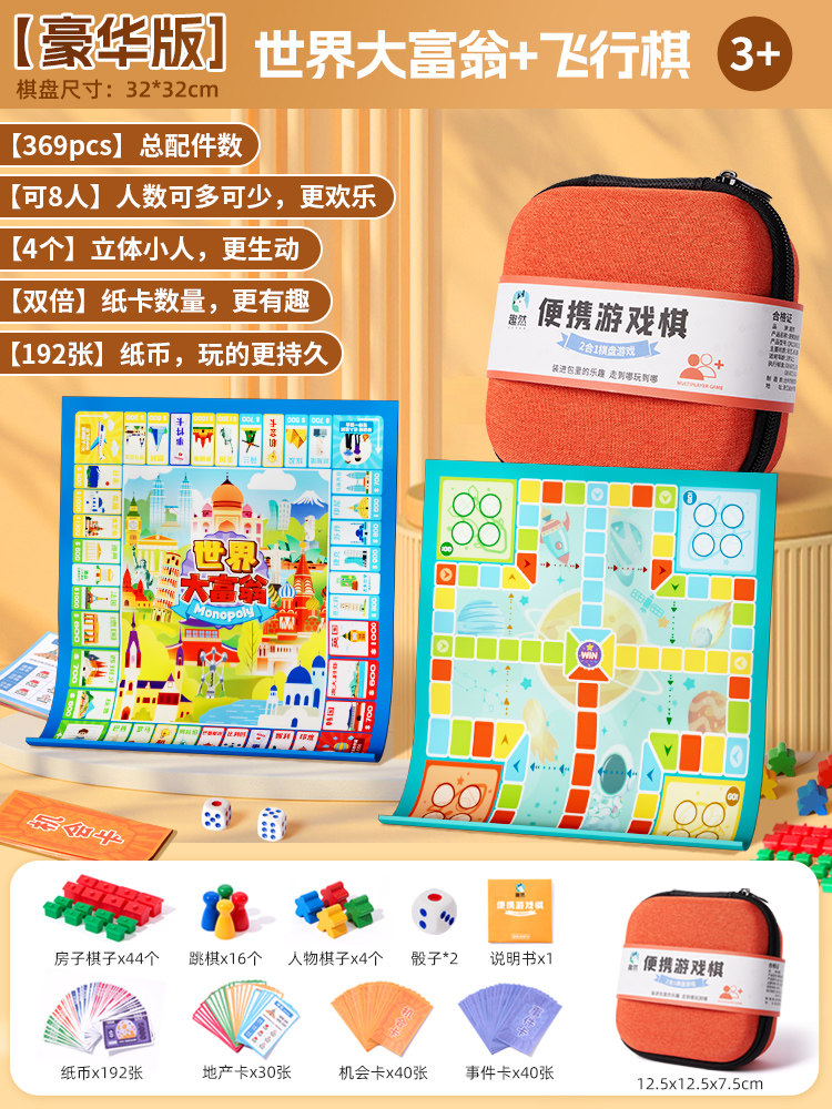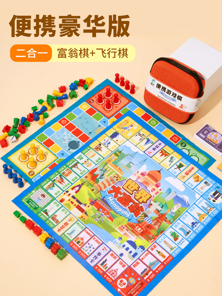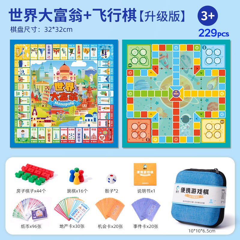 口袋便携【豪华版❤️收纳盒】世界版富翁棋+飞行棋