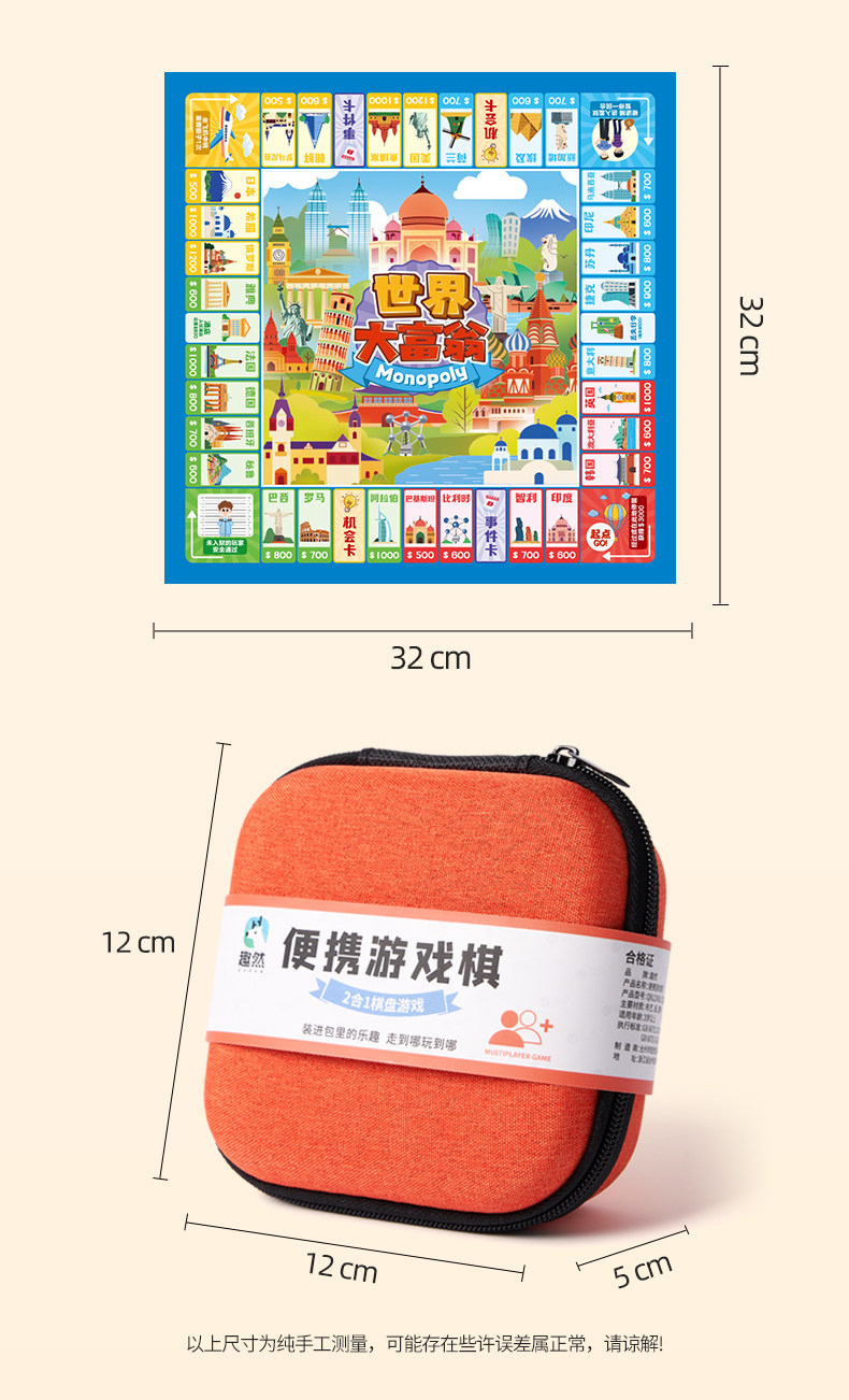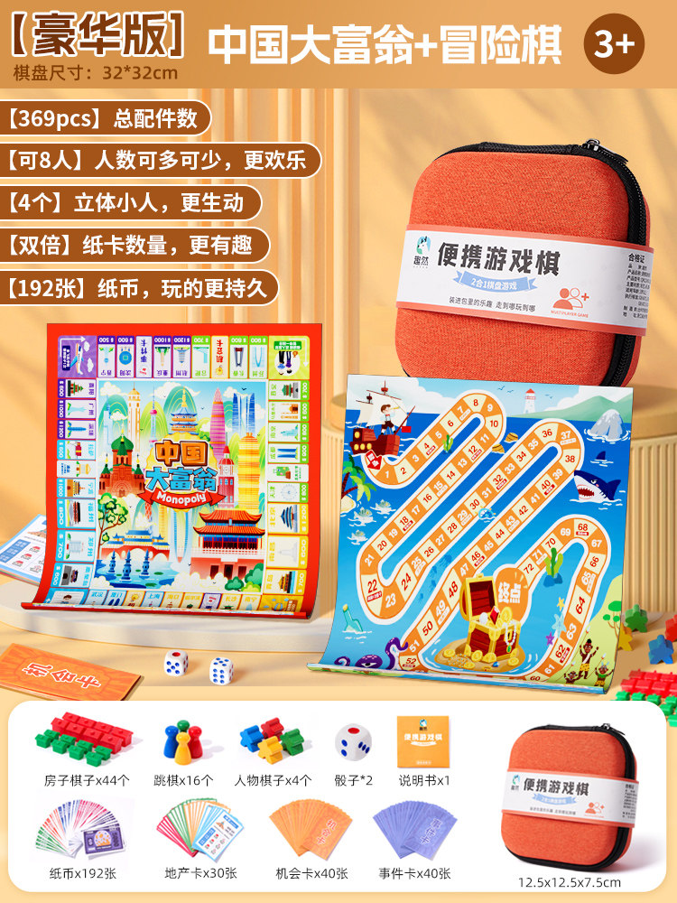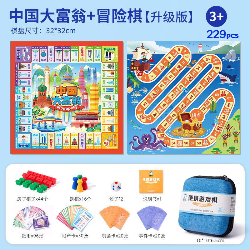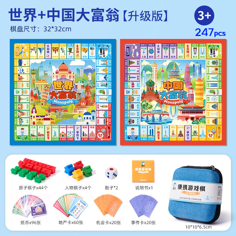 口袋便携【豪华版❤️收纳盒】世界版富翁棋+飞行棋