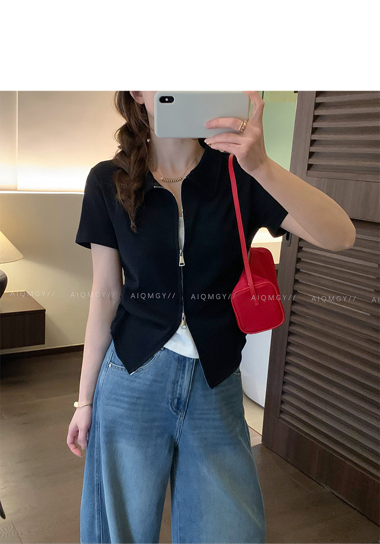 HomeProducts爱情魔鬼鱼 短袖翻领假两件T恤女2026夏季新款设计感时尚别致上衣