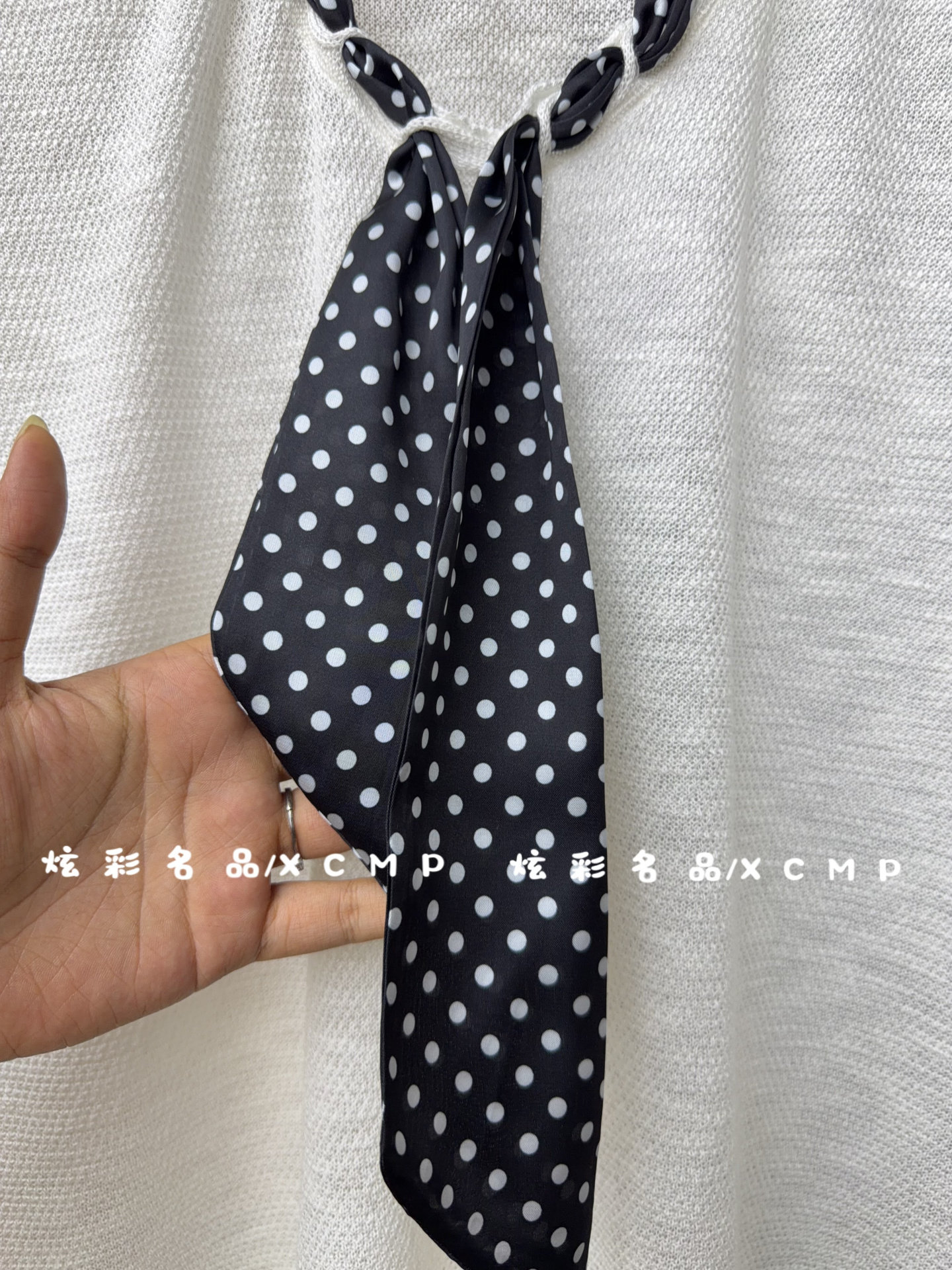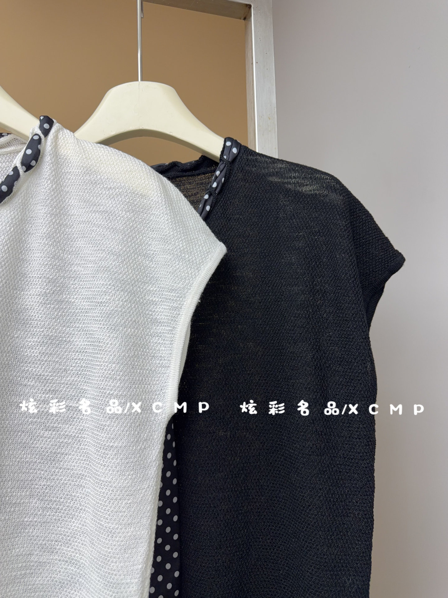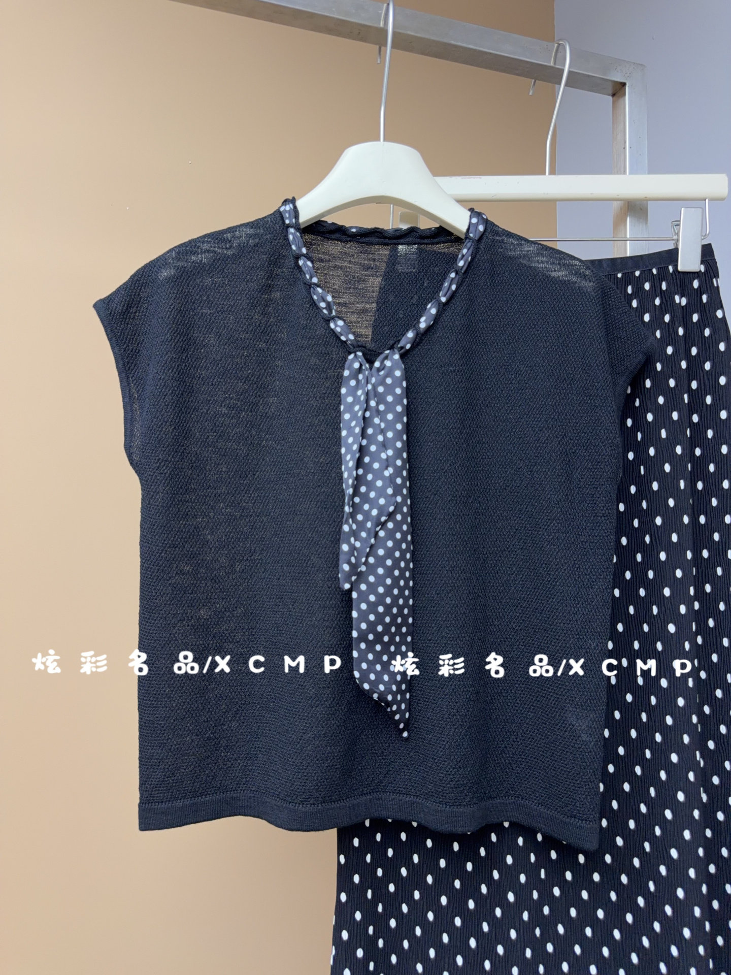 炫彩名品2026夏季新款时尚V领配波点飘带修身显瘦无袖上衣女7677