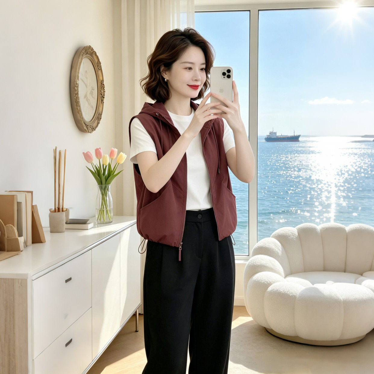 HomeProducts马甲女款2026新款夏季轻薄透气时尚洋气显瘦运动连帽马夹上衣服潮