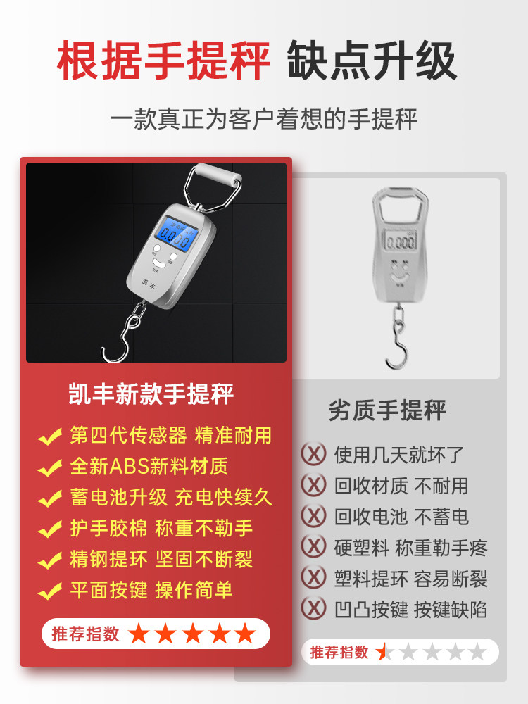 凯丰迷你手提电子秤50kg便携式高精度家用快递称小秤弹簧小型手拿