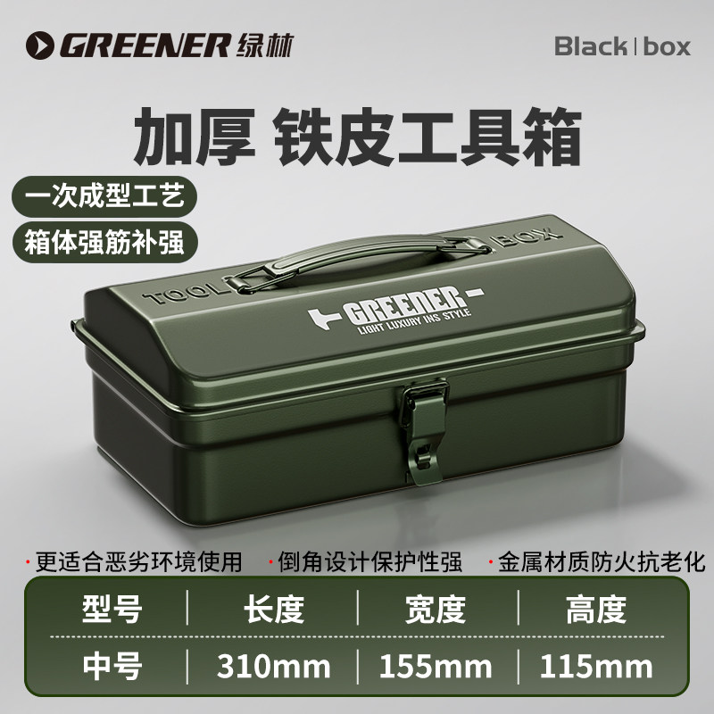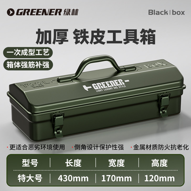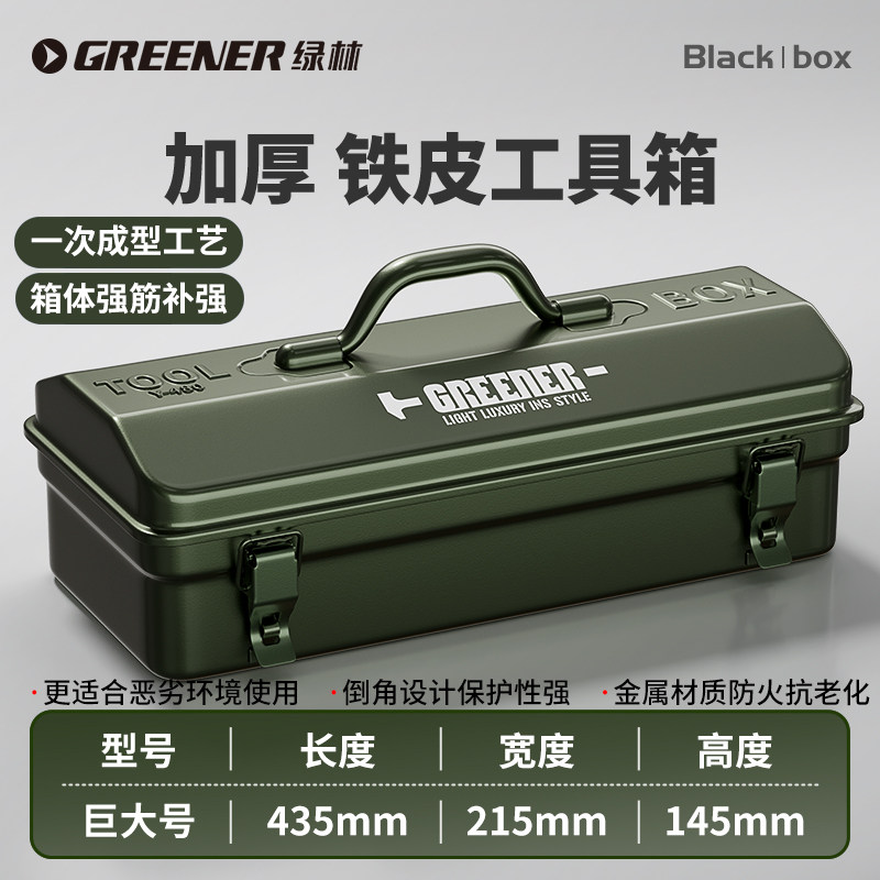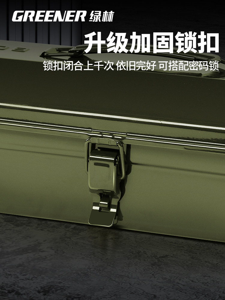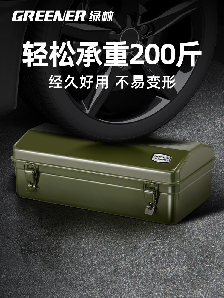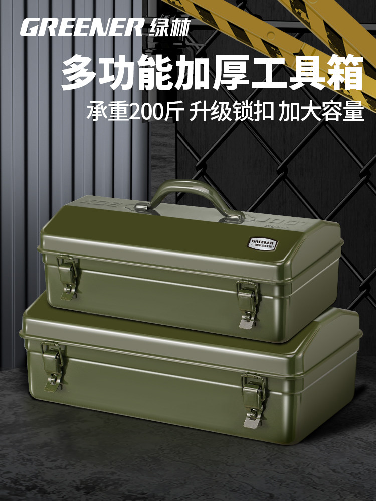 绿林家用多功能五金工具箱工业级收纳盒加厚金属汽修铁皮车载盒子