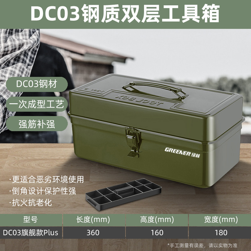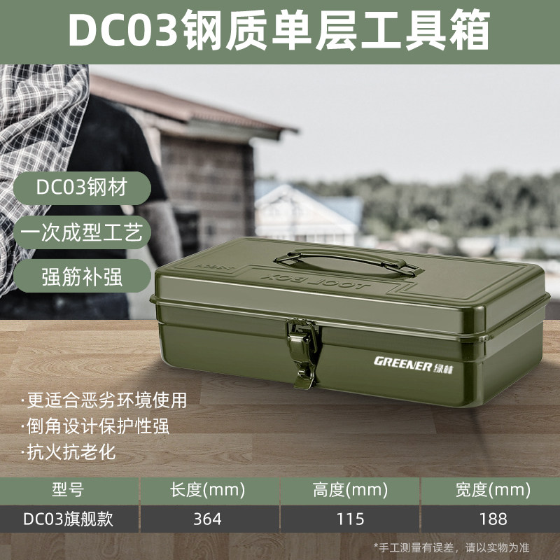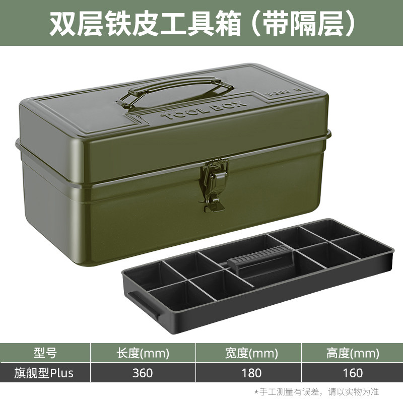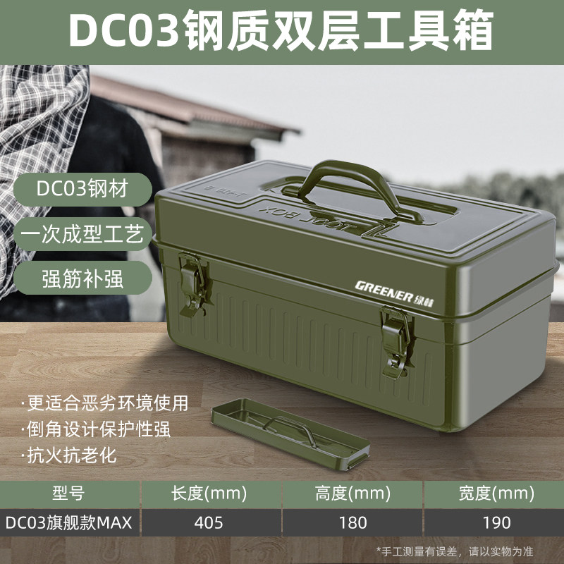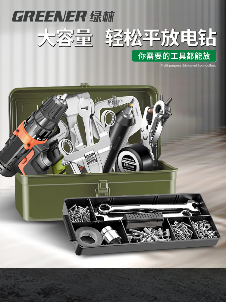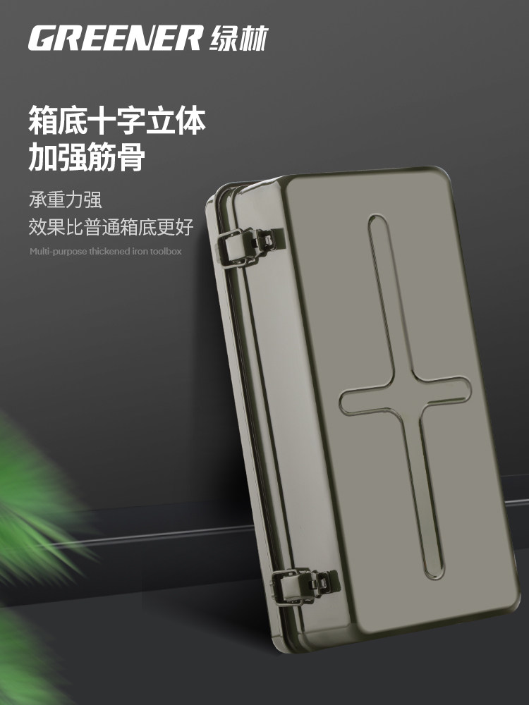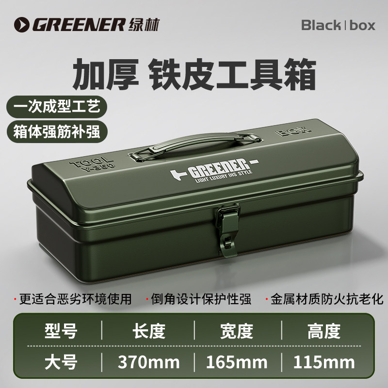 绿林家用多功能五金工具箱工业级收纳盒加厚金属汽修铁皮车载盒子