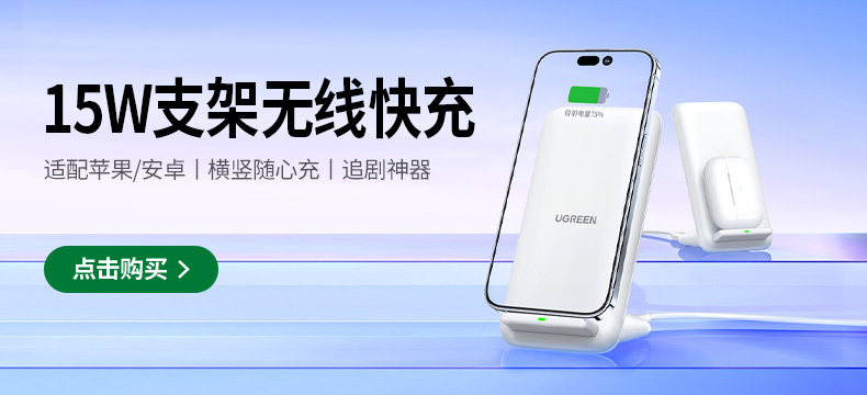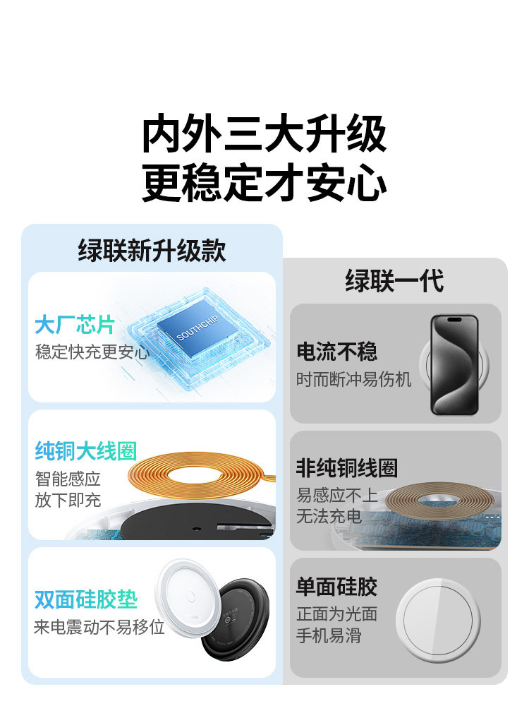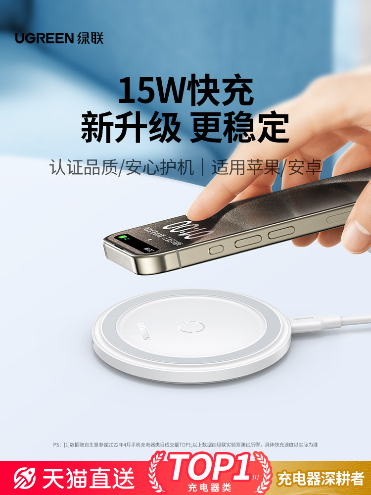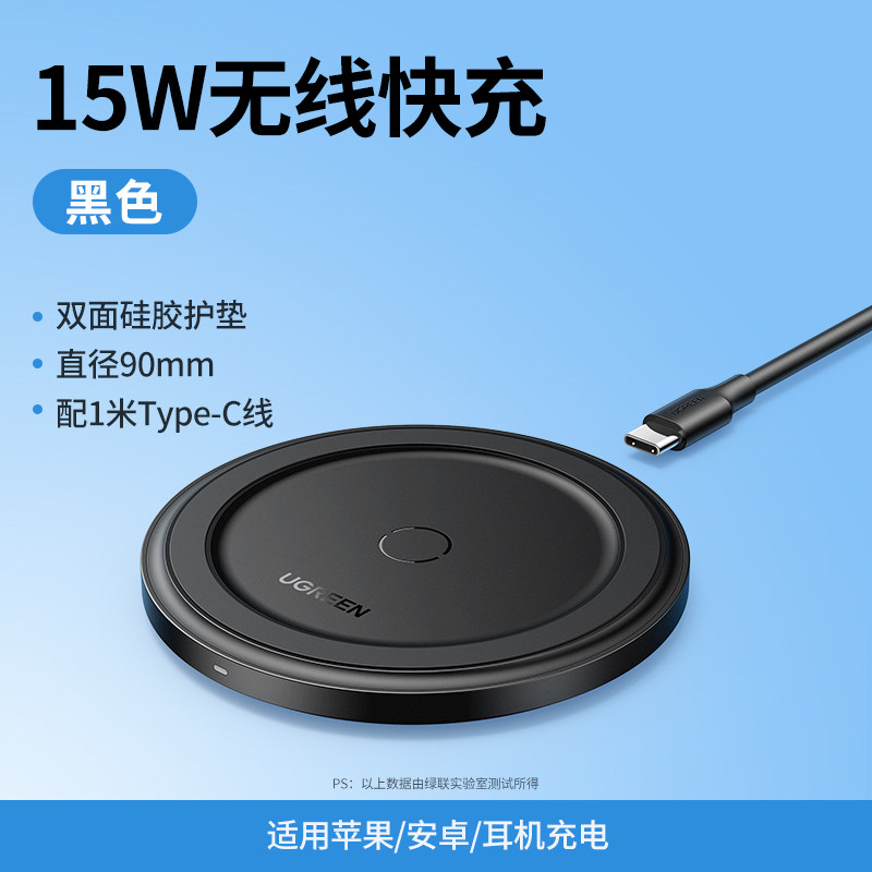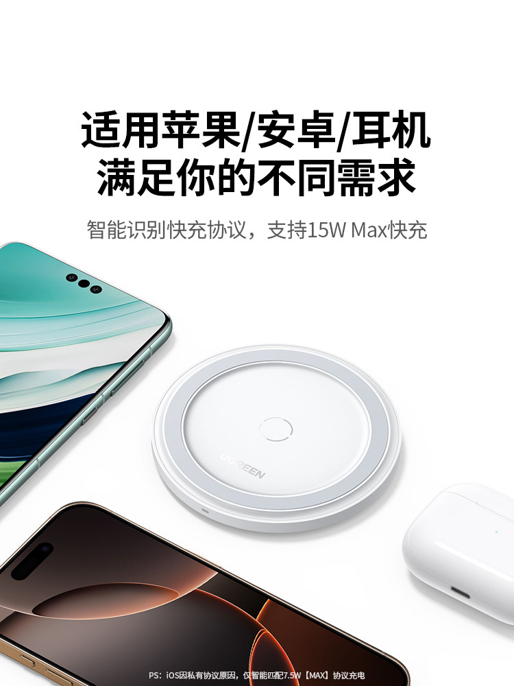 HomeProducts绿联无线充电器15W快充适用于苹果小米三星OPPO华为iPhone17/16/15pro手机14耳机智能感应便携桌面充电底座板